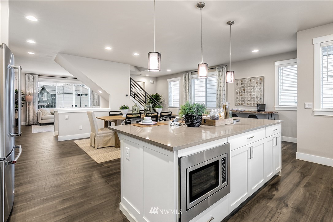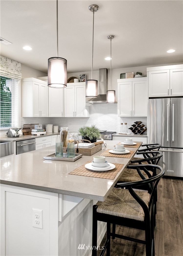 Springfield Court is now open! Detached townhome from RM Homes. Great room styling and exceptional finishes with a convenient bonus room on the entry level perfect for office or media/play room. Big covered patio on lower level. Chef's kitchen with slab quartz counter tops, farm style stainless sink, base pull outs and motion faucet. Center staircase creates flow and gives a contemporary edge to the beautiful kitchen dining area. Fully tiled gas fireplace. Hard surface flooring on lower and main floors with rich trim detail through out. Second covered deck off dining area. Luxurious primary bath. Corner lot with huge back yard! Fully landscaped. Easy access to l-5 & 405. Mukilteo School District with top rate schools. Jan. 2022 completion.