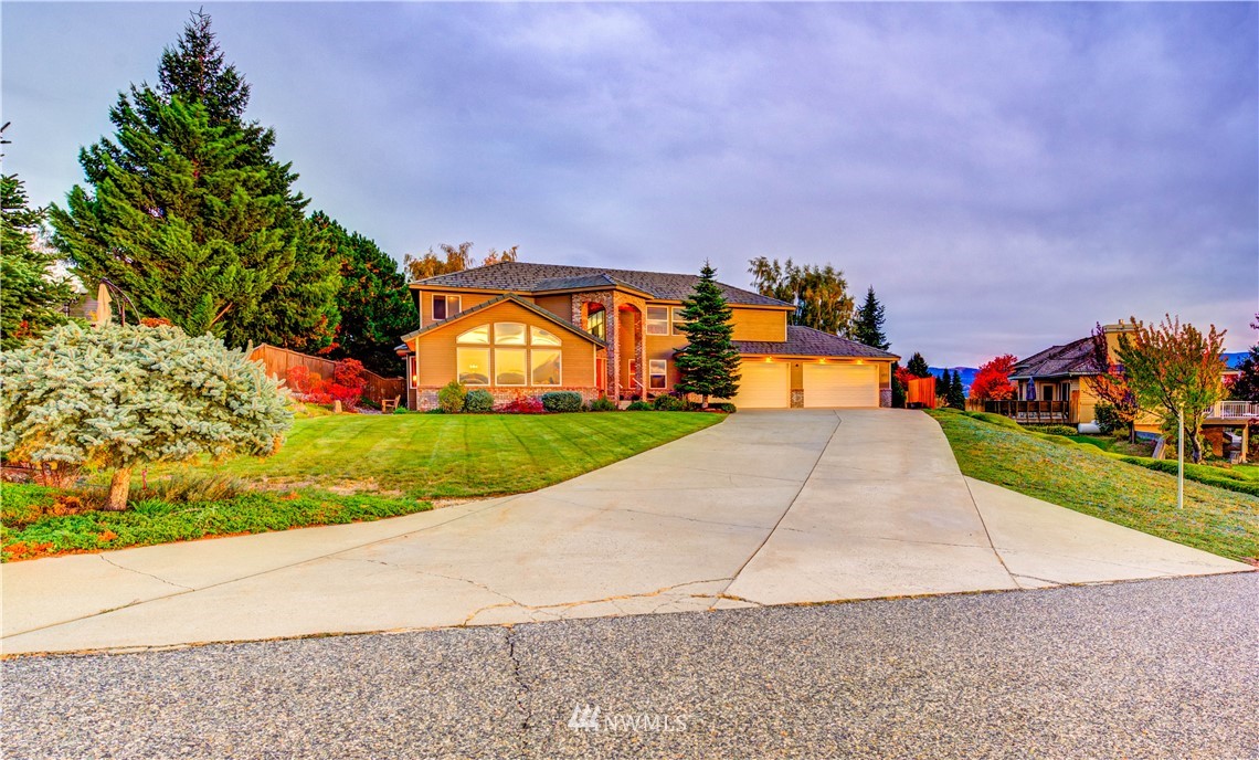 This beautiful home features stunning views from Mission Ridge to the Enchantments, especially from the master suite! Many updates including new exterior paint (2021), flooring in much of the house (2019), and HVAC (2018). Large open kitchen with lots of storage, granite countertops throughout along with custom woodwork. Plenty of space for everyone with 4 bedrooms and an office/den, plus a family room and a large living room. Enjoy entertaining in the formal dining room with beautiful coffered ceiling! Relax in the private oasis of the backyard and enjoy gathering under the large pergola covered patio or soaking in the hot tub. Large 4 car garage and long driveway. Too many features to list!!!