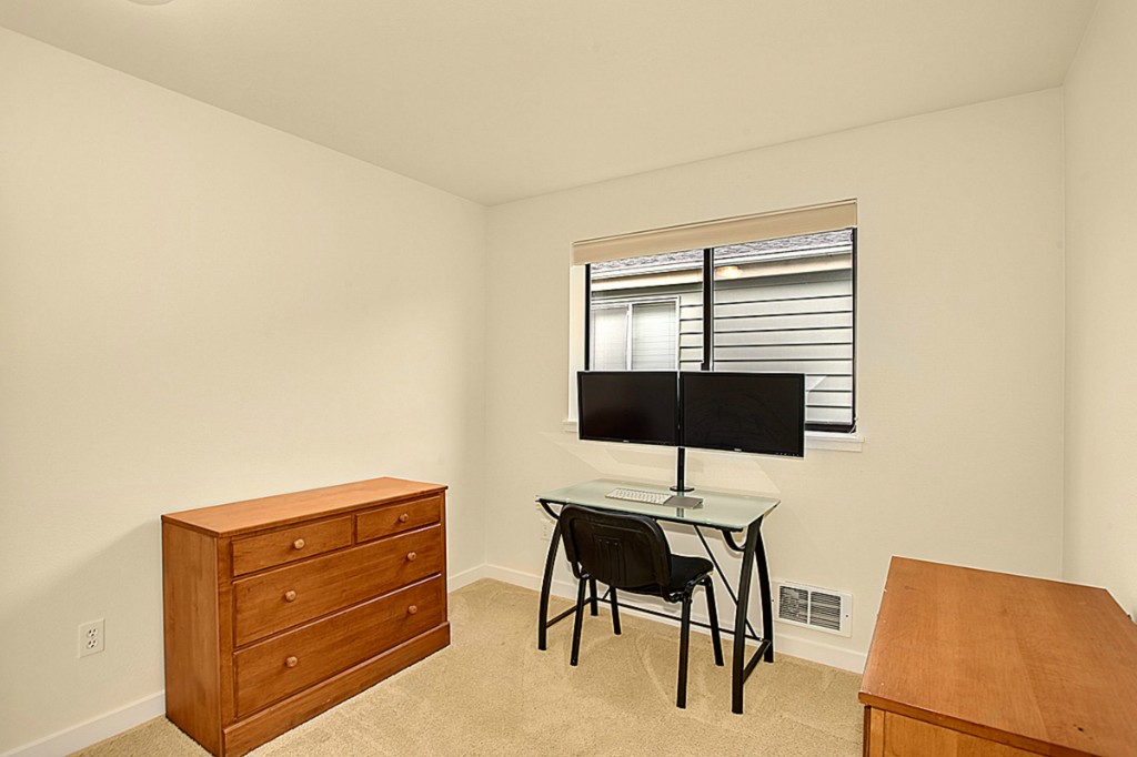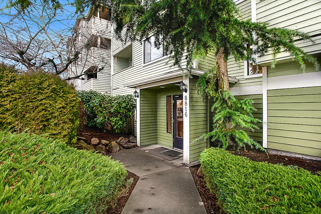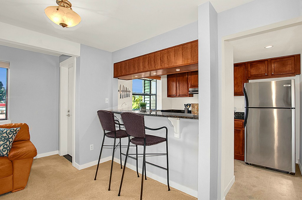 Light & bright top-floor unit faces west for beautiful sunsets. Kitchen features granite counters, stainless steel appliances, bay window, & breakfast bar. New cellular blinds, spacious closets, wood-burning fireplace, west-facing deck, and in-unit washer/dryer. Secure entry, assigned garage parking space + ample street parking. Less than a mile to Green Lake and a moment’s access to I-5. Zip to downtown Seattle on the Metro RapidRide E Line. Convenient condo living and close-to-it-all location!
