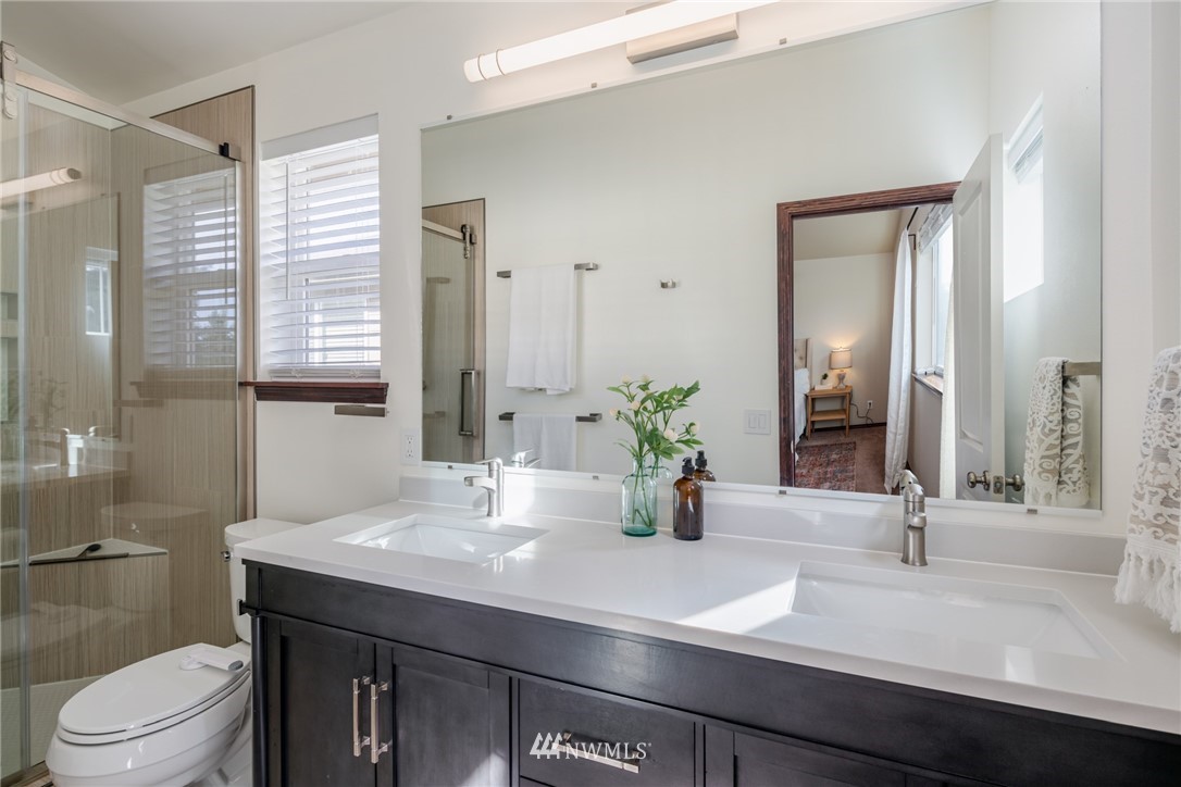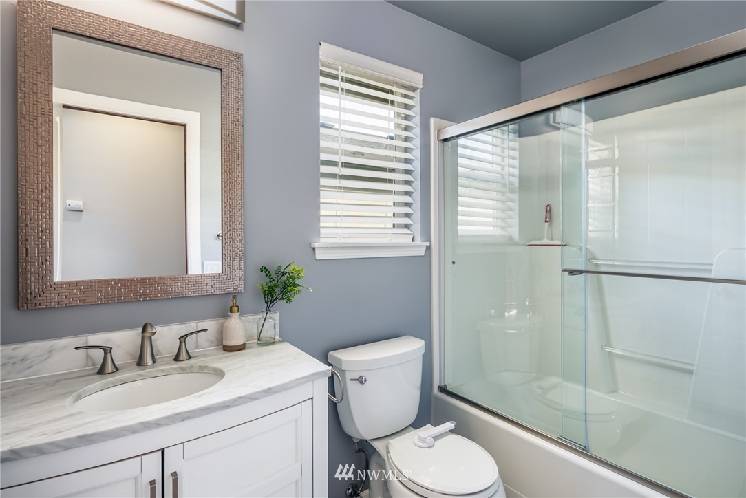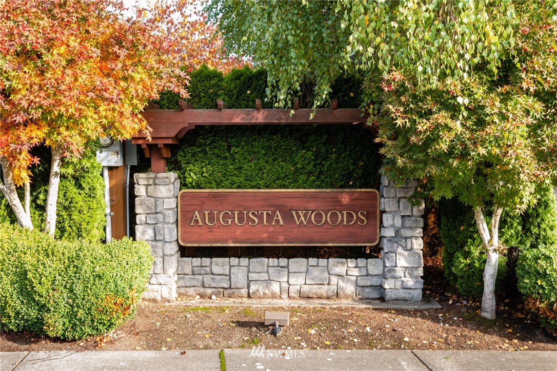 Fabulous Augusta Woods townhome boasting low HOA dues, easterly views of Walter Hall GC & three top notch bathroom renovations! Enjoy sunsets from large dining room w/ westerly outlook & 4-stool eating bar! Gorgeous master bath comes complete w/ dual vanity, walk-in-shower, custom tile accents & cool glass barn door w/ track & roller! All new soft gray interior paint compliments the well-designed, light-filled interior w/ ample work-from-home-station options (ie: oversized stair landing)! Natural Gas fireplace, furnace & water tank a huge perk! Fully-fenced, grassy back yard w/ entertaining deck too! Mini park located right outside your front door! Dreamy commuter location between Hwy 525,526,99 & I-5! Oversized two car tandem garage too!