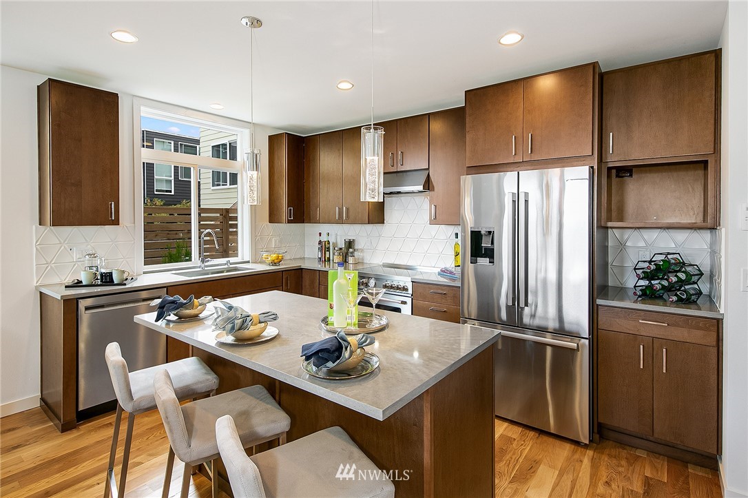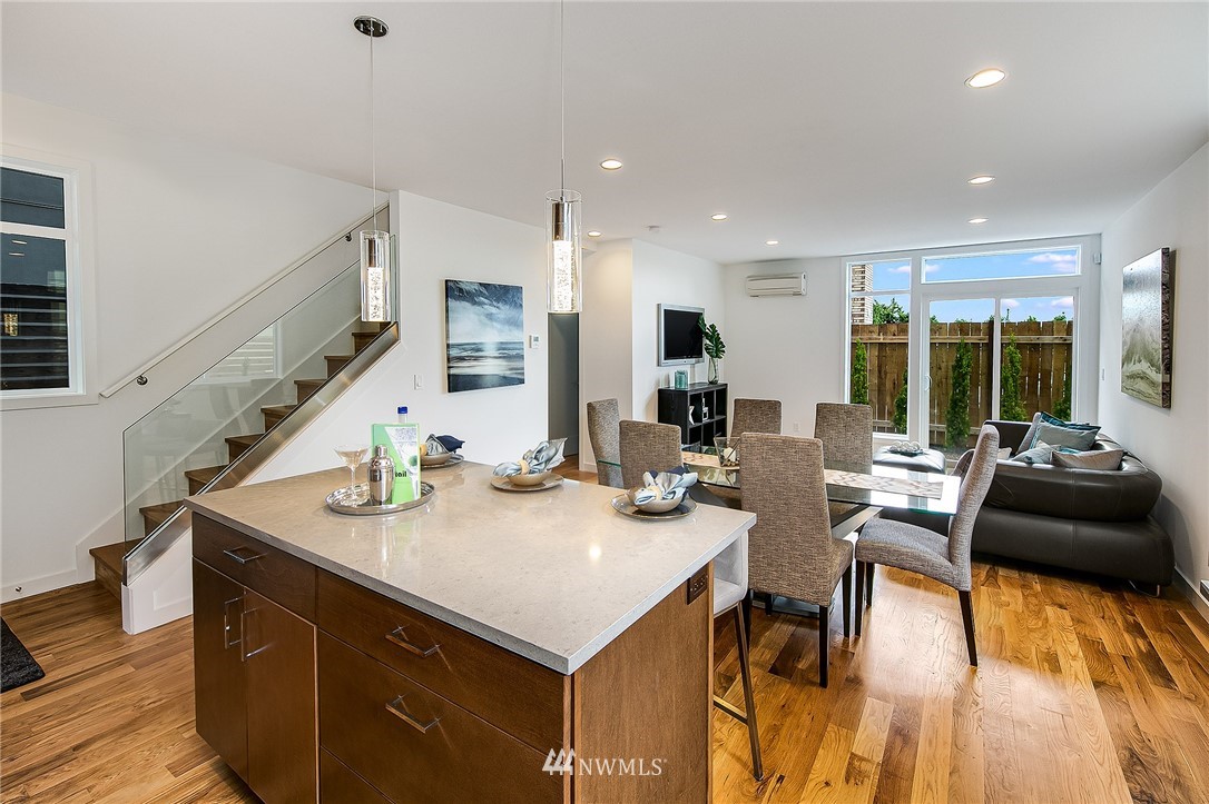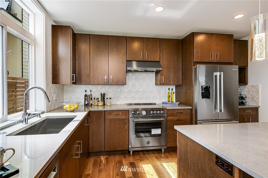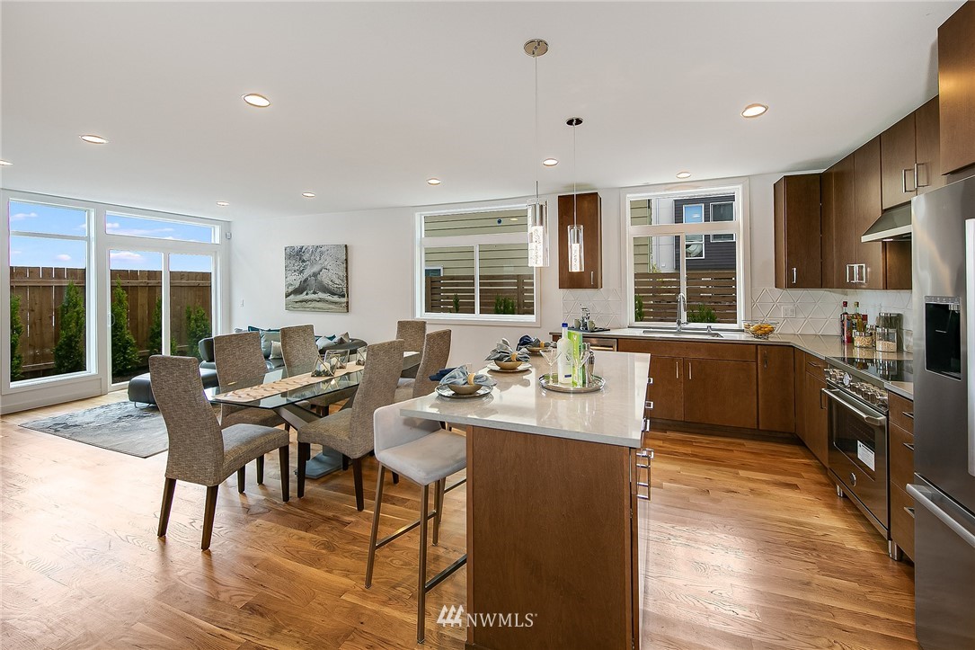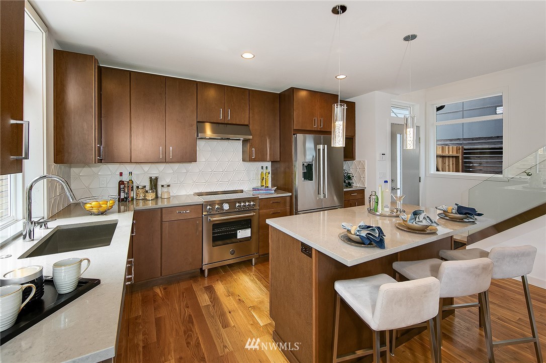 New Home in Fremont! Walk Score of 91 & 5 minute bike ride to Heart of Fremont & all it has to offer! Spacious Modern design with 1818 Sq.Ft. of living space plus dedicated off-street parking. Entry level features an expansive Great Room, real 3/4" oak hardwoods & very nice functional kitchen with island/bar, powder room & sliders to back patio. Up 1 story, find 2 bedrooms with full bath & laundry closet. Entire 3rd level is a gorgeous Owner's Suite & spa-like bath, plus large WIC. Up top to fun in the sun on rooftop deck with sweeping city, mountains & territorial views. 1/2 block to direct Metro to Downtown. 2 blocks to Marketime Foods & numerous restaurants: Le Coin, Paseo, Pecado Bueno, Rock Creek & Fremont Bowl. Built with Pride!