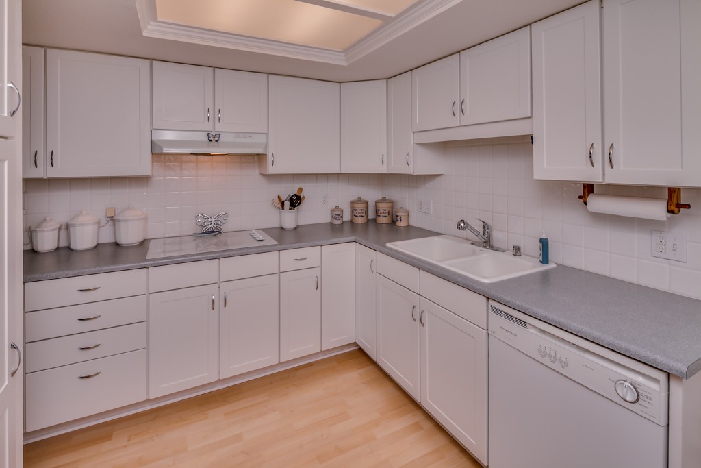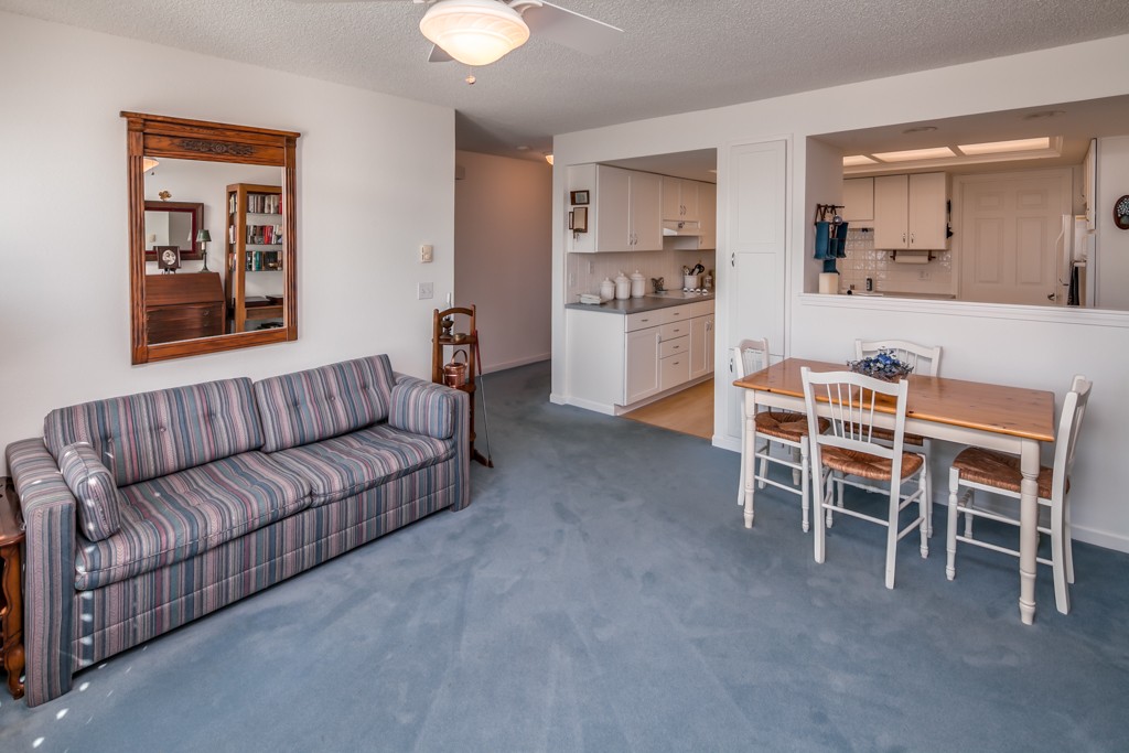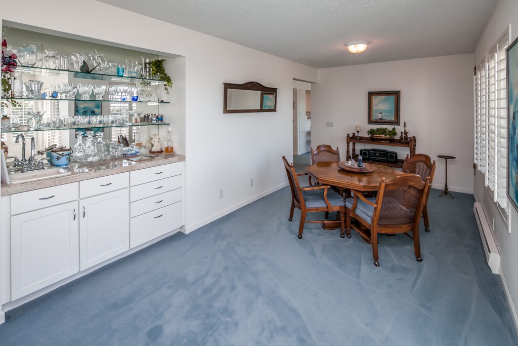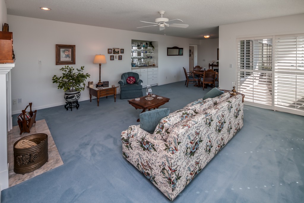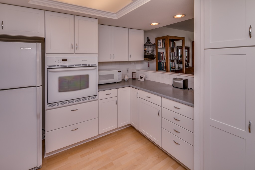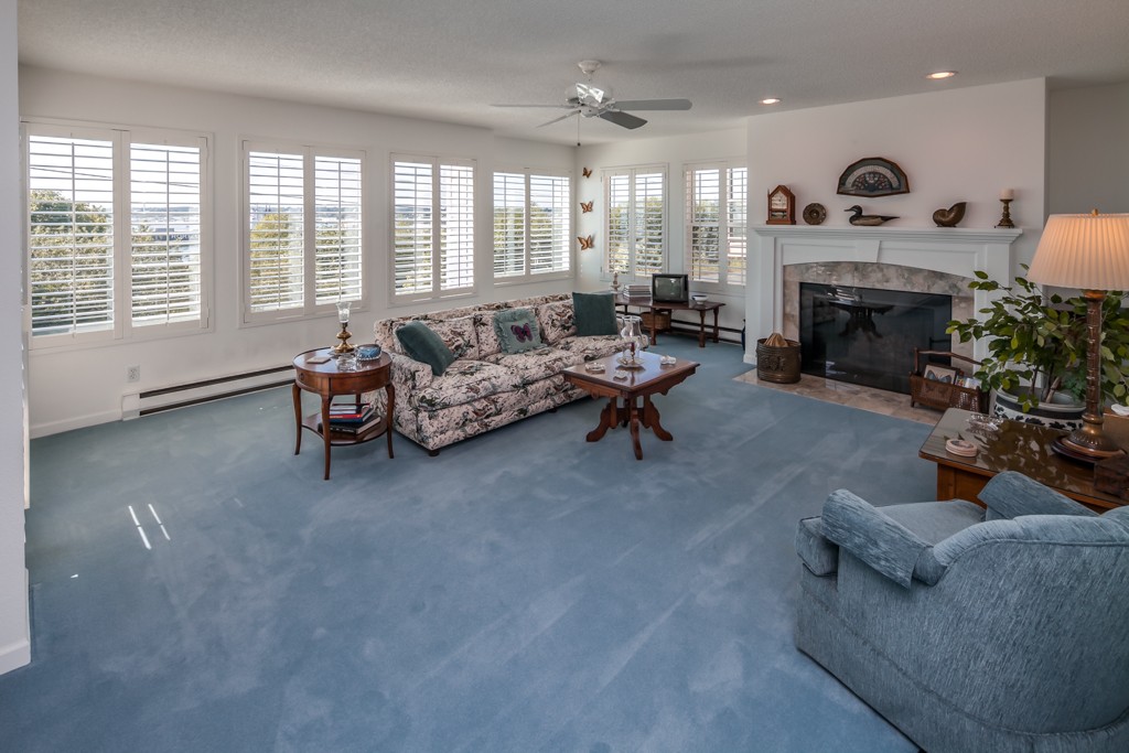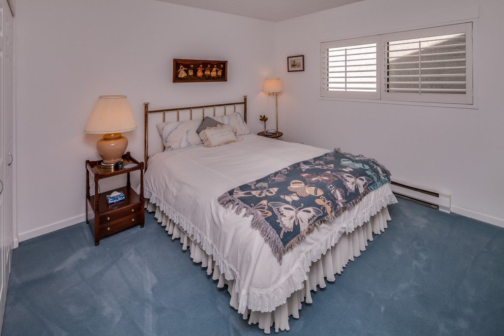 Ground floor, end unit was remodeled with the finest taste just 10 yrs ago and is move-in ready! Wedgewood plush carpet, white tile kitchen w/walk in pantry, maple laminate flooring, white plantation wooden shutters on all the windows looking out to B'ham Bay and the harbor. Lrg living room with marble wrapped fireplace and a wet bar dividing the formal dining area from living. Spacious master, abundant storage,common parking garage w/the elevator just off the entry! No stairs and easy access!