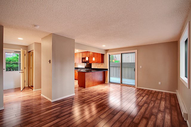 Urban retreat…serene…peaceful…in booming Bellevue. Walk to Downtown Park; walk to Microsoft, Expedia, Eddie Bauer, Paccar, Bellevue Square and Lincoln Center. Privacy from every window…not looking into other units. Move in ready with designer remodeling of Kitchen, new sink and cabinets in both bathrooms, new window trim throughout, wood floor and carpet. 2-car secured-private garage & LOW Homeowner Dues. Deck off Living room. Newly painted complex exterior & recent roof.