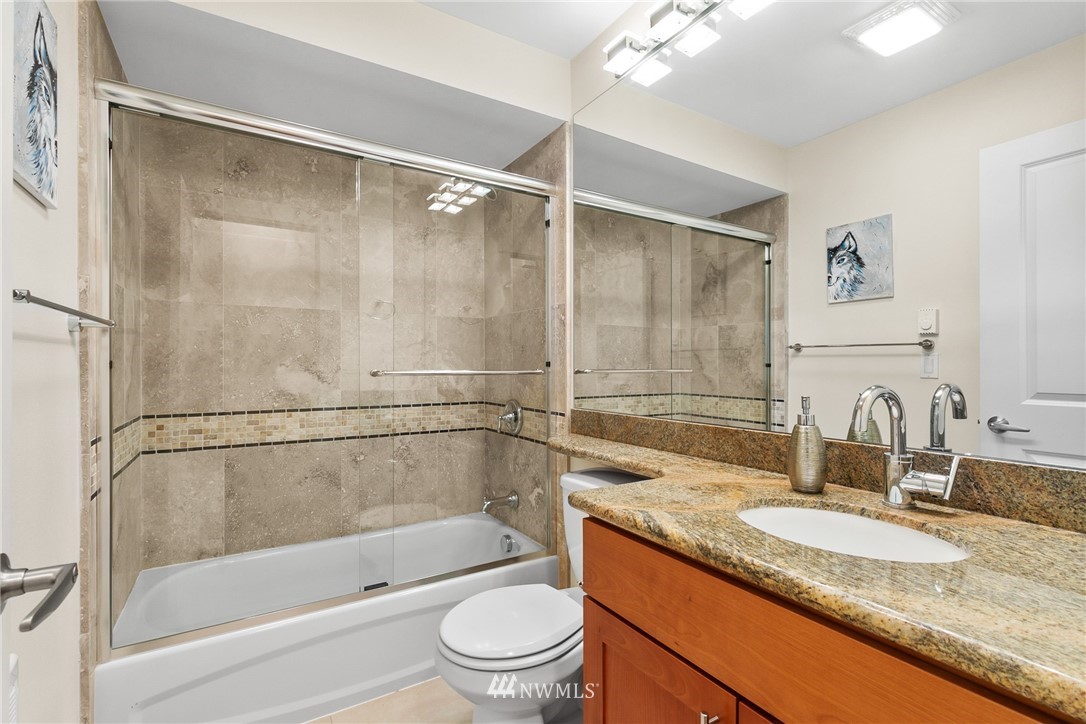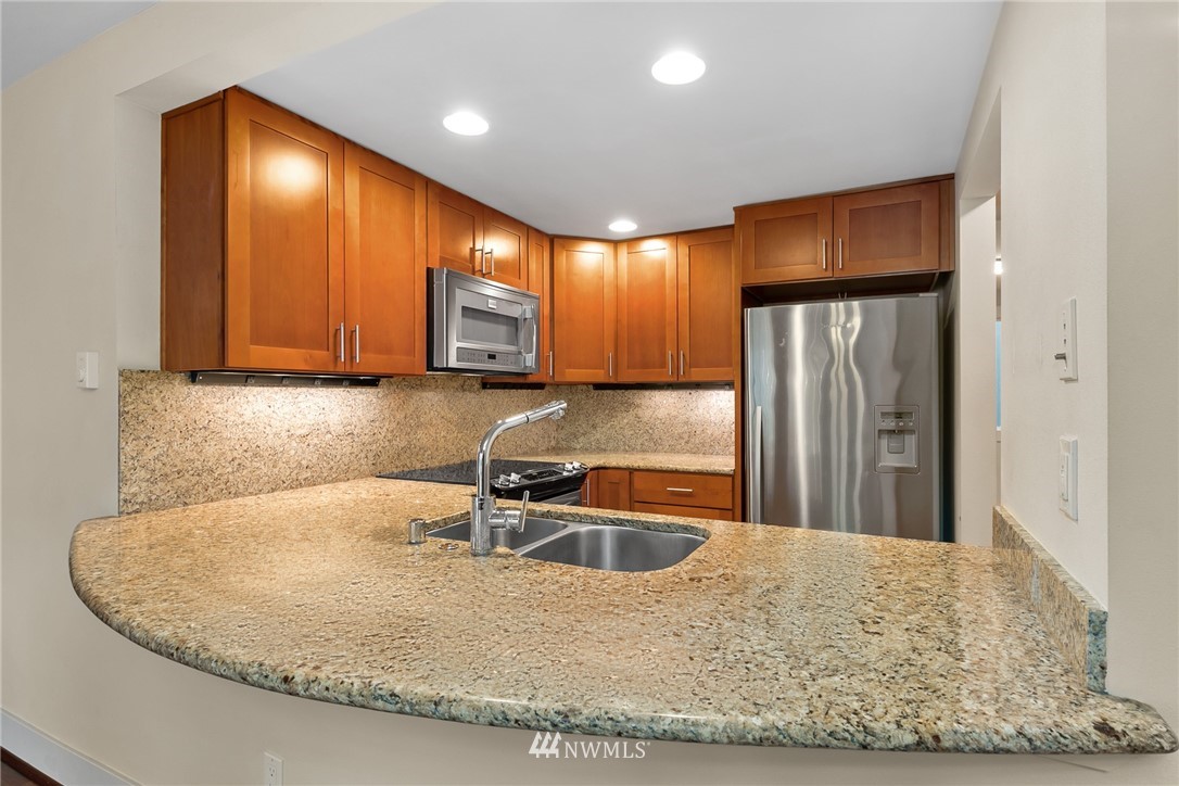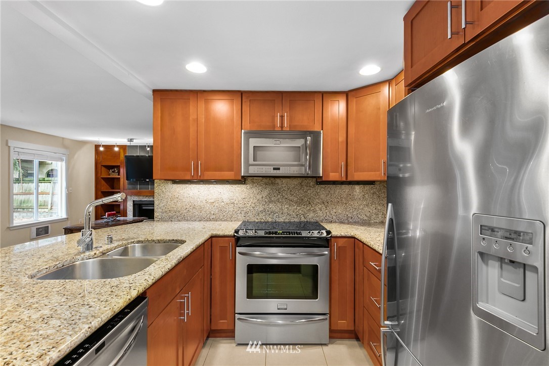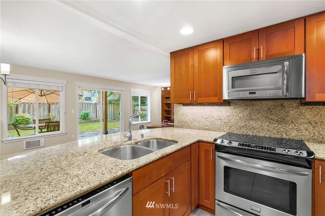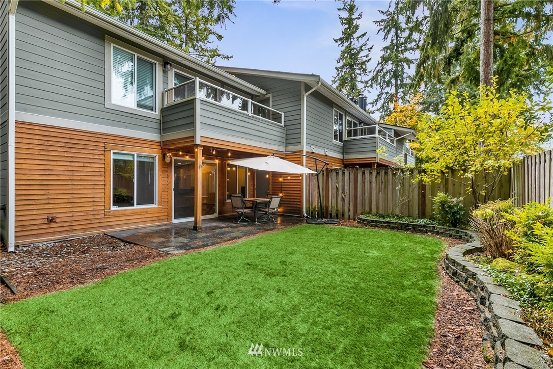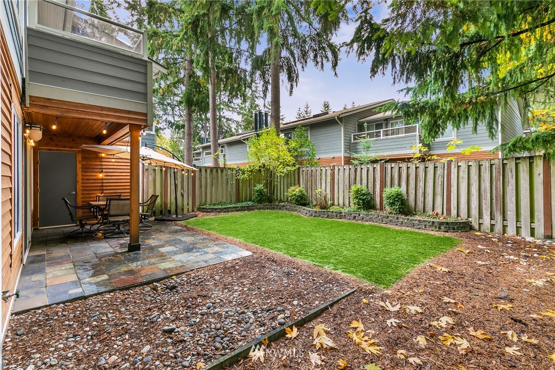 This is a must see complex! Super-quality, 2008 New Condo conversion with private garage in the heart of East Bellevue. This ground floor 2-bed 1.75-bath home with stunning features like hardwood floors, slate fireplace with custom bookcases, gourmet kitchen with slab granite counters and stainless appliances. All situated on one floor with no steps. Private fenced backyard with covered patio, easy maintenance artificial grass area, large trees and so much more. Hurry this home is a must see.