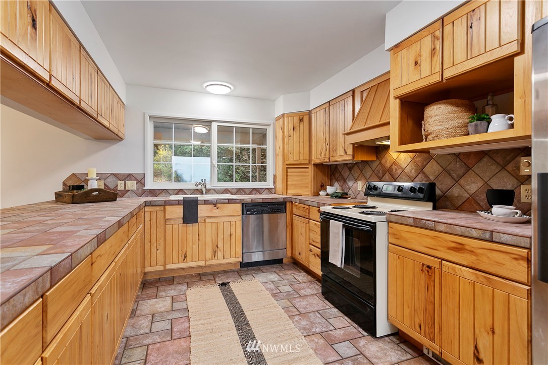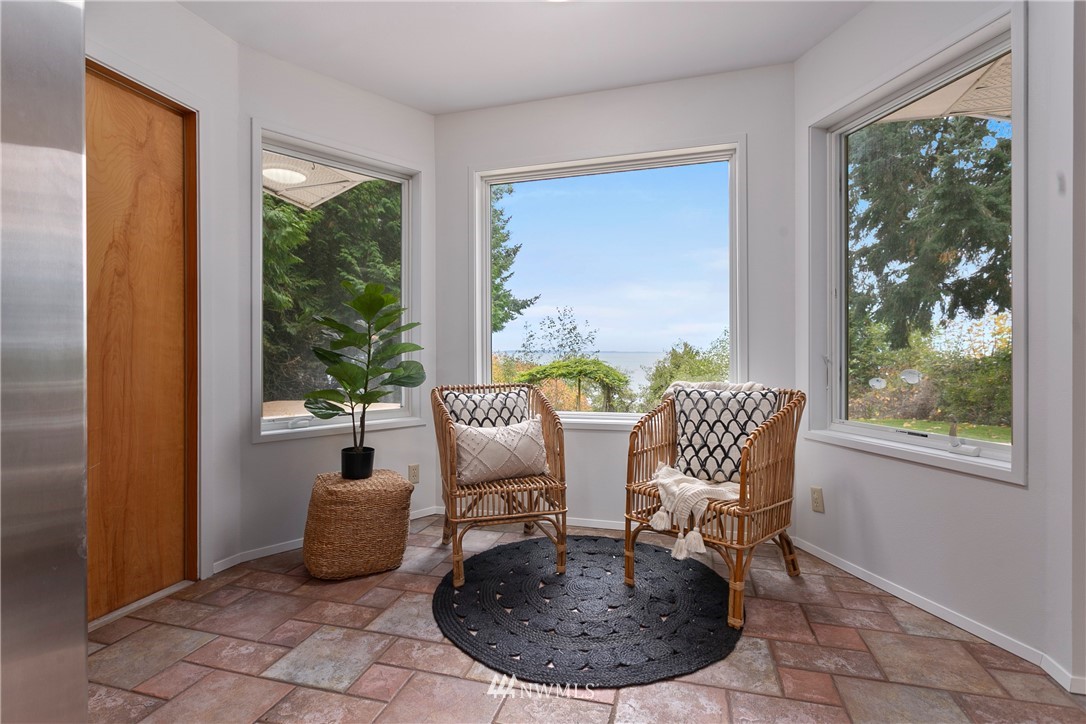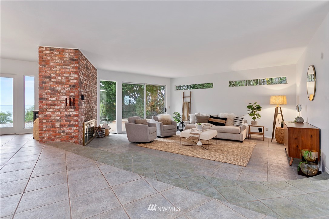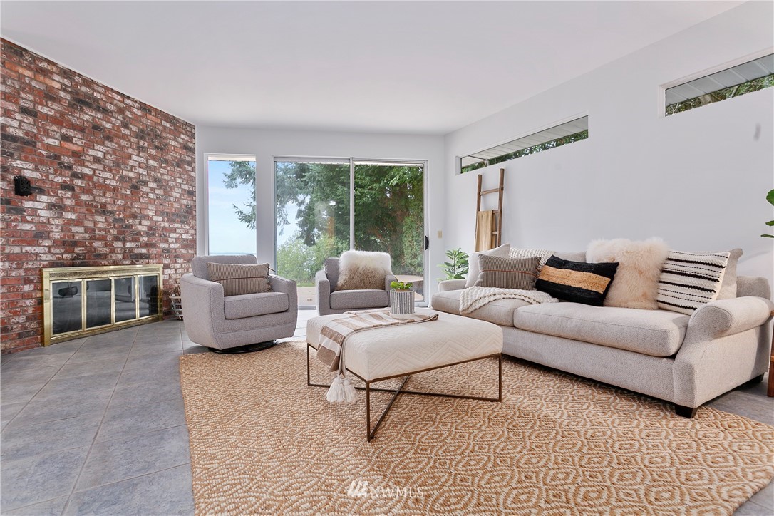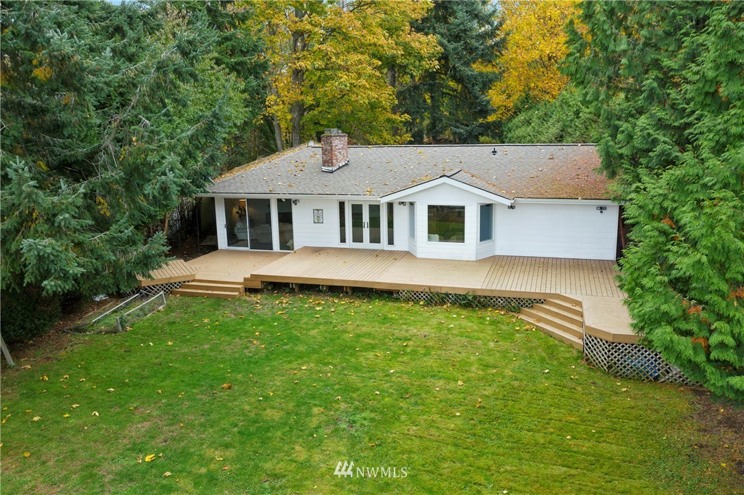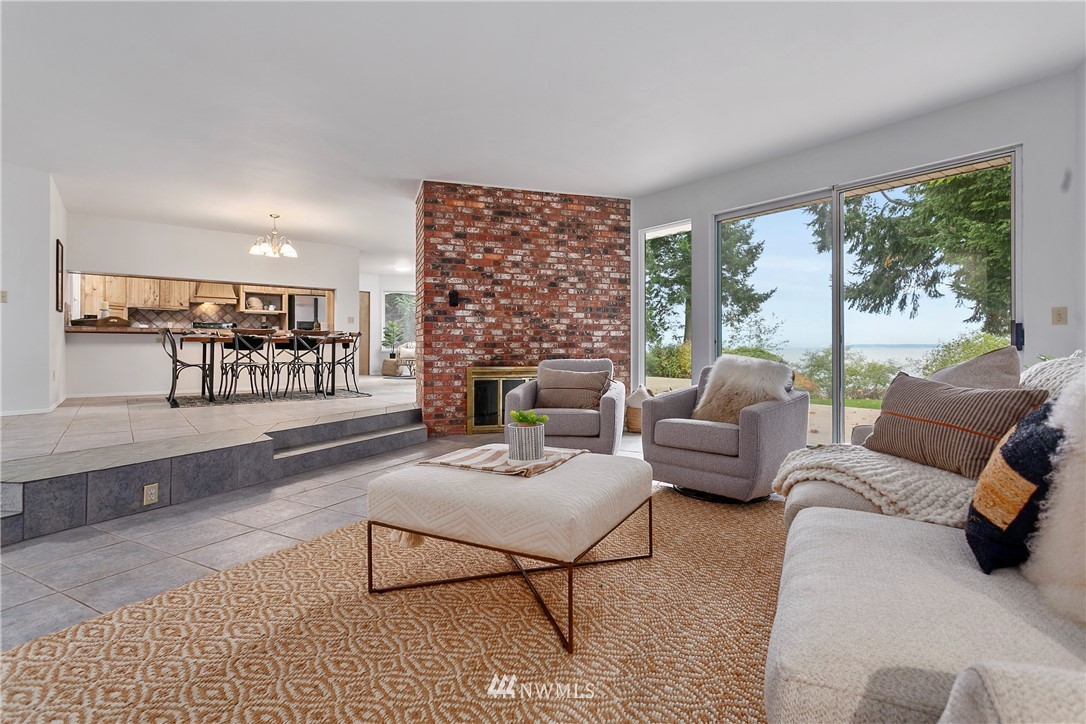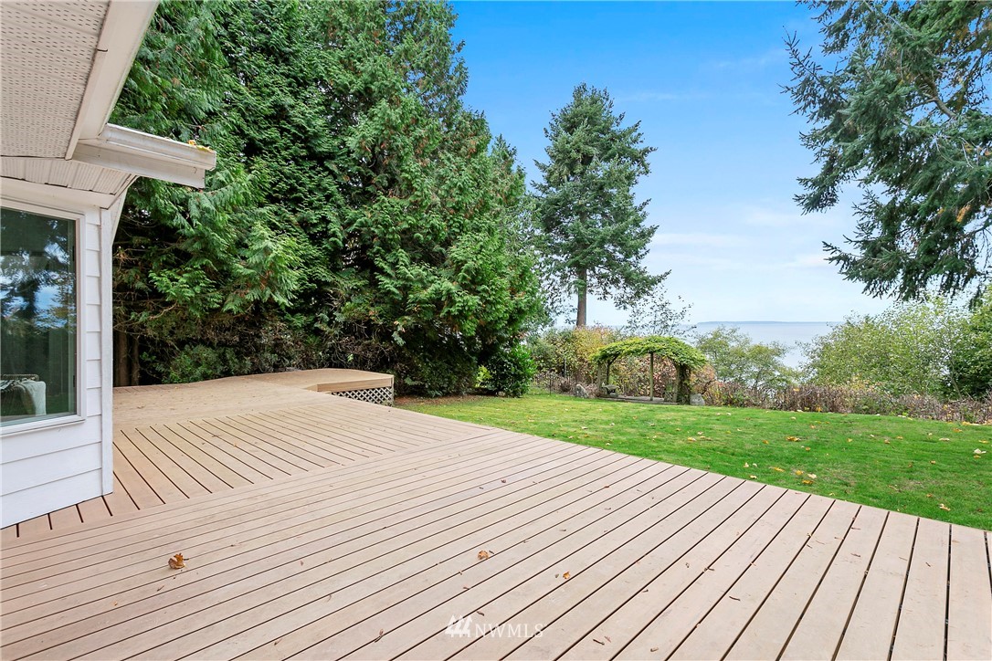 Beautiful coastal home with gorgeous high-bank water views and spectacular sunsets. Enjoy single level living with an open floor plan and French doors that open to expansive deck running the full length of the house & into private back yard. Cozy up to the wood burning fireplace while watching the birds & wildlife, or gaze upon the ships passing through the Georgia Straits. Open floor plan provides serene water views while cooking, dining or relaxing indoors, while the gazebo, garden shed, covered brick front porch, and wooden swing offer plenty of outdoor enjoyment year round. Tranquil oceanfront living in the PNW on affordable state-leased land.