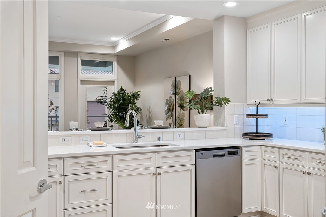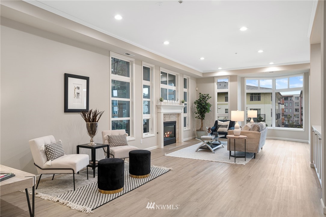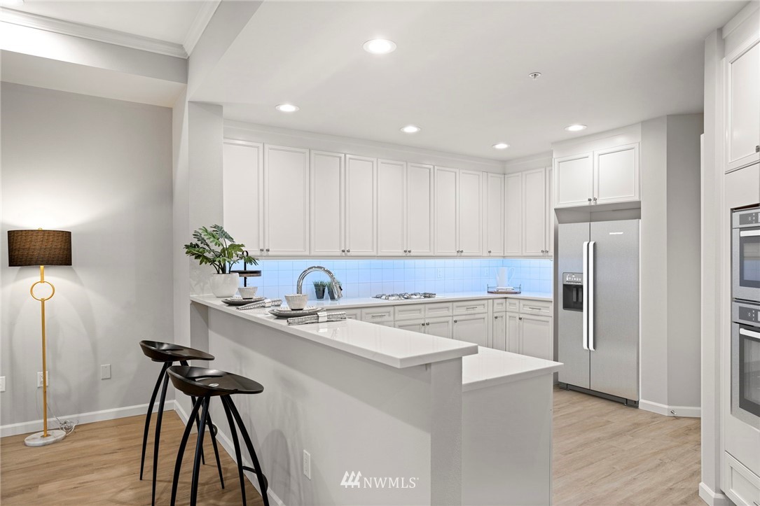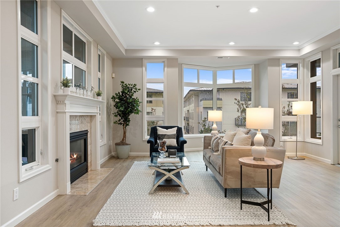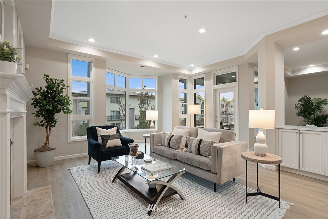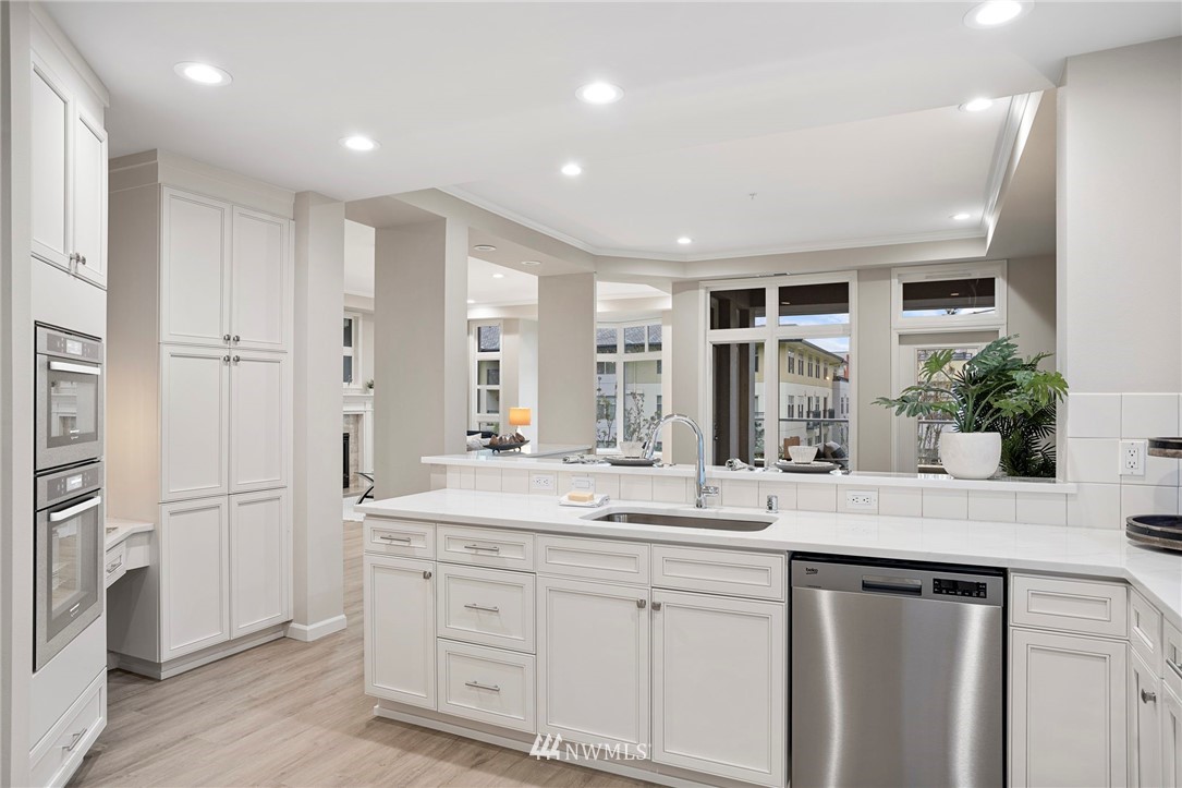 This is the stylish southern exposure condo that you have been waiting for! Located ideally next to the new Kirkland Urban restaurants and shops just a short stroll to the waterfront, beaches and park. Stunning brand new remodel of this spacious condo with designer touches throughout. Brand new SS appliances are on their way to complete this gorgeous kitchen. Sunny and bright with seamless open floorplan. Over-sized living room, cozy fireplace with vaulted ceilings flows graciously onto covered deck with brand new pavers. Office is separate from main living area providing privacy for work or home study. Exceptional main bedroom suite with walk-in closet. Secure garage with 2 parking spaces & storage. Relax & enjoy this phenomenal condo!