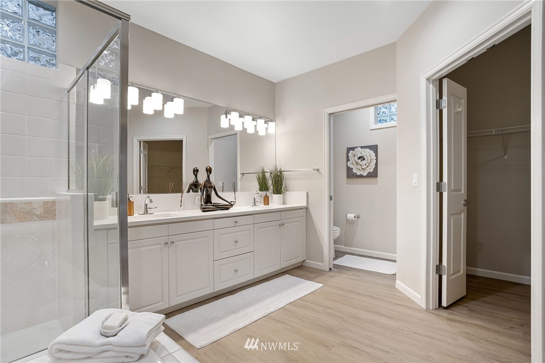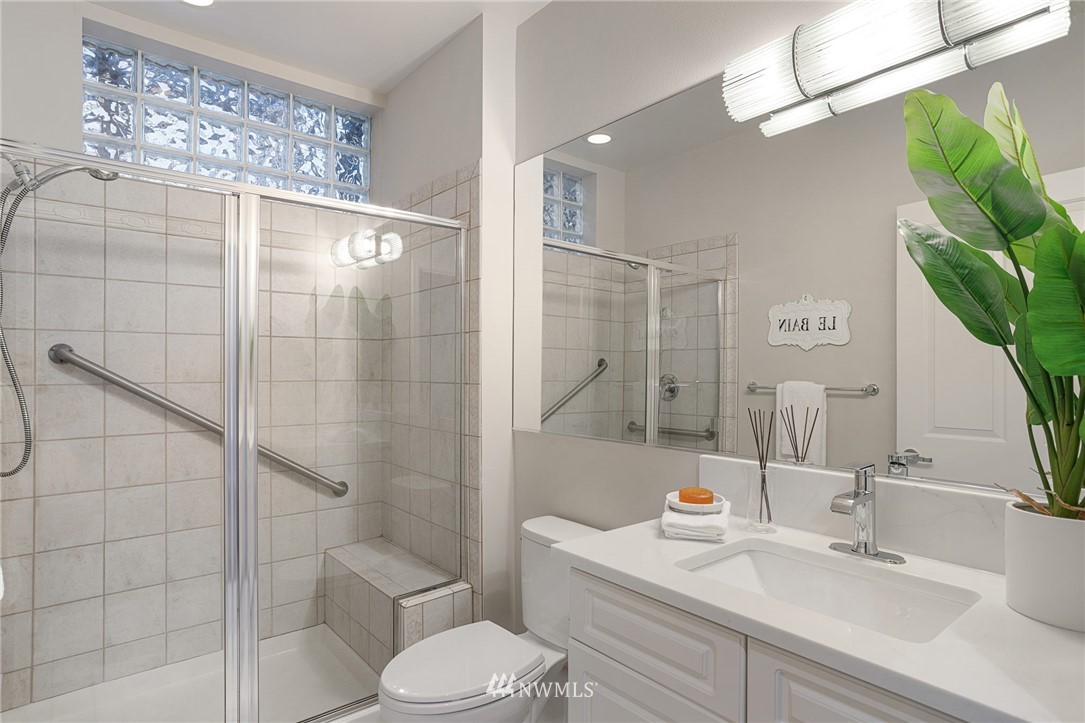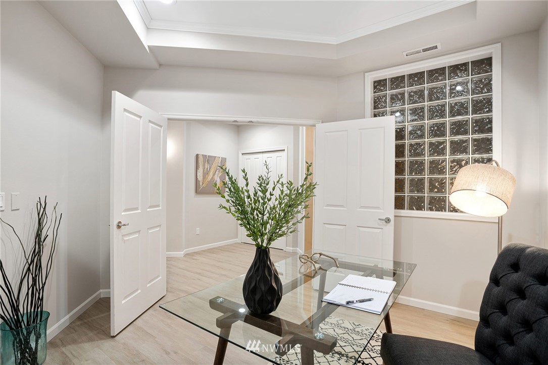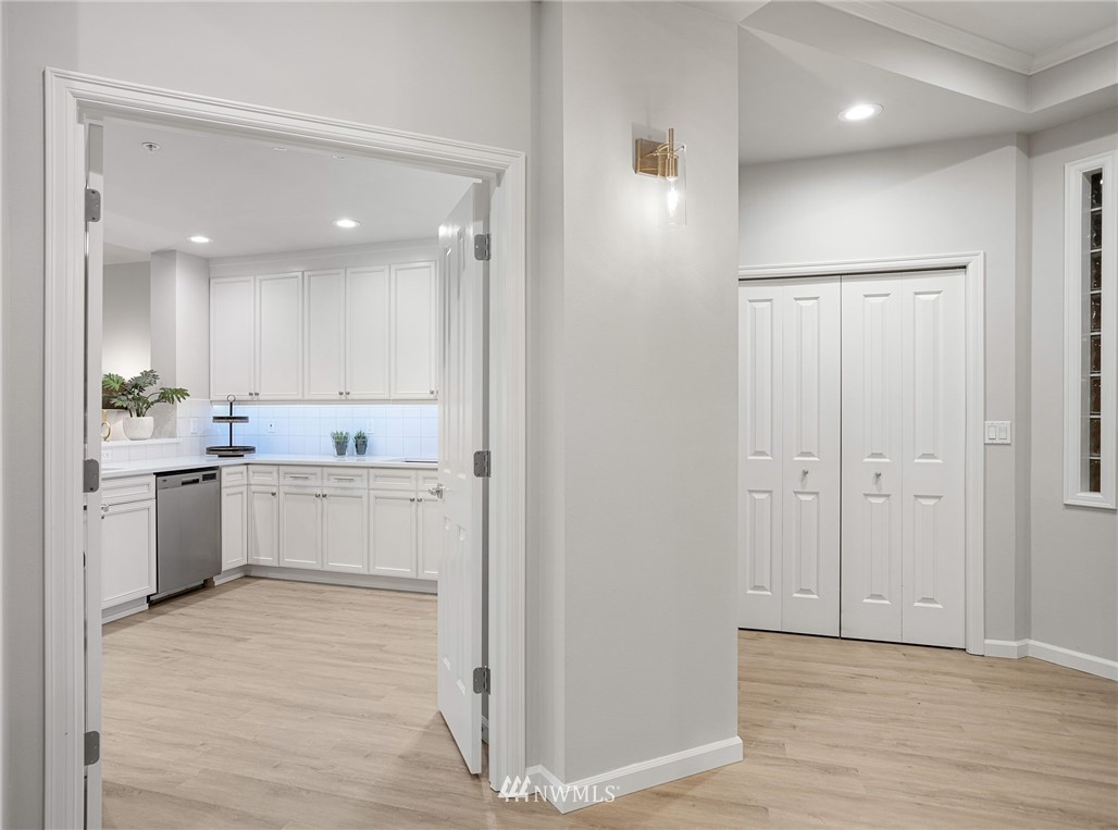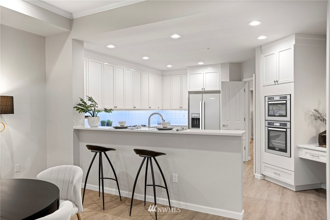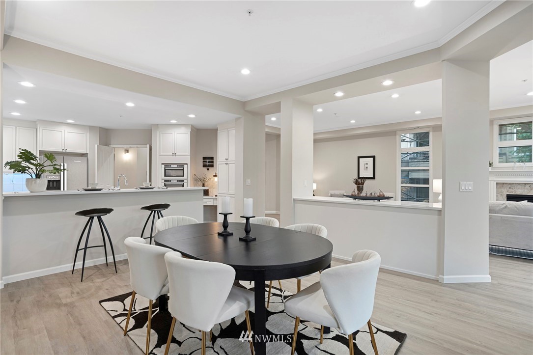 This is the stylish southern exposure condo that you have been waiting for! Located ideally next to the new Kirkland Urban restaurants and shops just a short stroll to the waterfront, beaches and park. Stunning brand new remodel of this spacious condo with designer touches throughout. Brand new SS appliances are on their way to complete this gorgeous kitchen. Sunny and bright with seamless open floorplan. Over-sized living room, cozy fireplace with vaulted ceilings flows graciously onto covered deck with brand new pavers. Office is separate from main living area providing privacy for work or home study. Exceptional main bedroom suite with walk-in closet. Secure garage with 2 parking spaces & storage. Relax & enjoy this phenomenal condo!