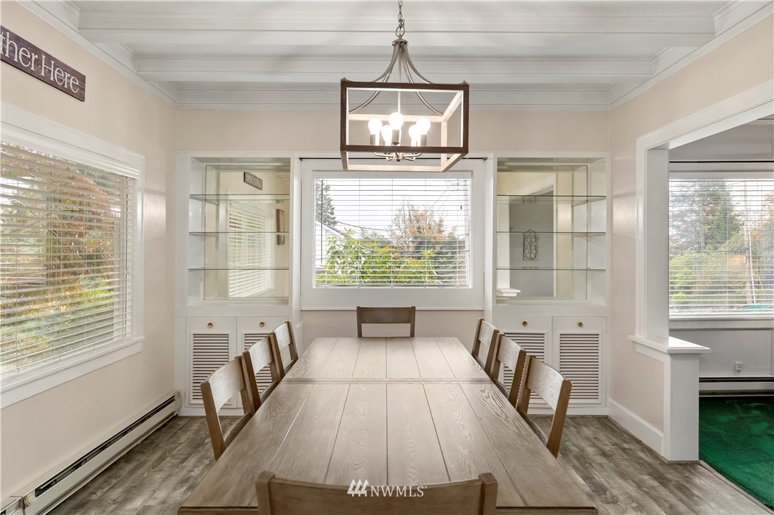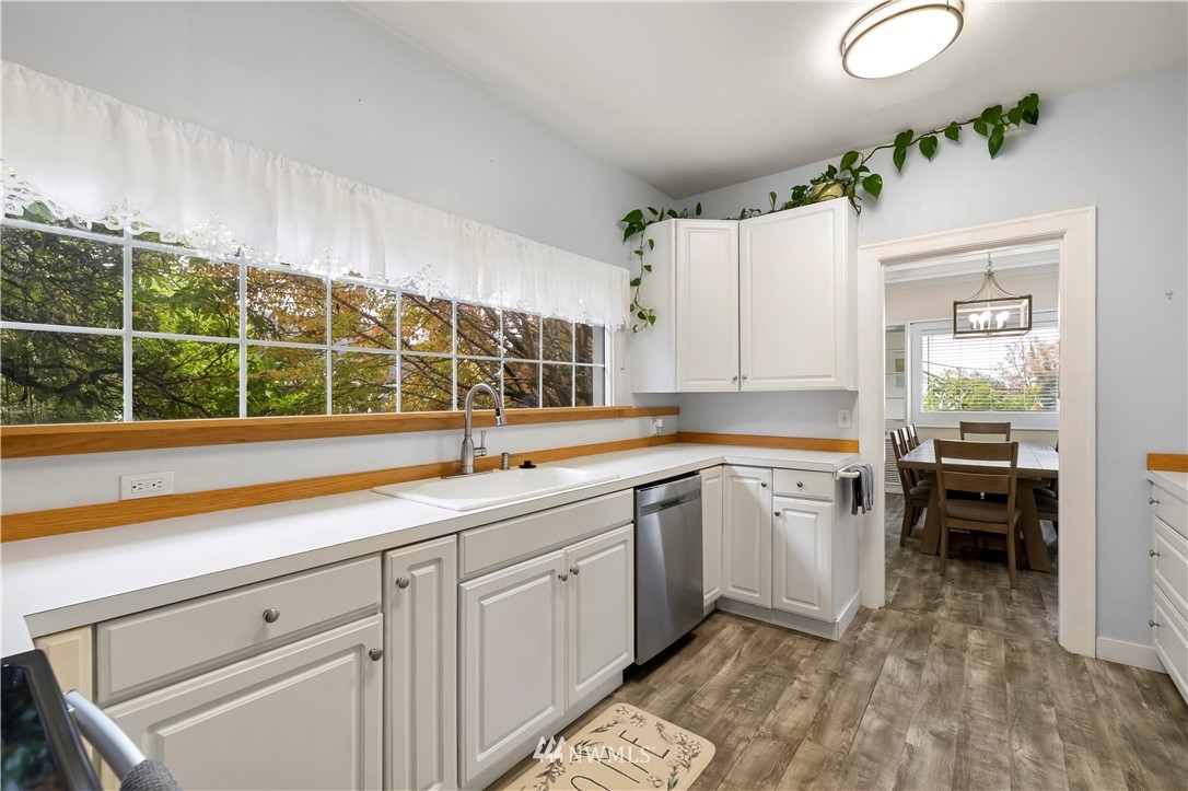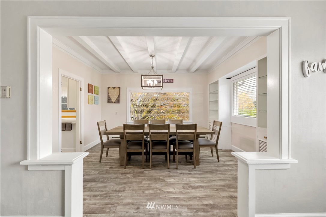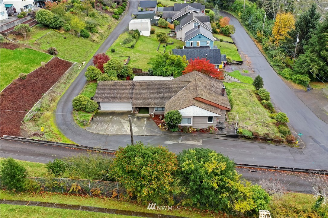 Charming Hoquiam Hill Home! With ~2275 sqft, 4 bedrooms and 1.75 bathrooms, and nice updates throughout. Great sized living room with fireplace opens to formal dining with charming built ins. Newer flooring and appliances in the kitchen and built-in breakfast nook next to large rec room with office space. Master bedroom on the main floor along with one other bedroom and updated full bath. Bonus living downstairs with one bedroom and attached 3/4 bath. Upstairs is ~450 feet of bonus space and/or bedroom (part of the 4). Outside features attached two-car garage with greenhouse bump out, covered patio and hot tub area. Sits on a corner lot and out of flood zone!