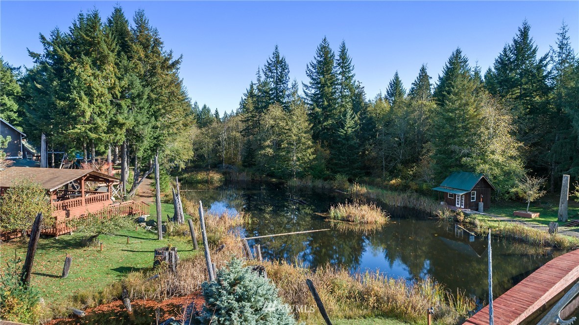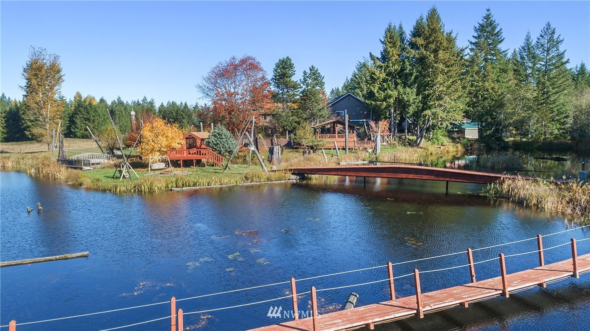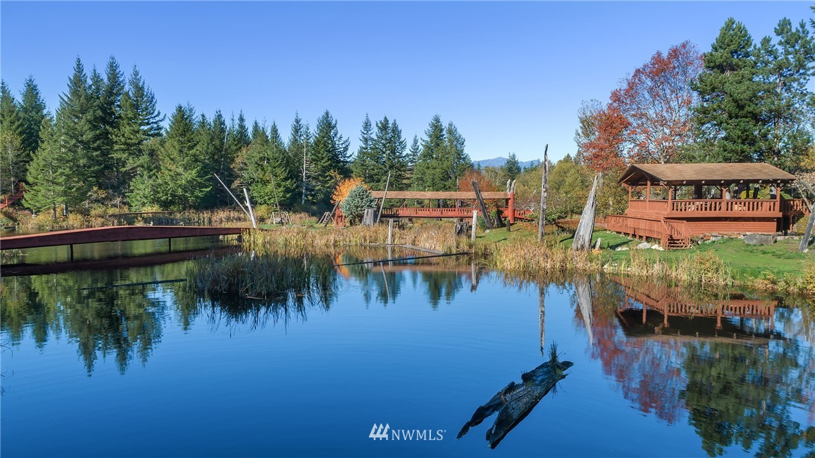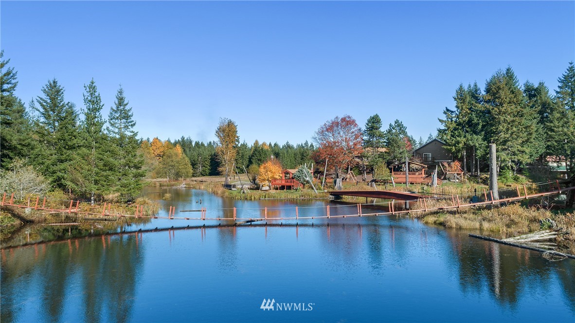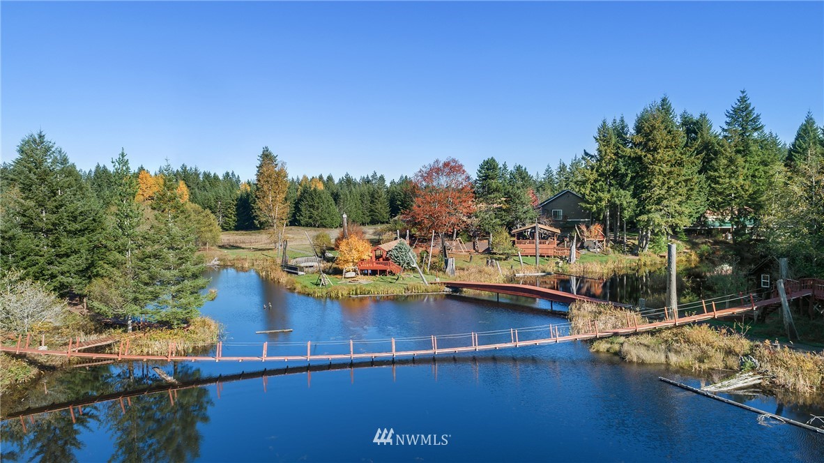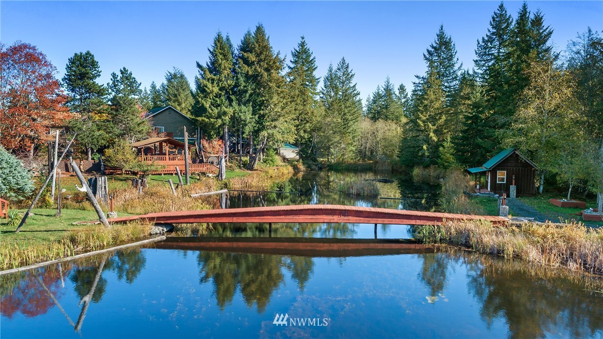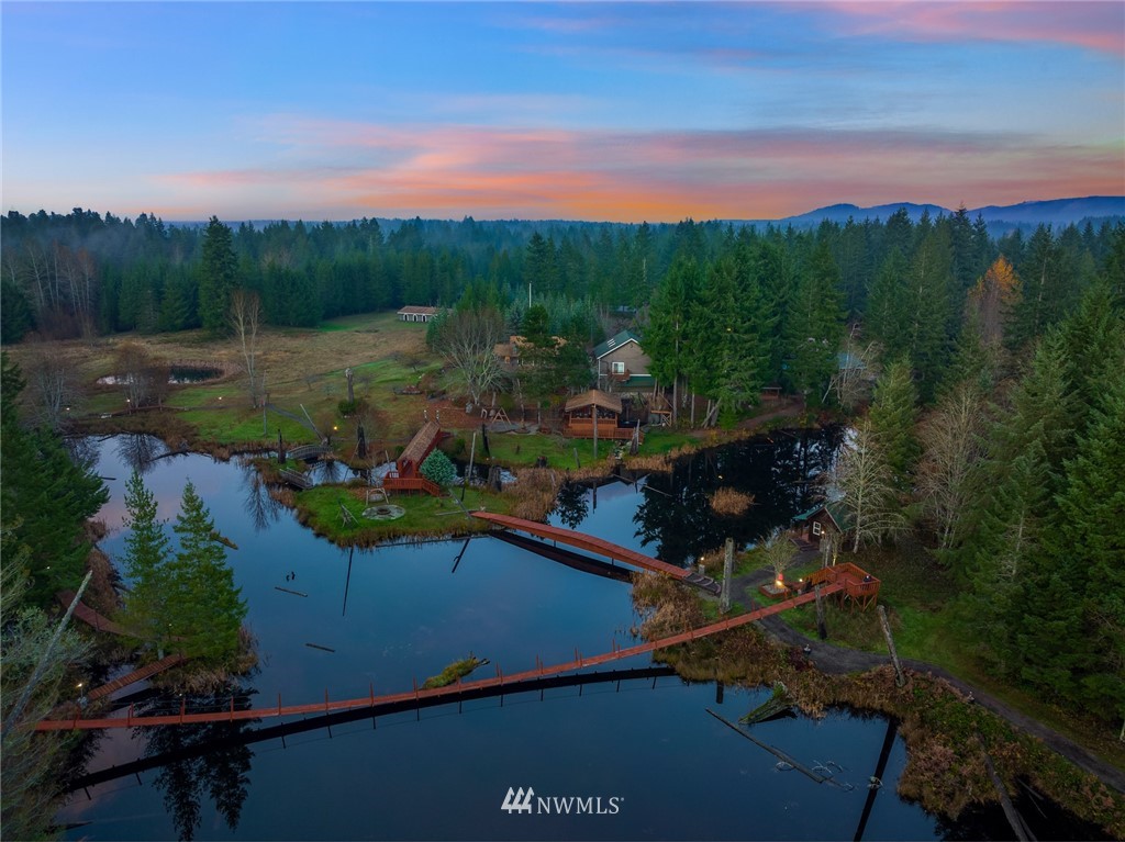Stunning & rare “Thomas Kinkade” like view Estate featuring 22+ acres w/ picturesque ponds/waterways complete w/ covered bridge & suspension bridges, natural wildlife, MTN view & landscaping. Utilize this amazing property to ENTERTAIN as a Wedding/Gathering VENUE for addt'l INCOME or utilize the 40x60 insulated shop/acreage to run your Business & fast 1GB FIBER OPTIC Internet. Features: 4065 SQFT French Country feel Home w/HUGE custom bonus room, Gazebo perched above the large pond FULLY stocked w/Rainbow Trout, lighted trails throughout, custom milled woodworkings, 30x70 Horse Stall Stable w/ power/water. Covered Parking 17+ Vehicles! Small community feel w/ convenient location to Silverdale providing waterfront, shopping, hospitals, etc.