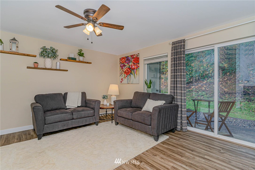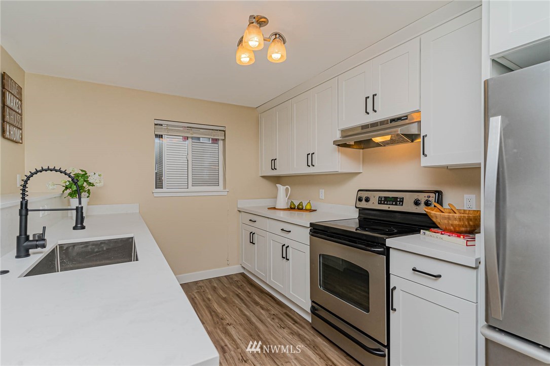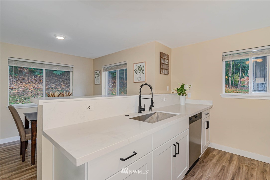 Beautifully updated Condo Home conveniently located in the heart of downtown Issaquah. Great floor plan with 2 spacious bedrooms and 2 updated full bathrooms. Gorgeous kitchen boasts brand new cabinets with amazing quartz counters. New flooring and interior paint throughout most of the home. 2 dedicated parking spaces, one covered. Patio with storage backs up to green belt providing serene privacy. Full size washer & dryer stay. Low Homeowner Dues. Close to shopping, dining, trails and so much more! Right off I-90 corridor. Walk score of 73. Coveted Issaquah School District.