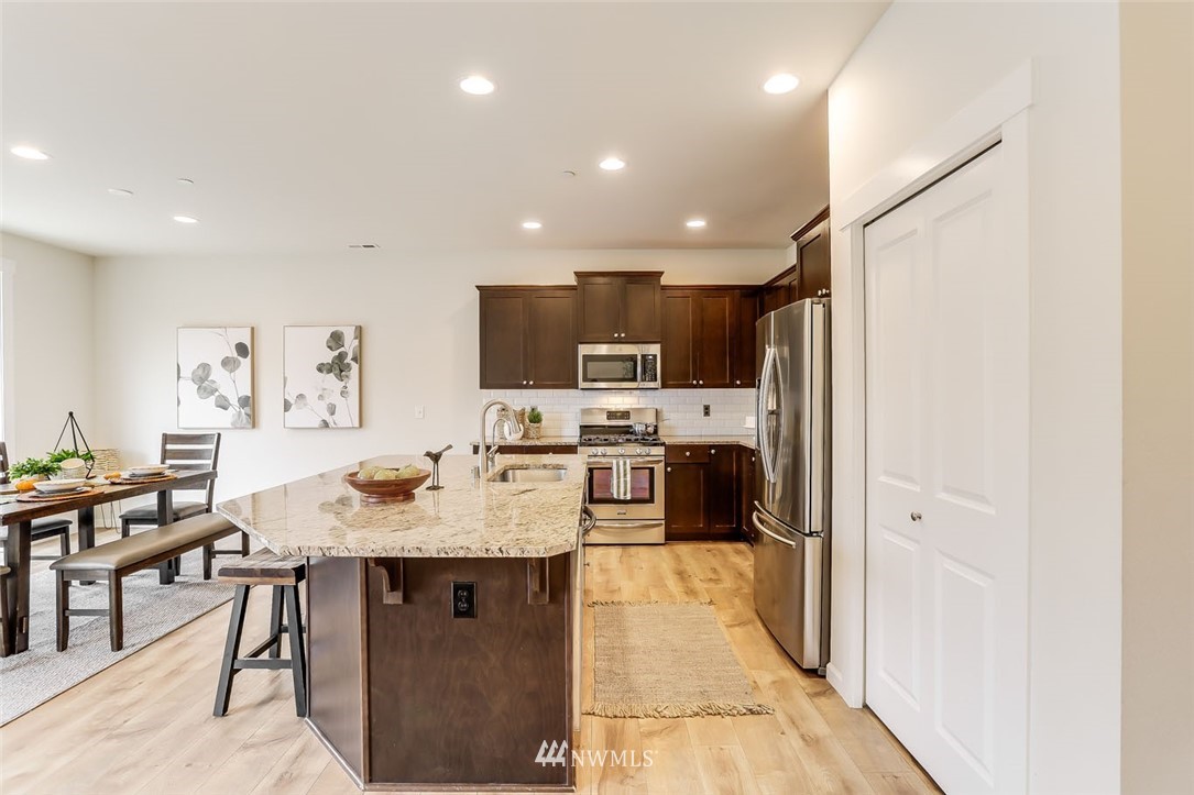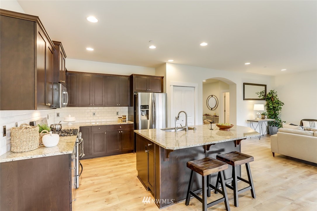 Welcome to Ridgewood Lane & this gorgeous 5 bed+bonus, 3 bath home on a quiet cul-de-sac. New in 2016, this lovely DR Horton home features high ceilings, large, light-filled rooms & gleaming engineered hardwood floors. Enormous chef’s dream kitchen features granite counters, espresso cabinetry, stainless steel appliances & open sight lines to the great room for easy entertaining. Enjoy a spacious bedroom & 3/4 bath on the main floor! Upstairs, you will find a stately primary suite w/walk-in closet & stunning en suite bath. 3 addit'l bedrooms & versatile bonus room round out the upper level. Ideally located, backing to Ridgewood Elementary, enjoy easy access to freeways, SeaTac airport, hospital, major retail, dining & business hubs.