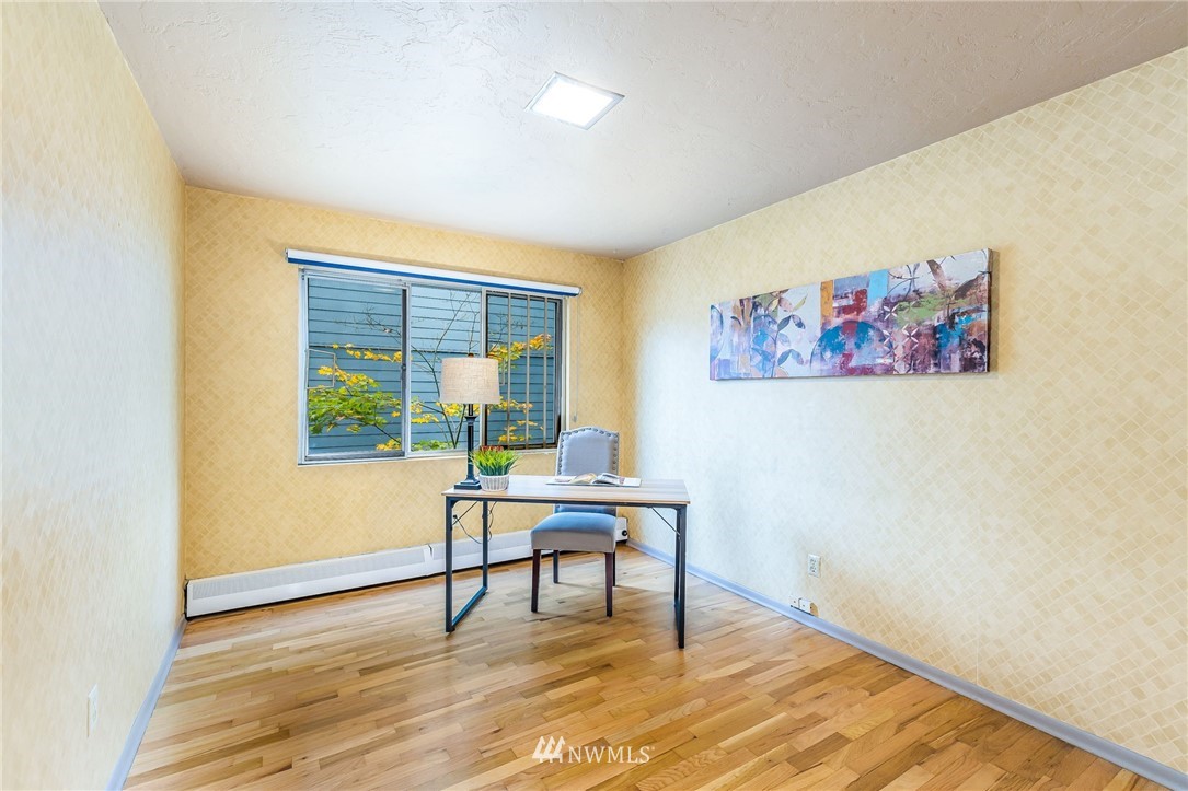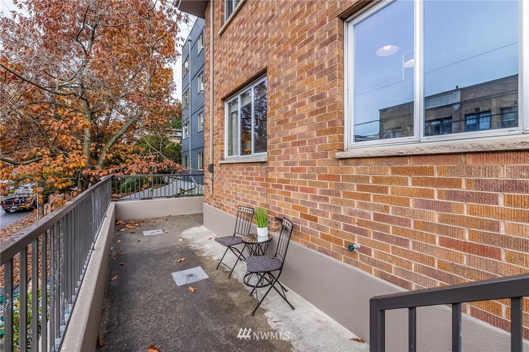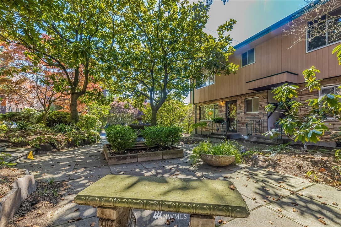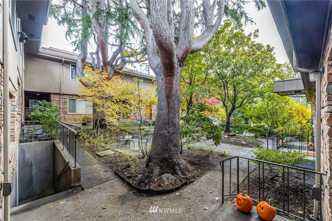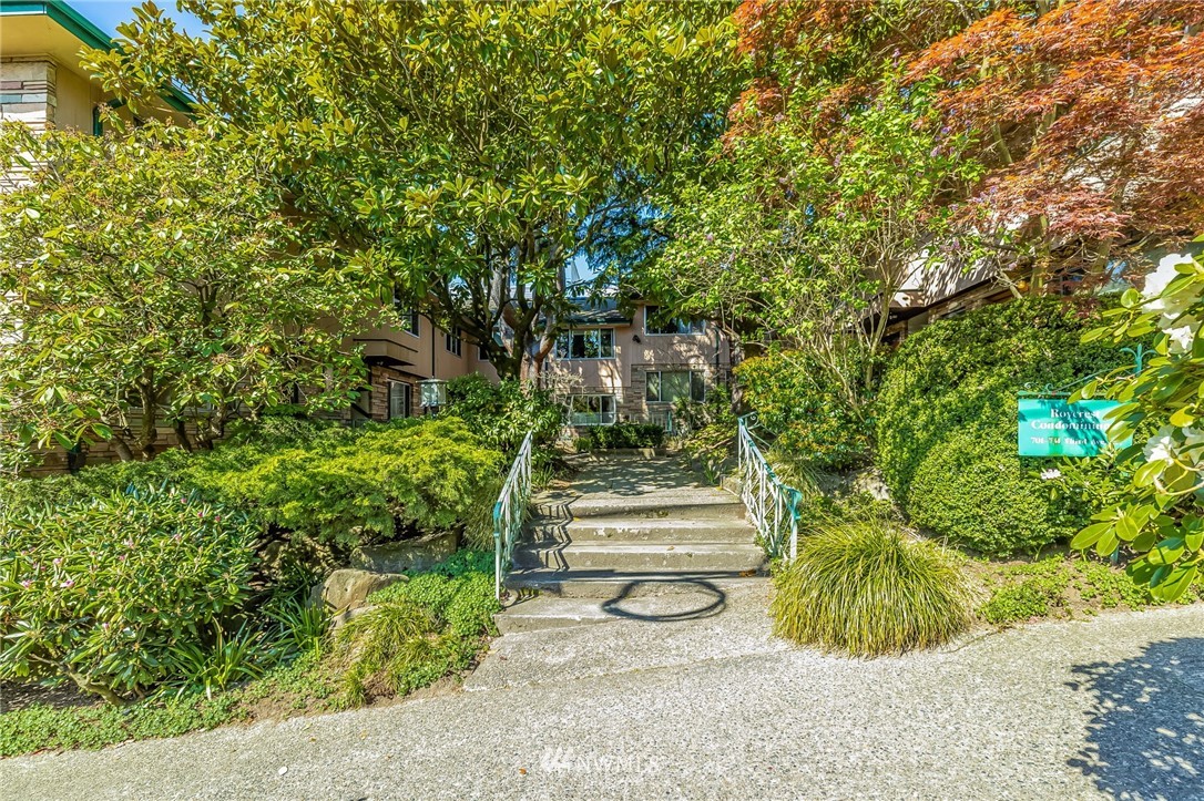 Classic Mid-Century Details in RoyCrest Condos! Lovely Corner Unit w/Oversized Windows & Tons of Natural Light. Patio Space, Views of Space Needle + Private Oversized Garage. Central Courtyard with Lush Landscaping & Towering Evergreen Trees. Small Quaint Building & Tight-Knit Community. Laundry Room, Secure Storage Space & Close to Everything with WalkScore of 90! Generous Sized Bedrooms w/Closet Lights & Organizers, Good Storage Thru-out, Original Hardwood Floors & Updated Lighting. Kitchen w/White Cabinets, Butcherblock Counters, Subway Tile Backsplash, Tile Floor & Stainless-Steel Appliances. Two Entrances to Unit for Cross Ventilation! Updated Exterior w/Fresh Paint & Proactive HOA. No Rental Cap & Very Pet Friendly.