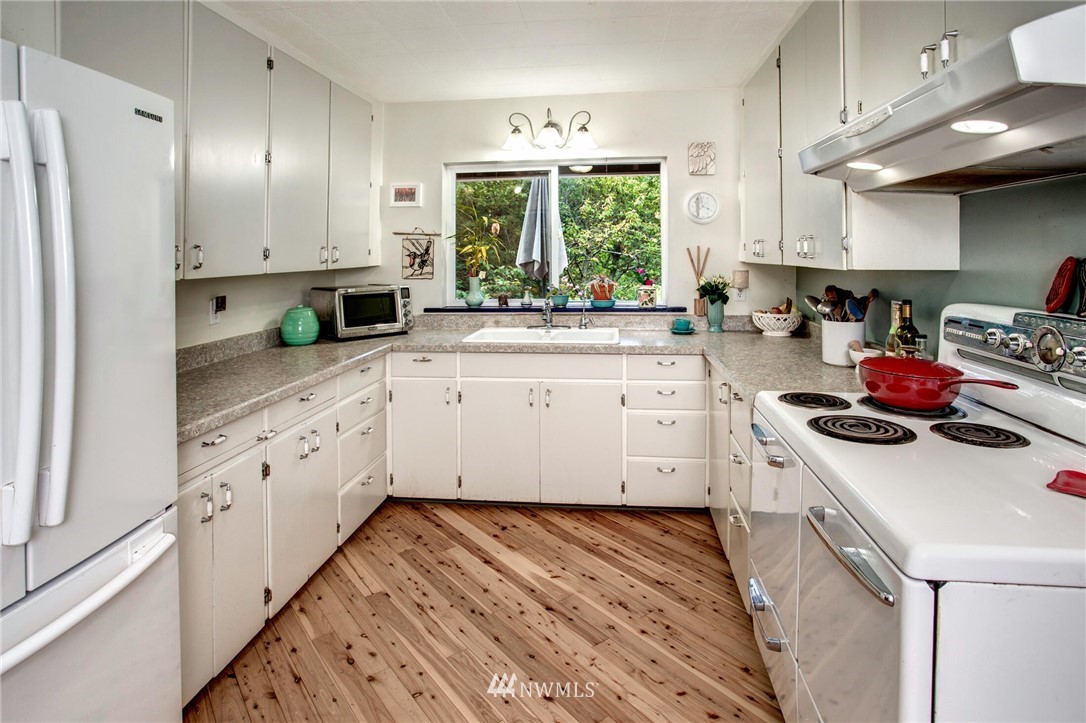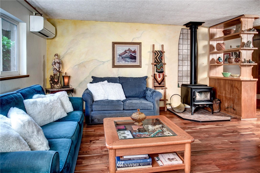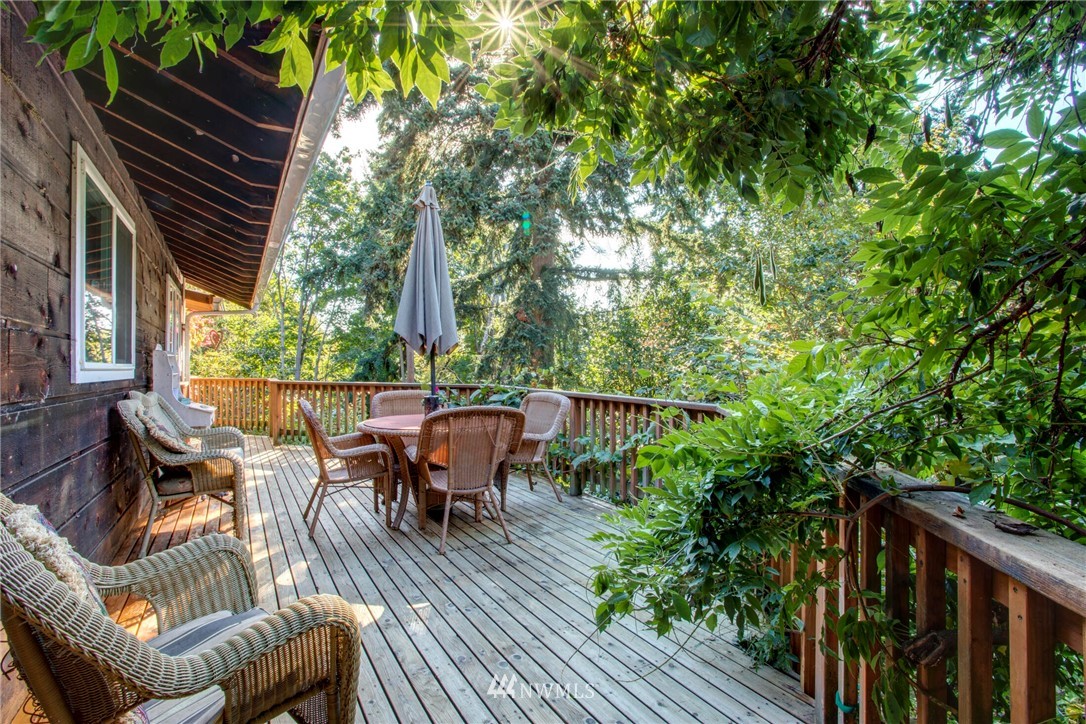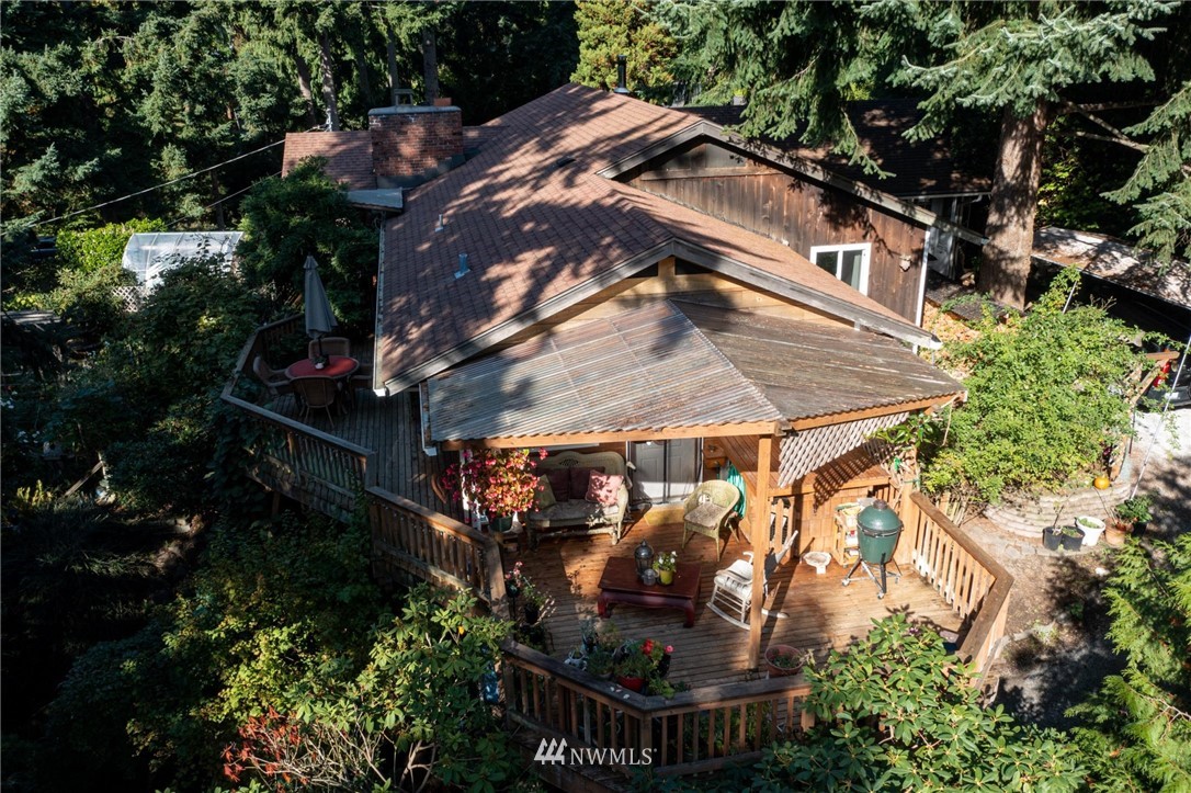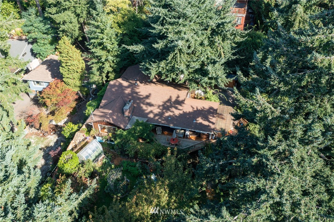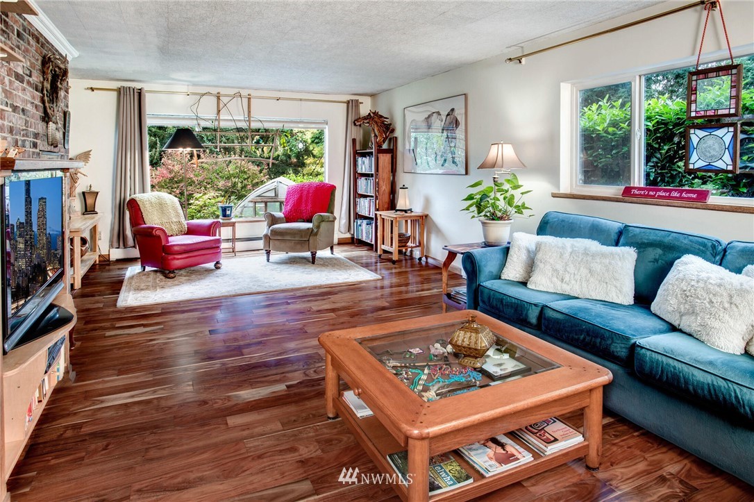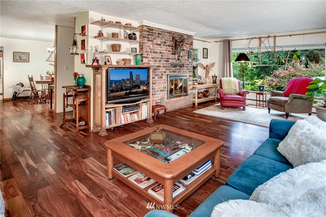 Secluded on dead end street in the heart of wonderful Seahurst neighborhood. This solid mid-century house is the perfect getaway nestled in a park-like setting created by lavish gardens and 18,900 sq. ft. of private property to embrace nature and Mother Earth. Natural charm and peaceful vibes welcome you in every space. Bright open living room with large picture windows, two fireplaces and beautiful wood floors. Dining room and sweet kitchen look out to lovely garden spaces and large wrap around deck to enjoy the surrounding tranquility. Three bedrooms on the main floor. Downstairs family room with fireplace and tons of potential. Plenty of off-street parking. The perfect home for quiet times and a unique property to enjoy with friends.