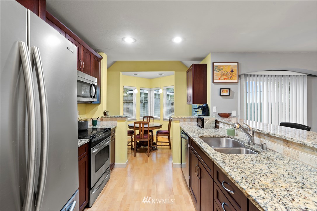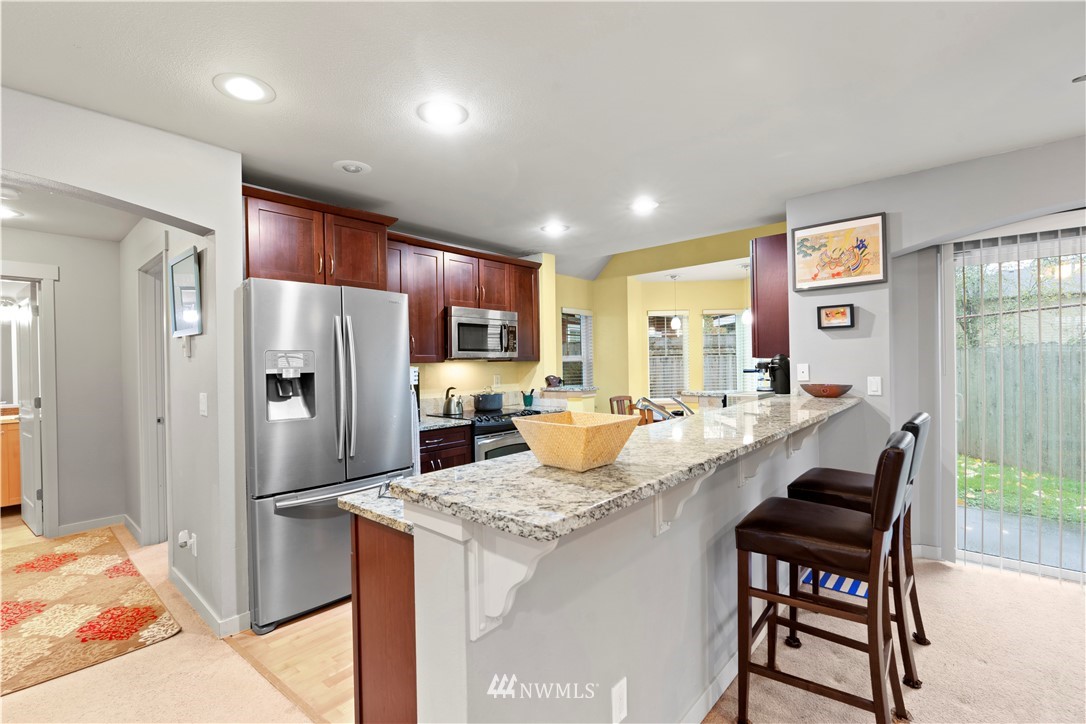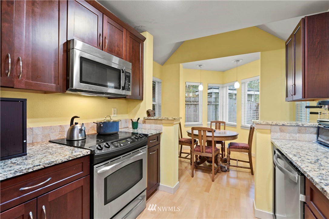 Welcome home to this charming 3 bedroom, 1.75 bath cottage home. This well-maintained detached condo features an open floor plan with arched doorways and oversized windows. The bright kitchen features granite countertops, GE profile stainless steel appliances, and a cozy eating nook. Upstairs boasts raised ceilings and a bonus space perfect for a work-from-home office. Affordable HOA dues cover garbage and ground maintenance. Conveniently located within minutes to major arterials and Alderwood Mall.