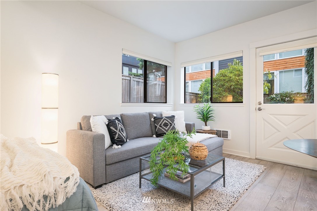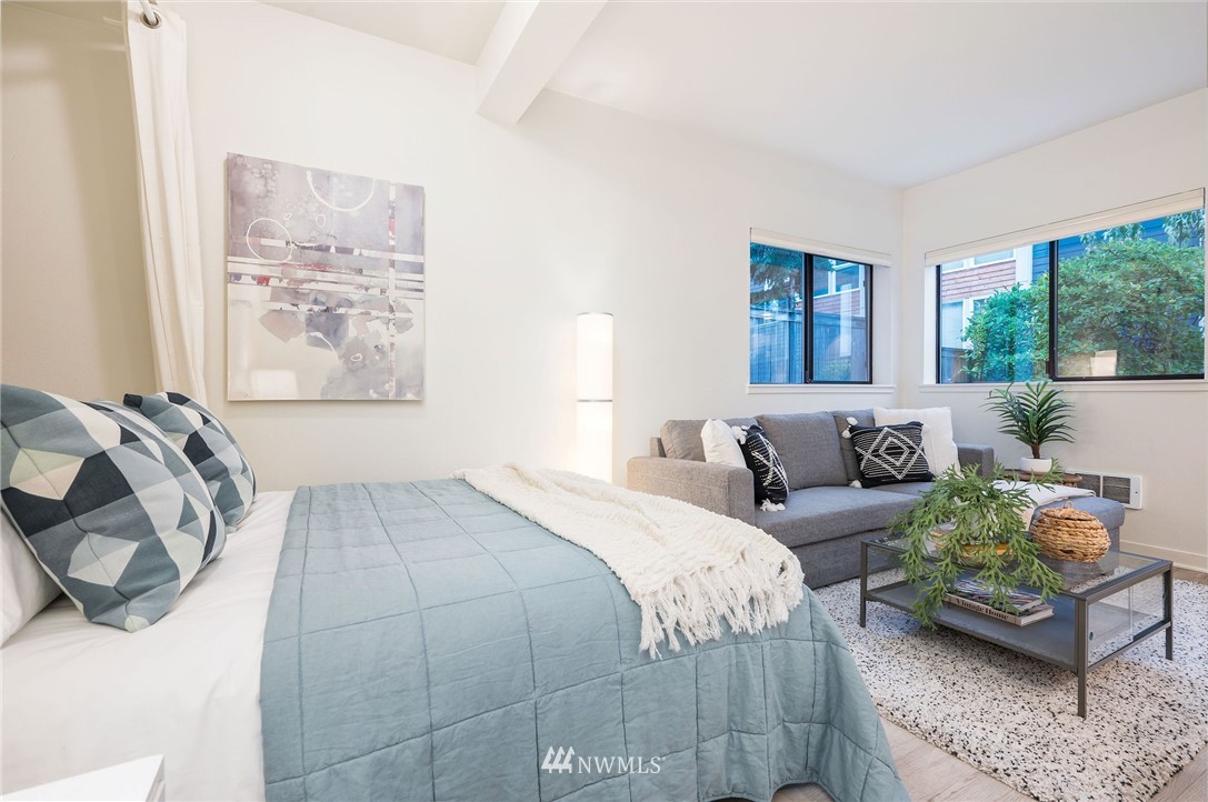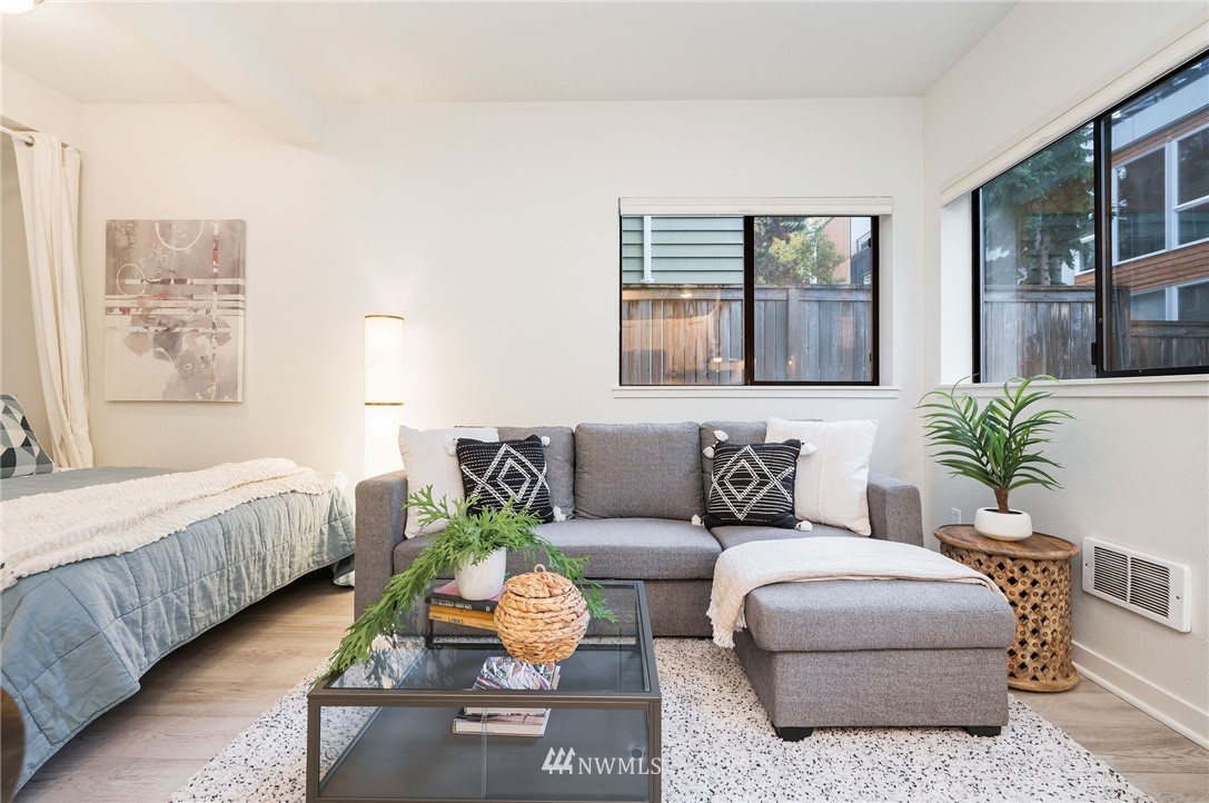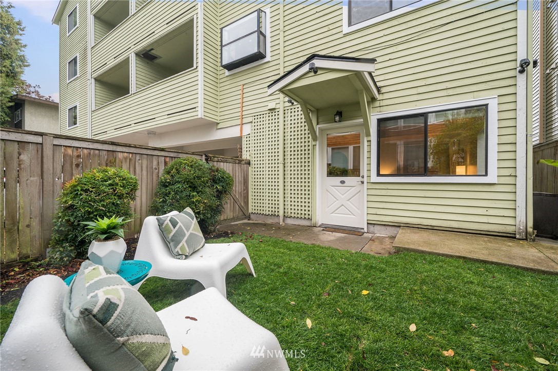 This sweet gem offers the opportunity to have your very own Seattle pied-Ã -terre. Charming ground floor unit with it's own separate entrance and private yard. Everything you need, including a built in murphy bed, washer and dryer in unit, full kitchen with newer counters and flooring and fresh interior paint. Private yard is fully fenced and perfect for a furry friend or outdoor enjoyment. No stairs required and a dedicated parking space in covered garage for easy unit access. FHA approved building is well-managed and dues include water/sewer/garbage. Enjoy in-city amenities, easy commuter access, and the new nearby light rail station.