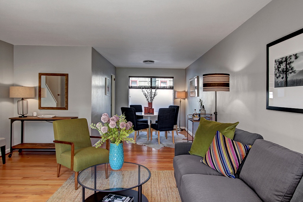 A Rare opportunity at Park Manor, a townhouse style condo tucked away on a quiet tree lined street in a prime North Capitol Hill location. 16 units surround an open central grassy courtyard. 3 levels and 1440 square feet provide plenty of space. Hardwoods. Big Windows. Updated kitchen. Newer Gas furnace. 2 bedrooms up with generous closets. Rare lower level for media/office/flex space with additional storage. Solid and stable HOA. 2 blocks from everything 15th has to offer.