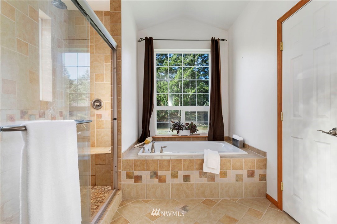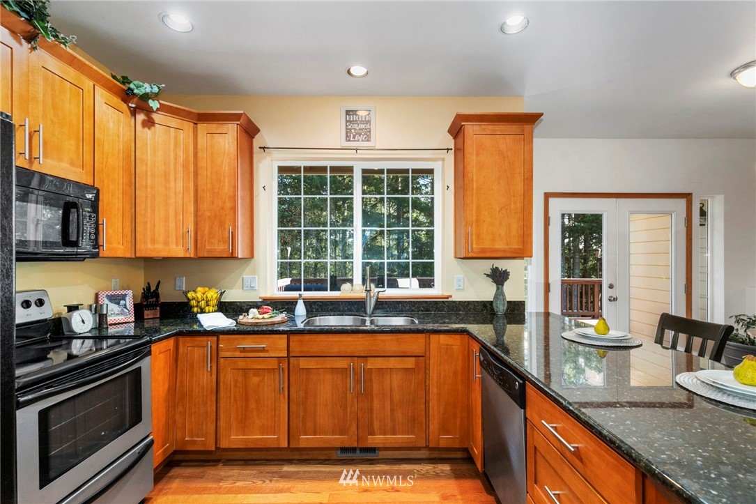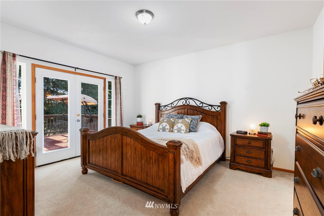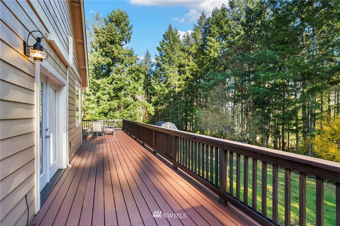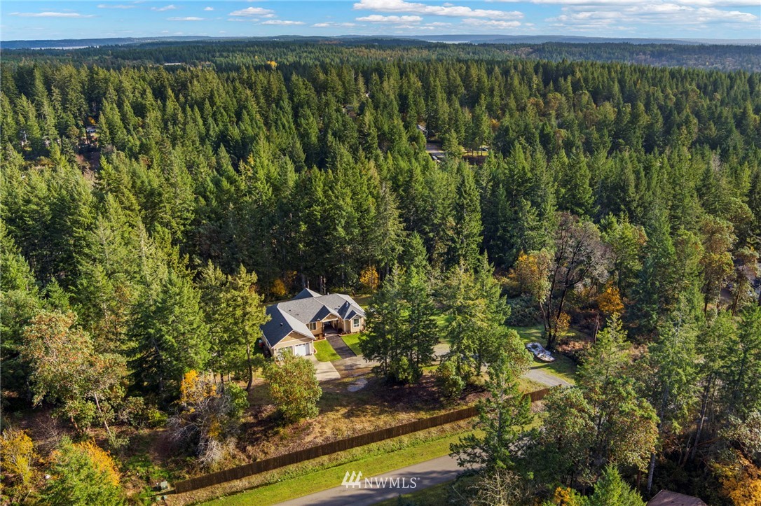 Peacefulness awaits you in this elegant 3037sf daylight basement home on 2.5 acres. Quality finishes and spacious rooms including a main floor primary suite with deck access and gorgeous 5 piece bath with soaking tub, dual sinks and oversized tiled shower. Comfortable open living on the main floor with eating nook and formal dining room, gas fireplace, large laundry area, oversized garage and a full length deck to relax or entertain. Lower level features 2 additional bedrooms, full bath, entertainment area with an additional fireplace plus the perfect space for a home theatre. Enjoy living in the fantastic community of Joemma Beach with a private trail to the beach only minutes away at the end of 30th Street.