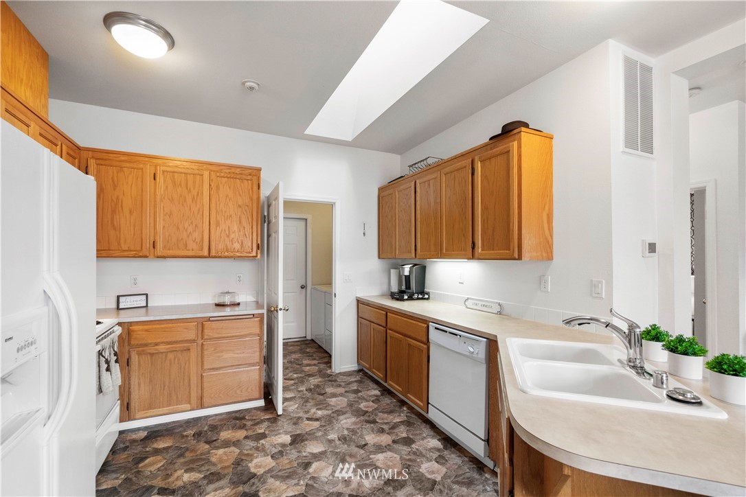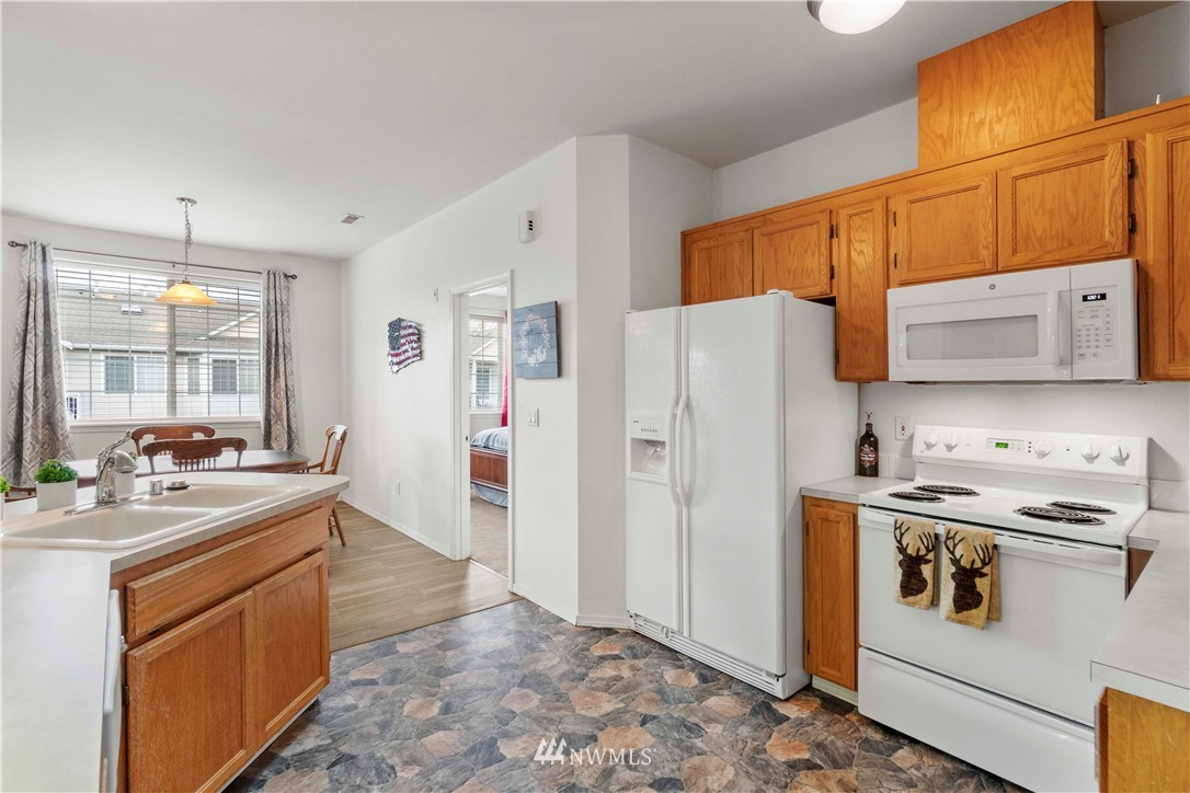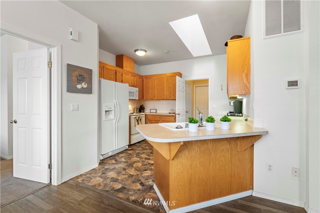 Welcome home! Top floor low maintenance end unit with new flooring and new AC. Open floor plan with great room feel, dining room and gas fireplace in living room. Natural lighting, ample storage, laundry room and private attached garage. Master bedroom with large private bath and walk-in closet. Close to shopping, WA State Fair, schools and ideal for commuting.