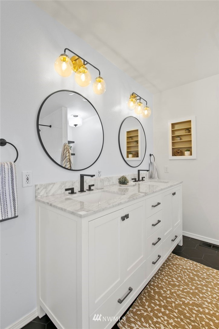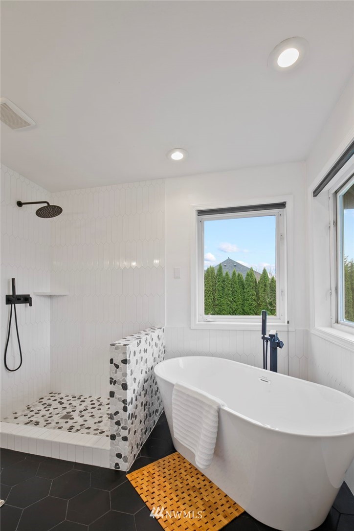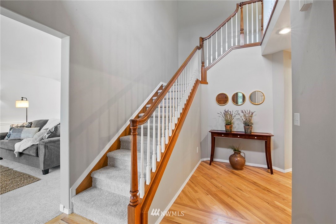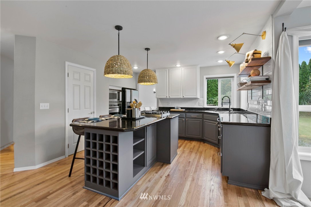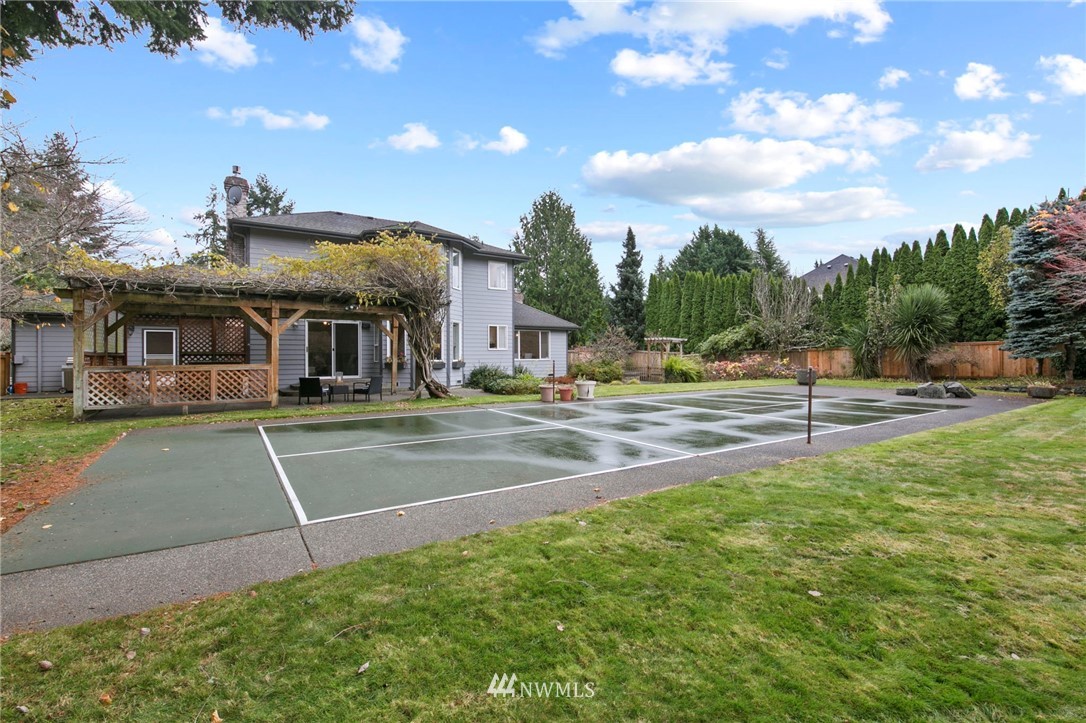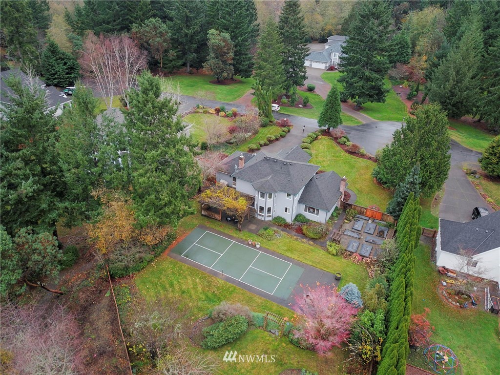 Incredible updated home in the beautiful neighborhood of Olympic Hills. Minutes to Sehmel park and trails. Home sits on over an acre studded with fruit trees, a garden with raised beds, a secret garden and a sports court. Beautiful grounds to look out of your 2nd floor primary bedroom bay window. Inside, you will find updates galore! Kitchen repainted and updated with designer touches, new fireplace surround, new carpet, hardwood floors refinished and a brand new primary bathroom with soaking tub new tile and vanity with quartz countertops. Brand new roof coming Monday! 3 car garage, generator, and 220 power and heat pump. Come see!