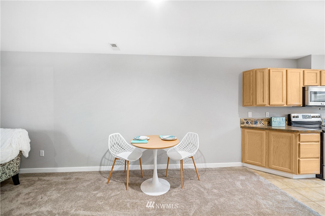 Tranquil living in this beautiful updated 2 bedroom townhome.The kitchen is open to dining/living room with gas fireplace and sliders out to covered patio with lawn space. Upstairs is the primary bedroom with private covered deck, walk in closet and bathroom. 2nd bdrm also has walk in closet. Detached garage, 1 assigned parking space.The upgrades in this home are fantastic! There are all NEW interior doors w/casings, trim and molding, and interior paint throughout, new high grade carpet and pad installed, and kitchen plumbing under sink. NEW 2 stage Carrier gas furnace, 2-Ton Central AC, Air Scrubber Whole House In Duct Air Purifier. NEW blinds on windows and both sliders.This won't last long! Close to town, Crystal Mountain, and highways.