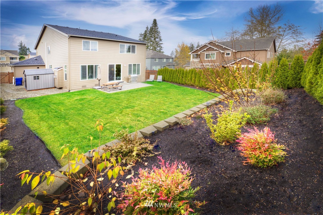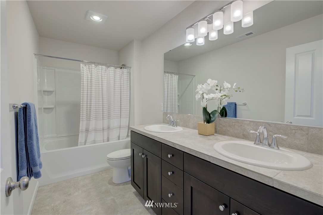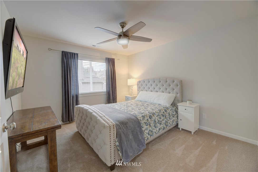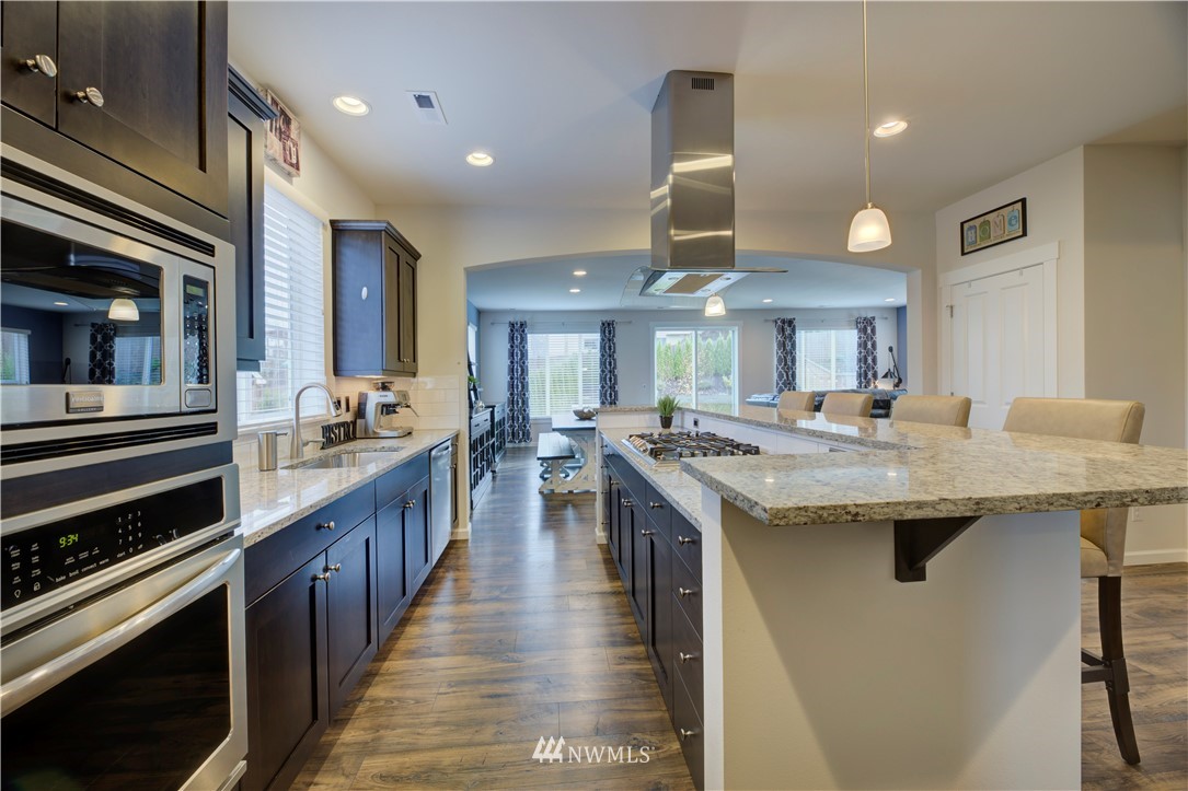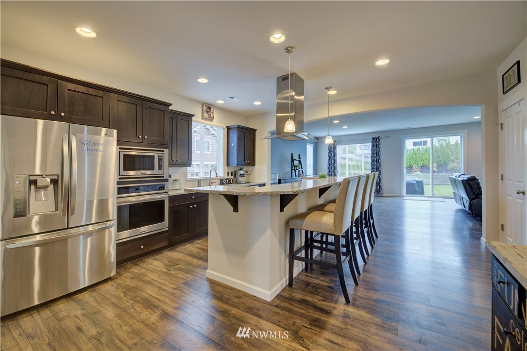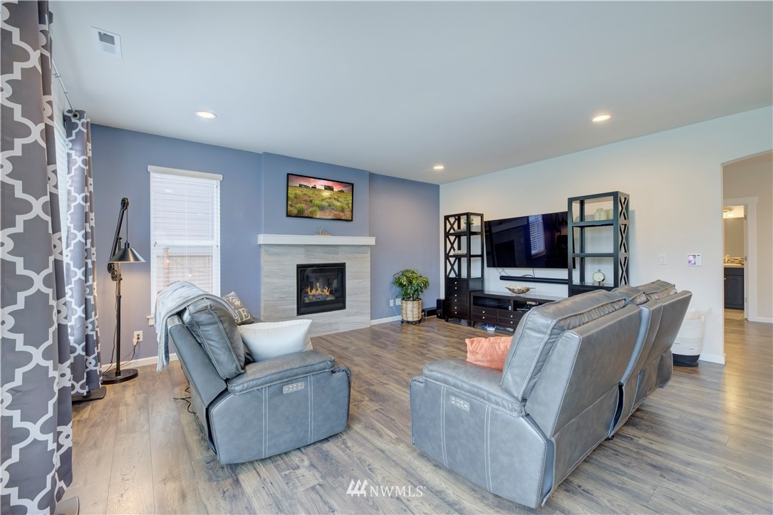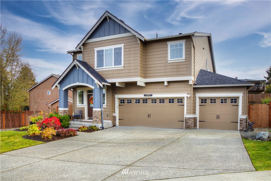 This home shines with luxury details & abundance of space! Inviting foyer w/beautiful flooring, no carpets throughout the main. Dbl doors to the perfect main flr guest bdrm(office or gym) & 3/4 bath. Gourmet kitchen offers entertainment size island, slab granite counters, soft close cabinets & SS appl. to delight any chef! Huge living and dining room features gas fplc & garden views of oversized & beautifully landscaped bkyd. Upper floor with 4 more lg bdrms + bonus! Primary Ensuite boasts 2 walk-in closets, spa-like bath w/dbl vanity, sep. shower & soaking tub. Many high-tech features, security sys, plus still under builder's orig. warranty! 3 car gar + huge drwy. Ideal location on cu-de-sac, near I-5, Ald. Mall & future Light Rail.
