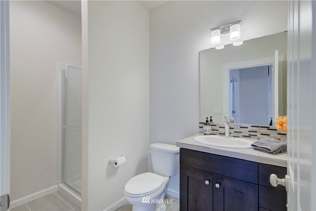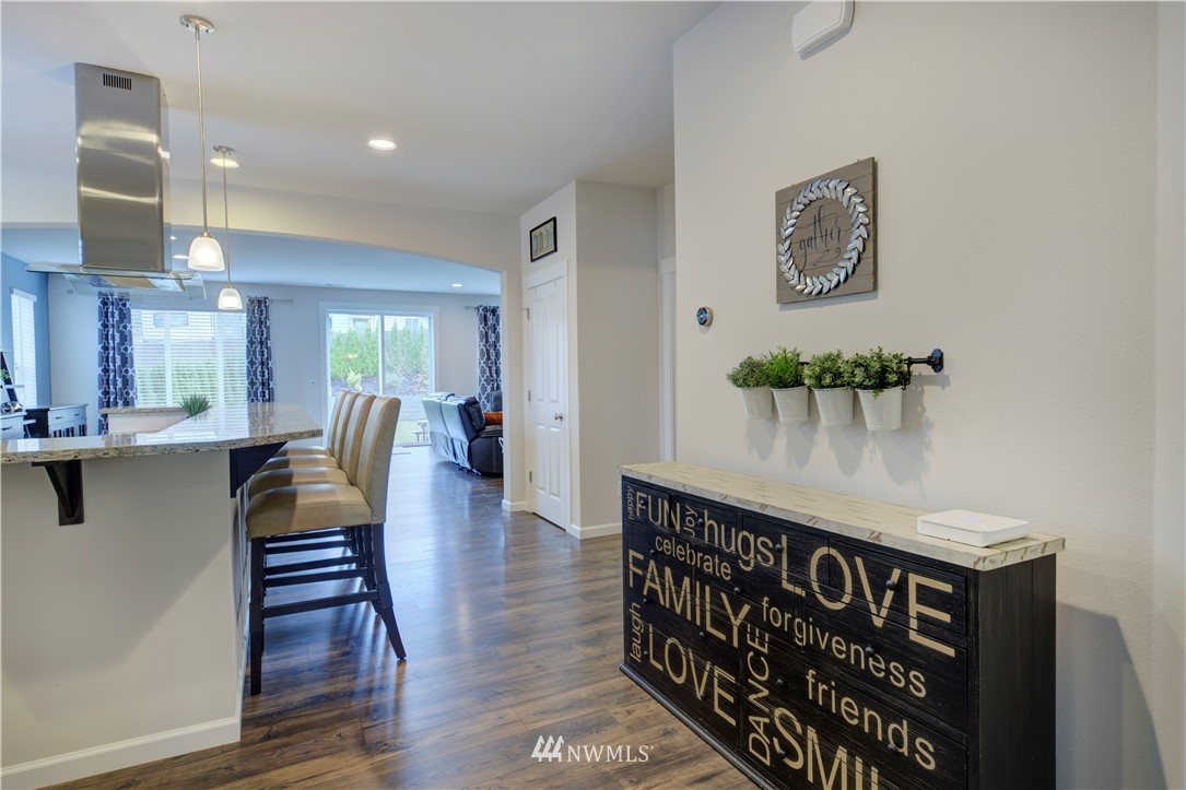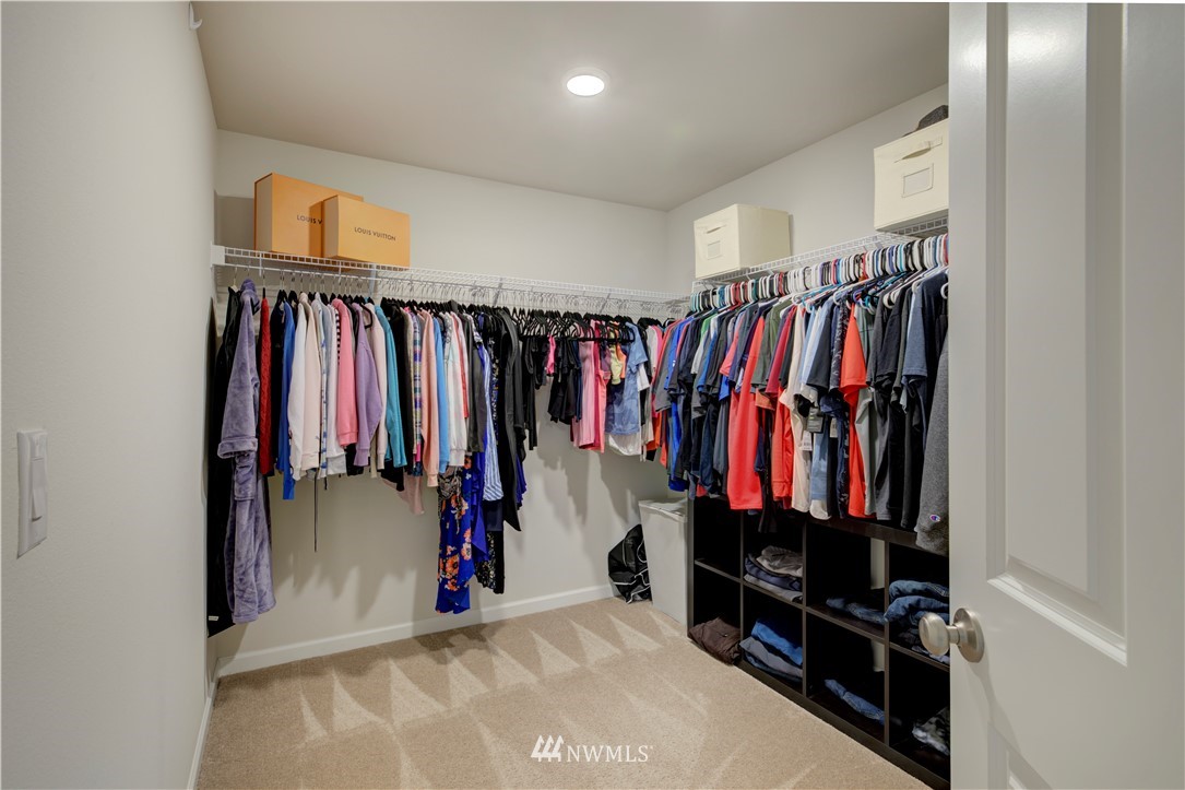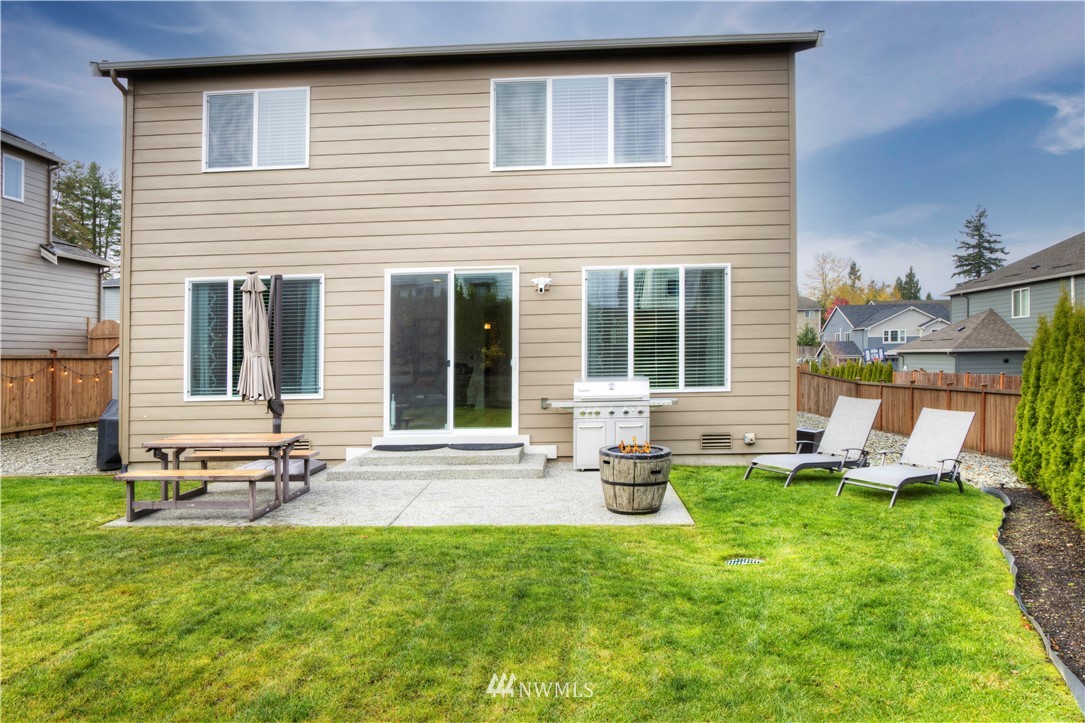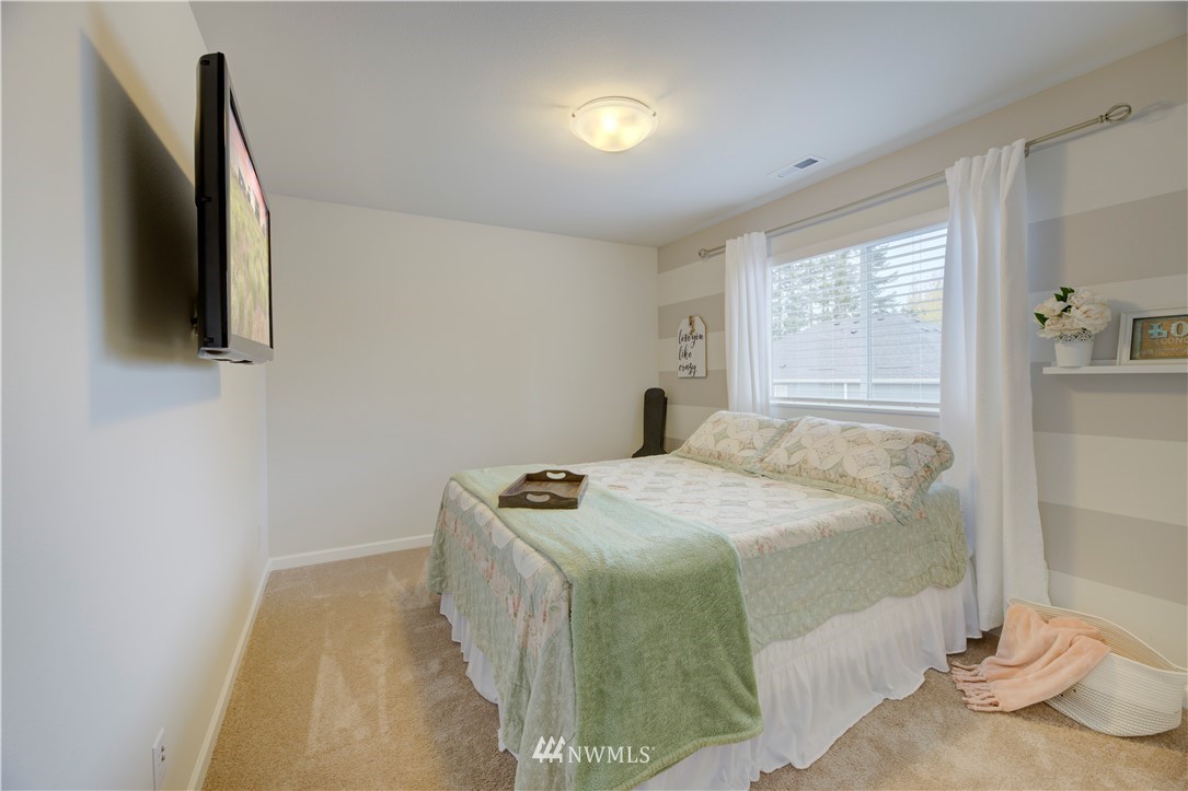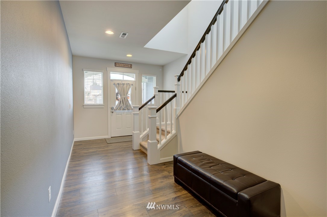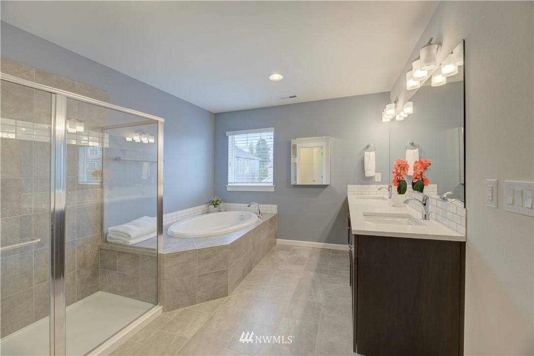 This home shines with luxury details & abundance of space! Inviting foyer w/beautiful flooring, no carpets throughout the main. Dbl doors to the perfect main flr guest bdrm(office or gym) & 3/4 bath. Gourmet kitchen offers entertainment size island, slab granite counters, soft close cabinets & SS appl. to delight any chef! Huge living and dining room features gas fplc & garden views of oversized & beautifully landscaped bkyd. Upper floor with 4 more lg bdrms + bonus! Primary Ensuite boasts 2 walk-in closets, spa-like bath w/dbl vanity, sep. shower & soaking tub. Many high-tech features, security sys, plus still under builder's orig. warranty! 3 car gar + huge drwy. Ideal location on cu-de-sac, near I-5, Ald. Mall & future Light Rail.
