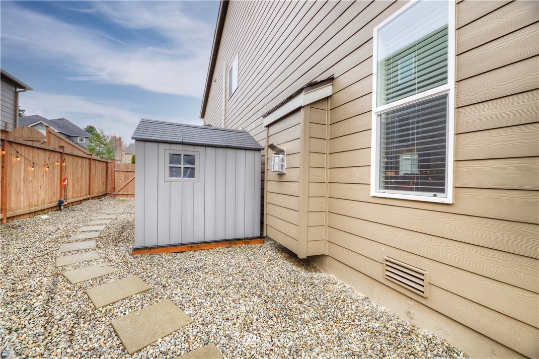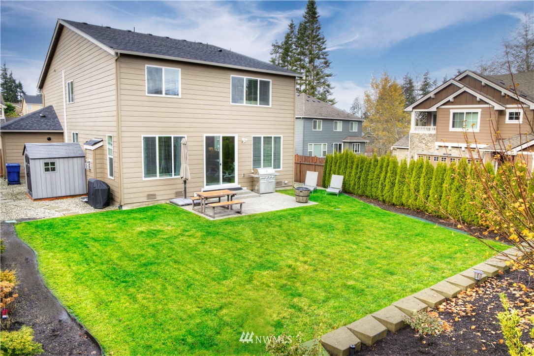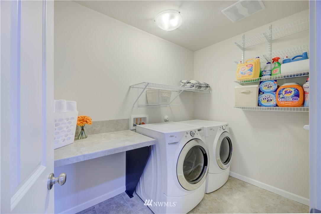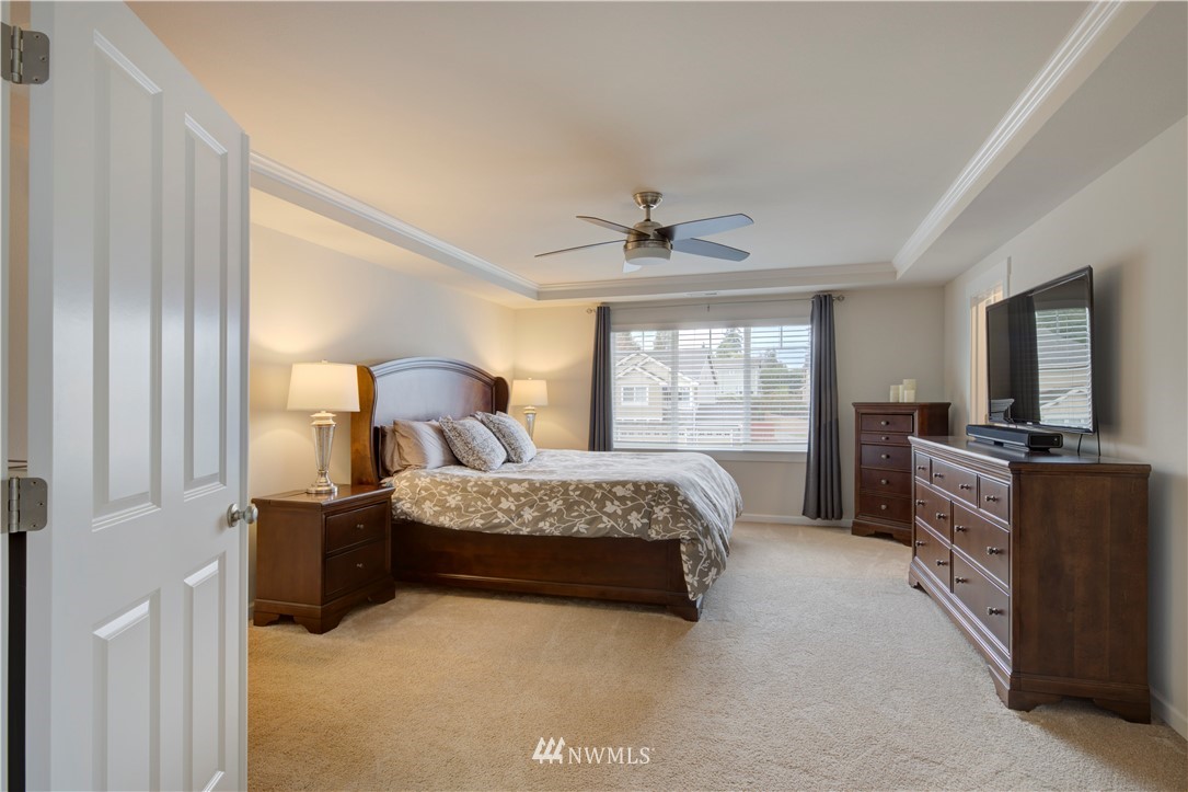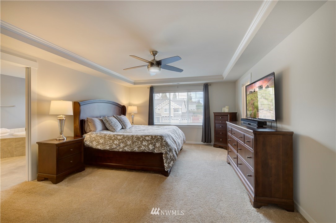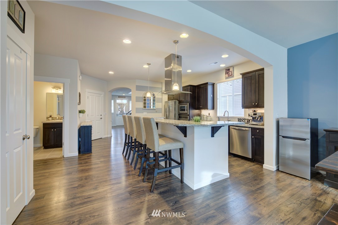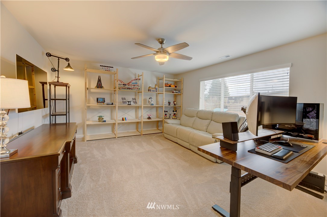 This home shines with luxury details & abundance of space! Inviting foyer w/beautiful flooring, no carpets throughout the main. Dbl doors to the perfect main flr guest bdrm(office or gym) & 3/4 bath. Gourmet kitchen offers entertainment size island, slab granite counters, soft close cabinets & SS appl. to delight any chef! Huge living and dining room features gas fplc & garden views of oversized & beautifully landscaped bkyd. Upper floor with 4 more lg bdrms + bonus! Primary Ensuite boasts 2 walk-in closets, spa-like bath w/dbl vanity, sep. shower & soaking tub. Many high-tech features, security sys, plus still under builder's orig. warranty! 3 car gar + huge drwy. Ideal location on cu-de-sac, near I-5, Ald. Mall & future Light Rail.