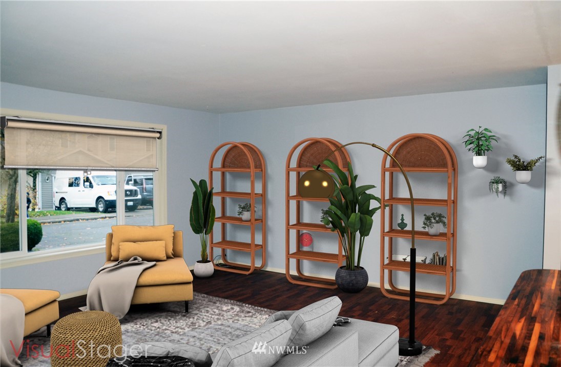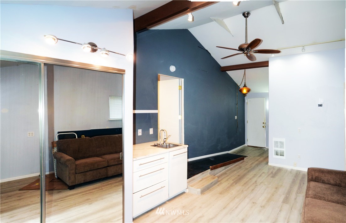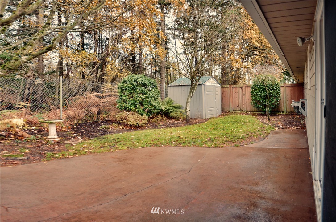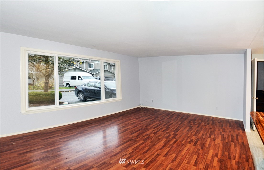 Rare Sale in Shaw Creek Townhomes. One level living with accessible access thruout. Private roomy End unit has 3 bedrooms & accessible walk-in shower bath, garage was built out with 2nd full bath and living area/wet bar. 2 Sliders (from Bonus room and kitchen area) exit to private fully fenced back yard/patio/water feature. Kitchen has been updated with newer appliances, all appliances stay, large center island. Laminate flooring, no carpet. Lots of parking, close to all shopping, Boeing, freeways and schools. Low HOD cover water, sewer, garbage and common area maintenance.