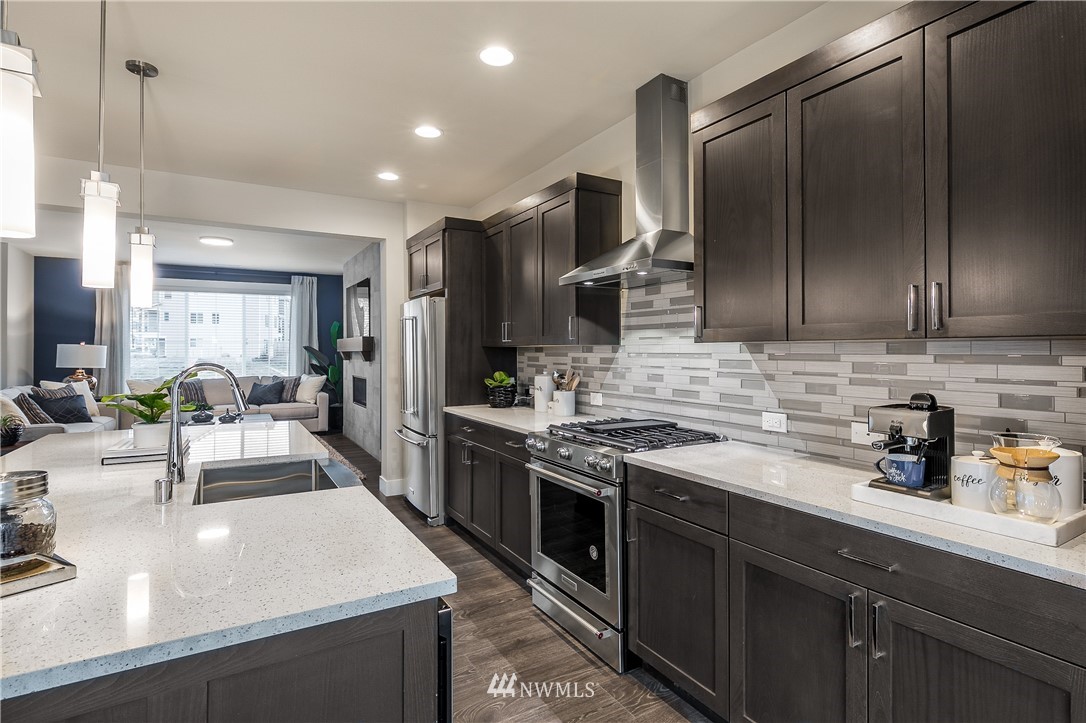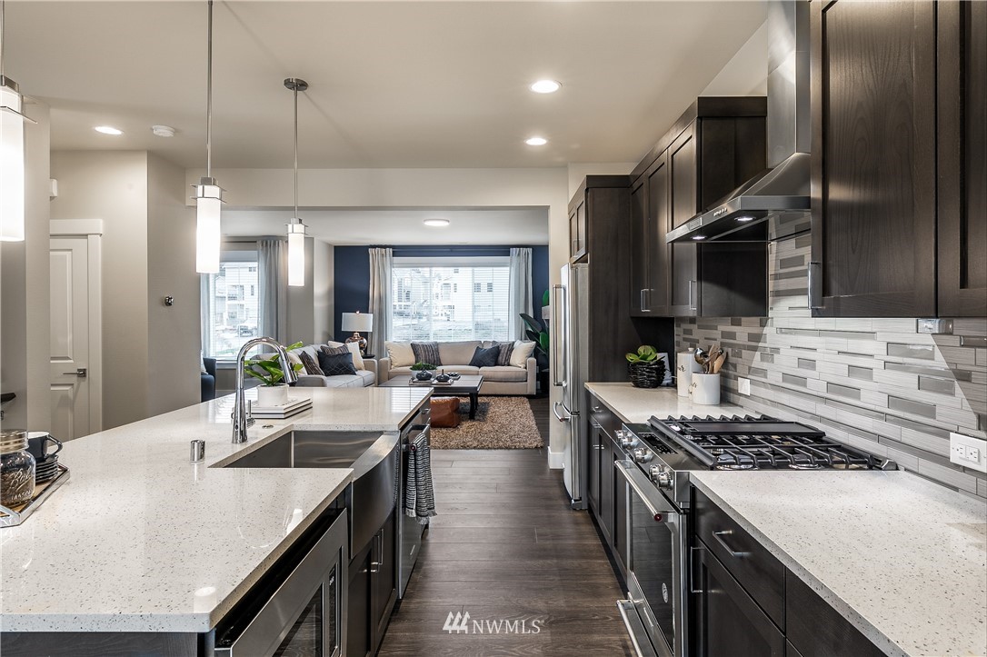 Springfield Court New Release! Detached single family living by RM Homes. Great room styling and exceptional finishes in this perfect sized home with separate flex area and 3/4 bath on the entry level. Covered patio on lower level. Chef's kitchen offers slab quartz, farm style stainless sink, base pull outs and sensor faucet. Huge living room off kitchen. Full height tile on gas fireplace. Hard surface flooring on lower and main floors with rich trim detail through out. Nice covered deck off kitchen/dining area for outdoor barbeque. Vaulted ceiling in the primary suite and luxury bath. Fabulous, huge backyard and full landscaping front and back! Mukilteo School District and highly rated schools. Easy access to l-5 & 405. March completion.