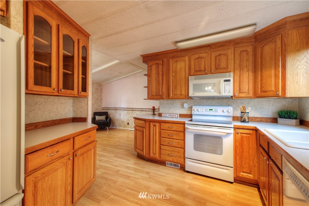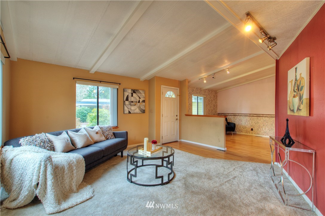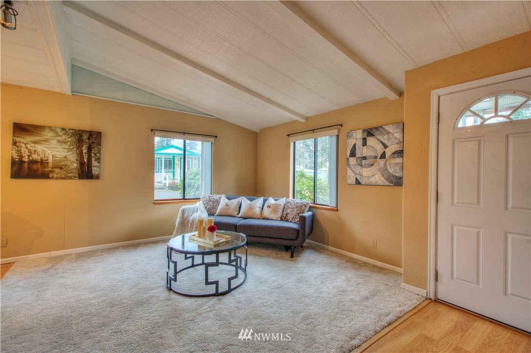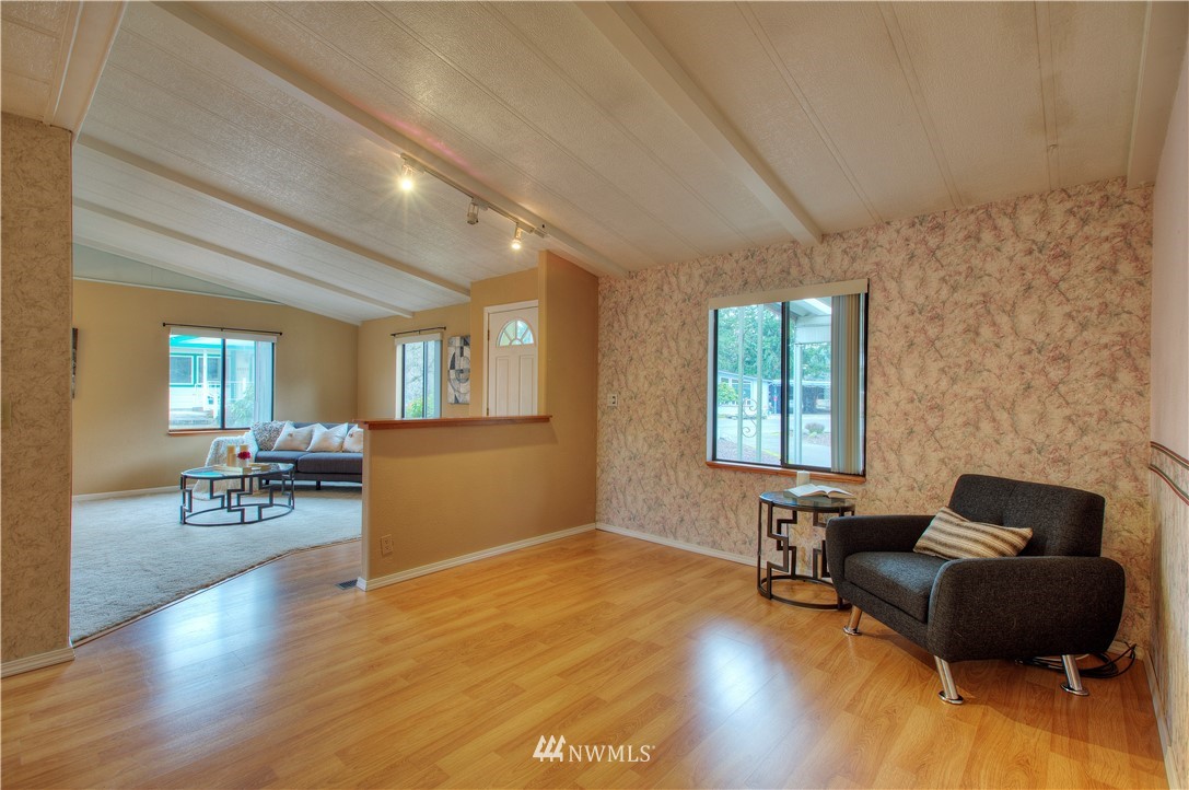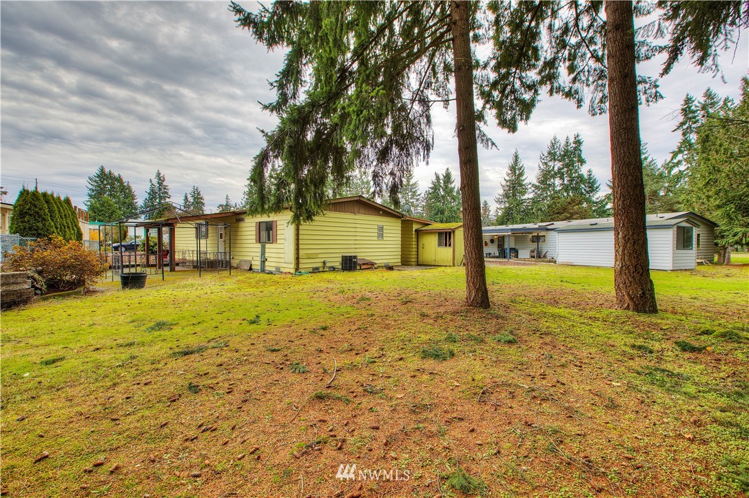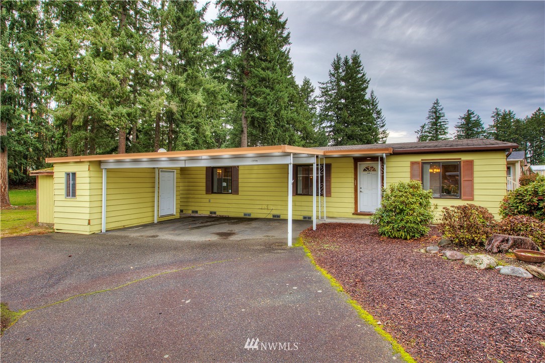 Tall Firs is a well cared-for 55+ condo community on the Puyallup/Graham border. We are happy to offer this 2 bedroom, 2 bathroom, single-level manufactured home on a huge lot that you own too. Open concept living space with vaulted ceilings, updated flooring & generous floorplan. The kitchen is a great hub for activity with a lot of counter space & cupboard storage. Washer & dryer included in a huge utility room. Home also provides a large primary bedroom with it's own en suite bathroom. Community clubhouse, RV parking, and a neighborhood that takes pride in the community. Close to great shopping and restaurants. This is a must-see, can't-miss home. Call and set up a tour!