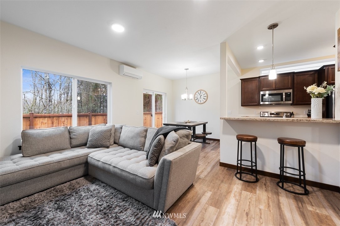 Welcome Home to this beautiful 2021 built home in rapidly growing Granite Falls! The Haines floorplan lives large with tall ceilings and a vaulted master bedroom. Save on energy bills throughout the year with the mini-duct heating system and stay cool in the summers with A/C. Luxury vinyl plank flooring greets you at the front door and carries throughout the main floor. Granite counters, stainless appliances, and a large farmhouse sink will ensure that you love spending time in your kitchen. The laundry room is located upstairs for convenience and the loft makes for a great home office setup, play space, or reading nook. Very close to the heart of Granite Falls, amenities, schools, and highways.