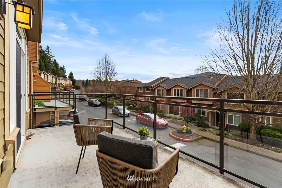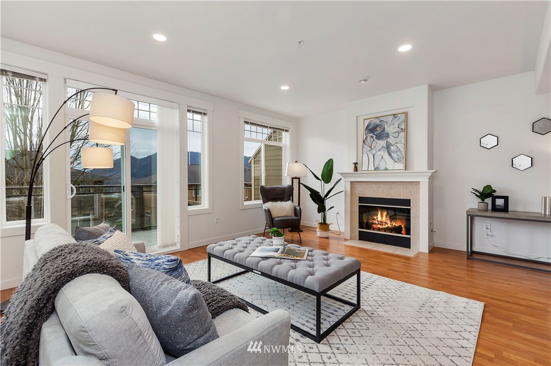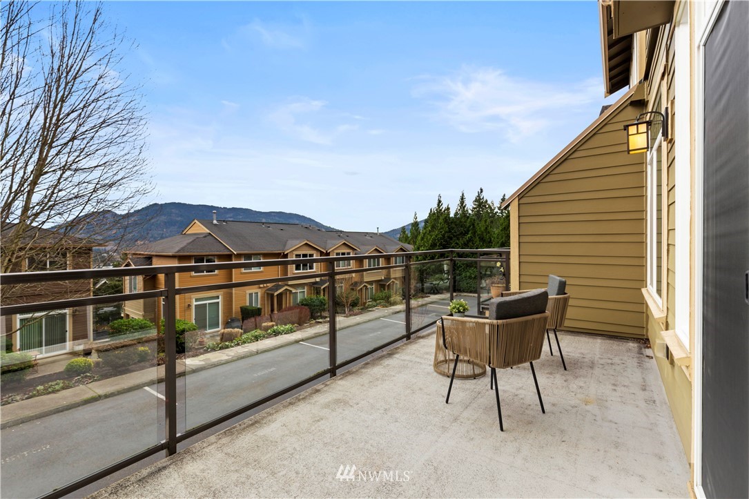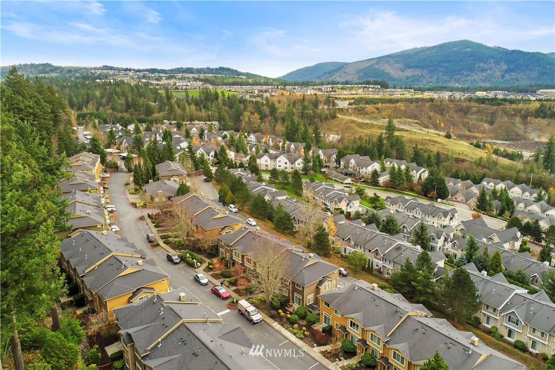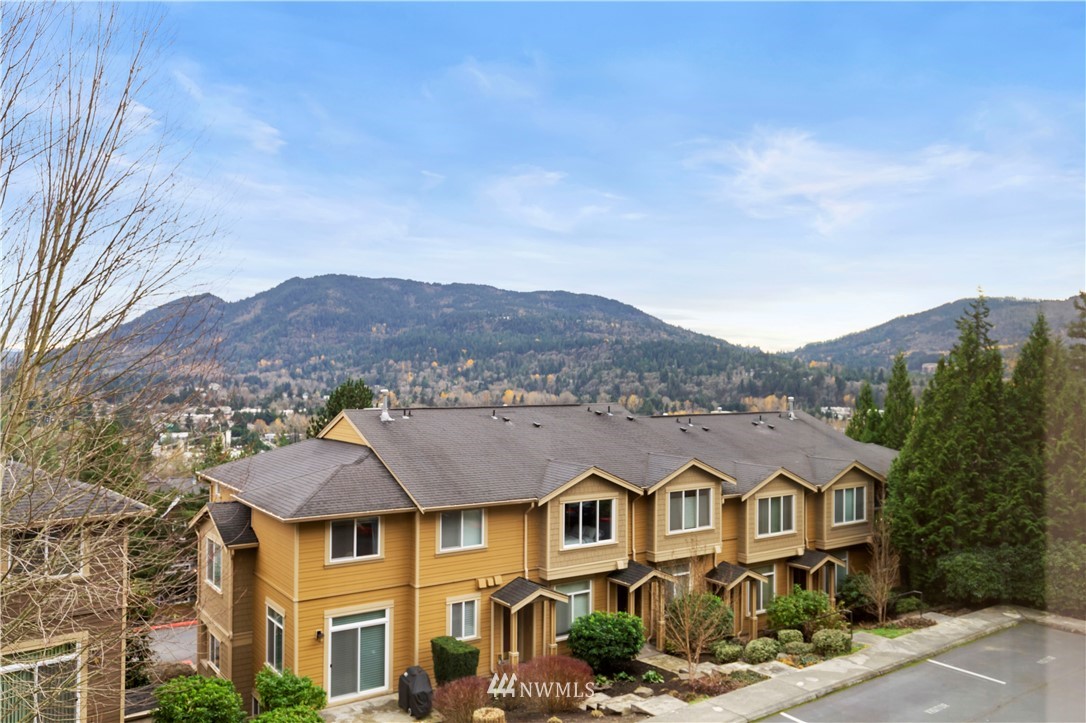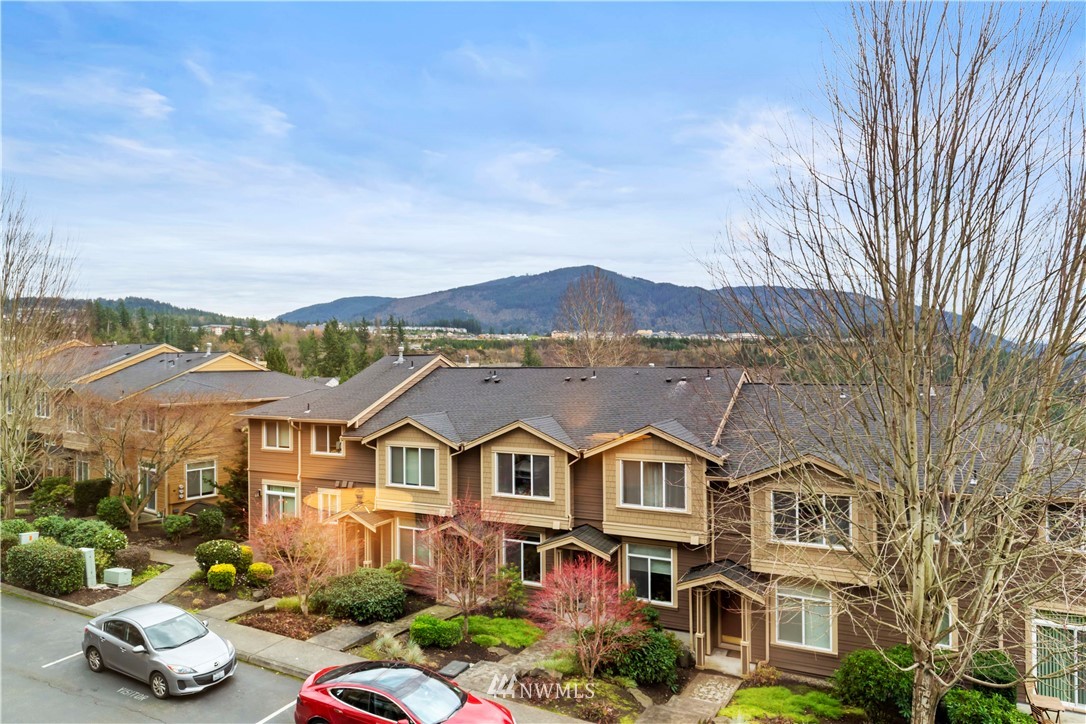 Come see this rare find in Issaquah with 3 full beds, 3.25 baths, and an extra rec room. The open living room with a gas fireplace is filled with warmth and natural light and opens up to an expansive balcony with stunning territorial views of the Cougar & Squak mountains. The kitchen features newer appliances, ample storage, a formal dining area + eat counter space. Upstairs you’ll find the full guest bath + three spacious bedrooms, including the primary with ensuite bath with walk-in closet. Extra bedroom, home office, or rec room on the first floor with a full bath opens to the huge two-car garage. Fully-funded HOA with no rental cap or special assessments. Dues include water, sewer, landscaping, and common area maintenance.