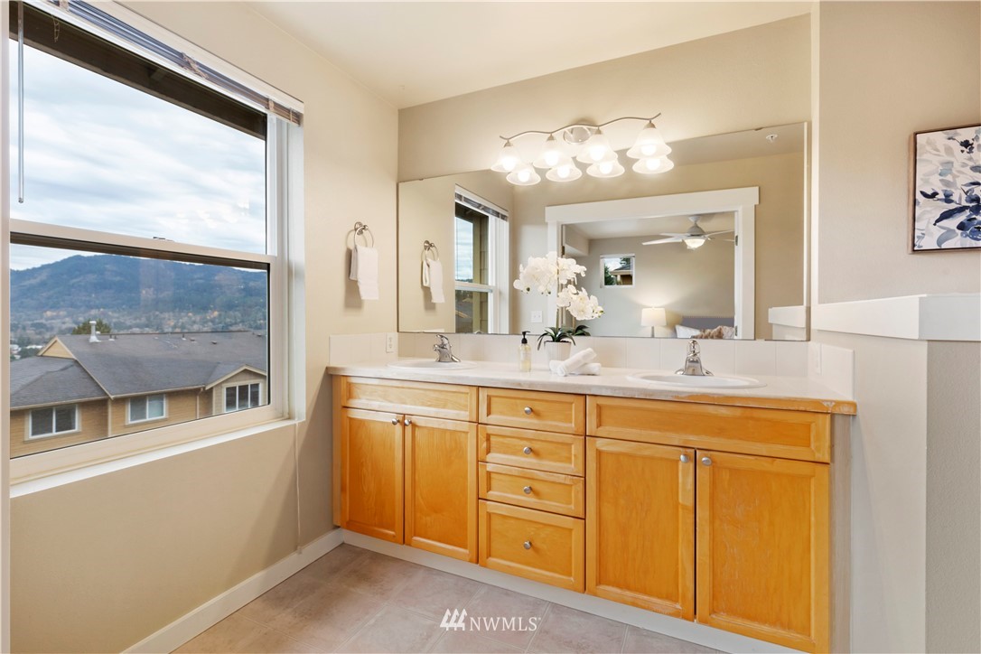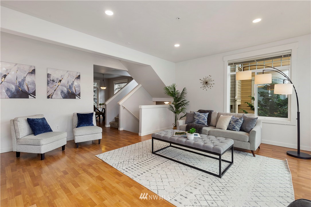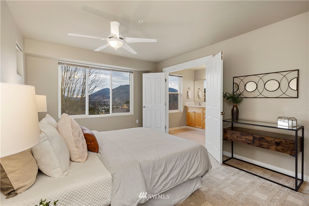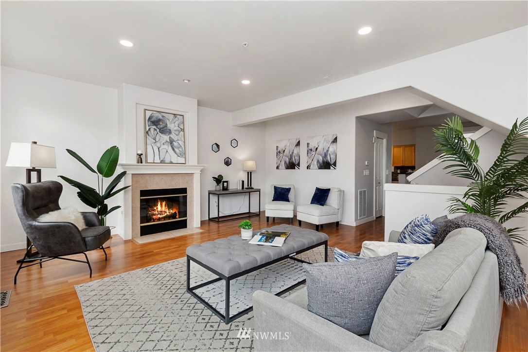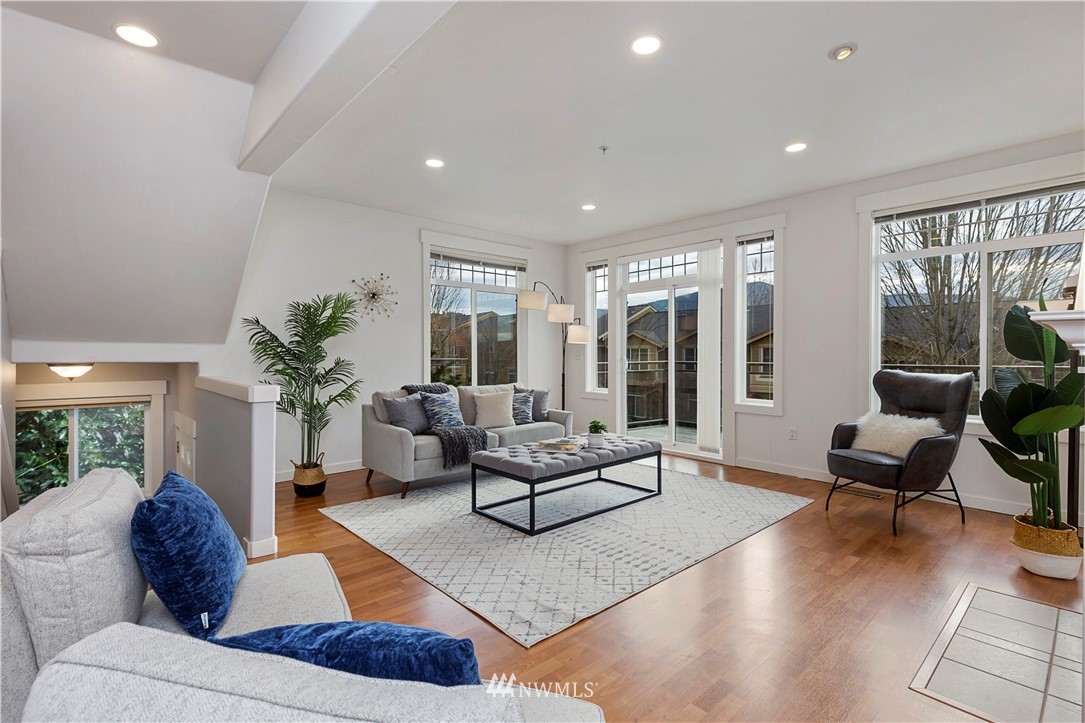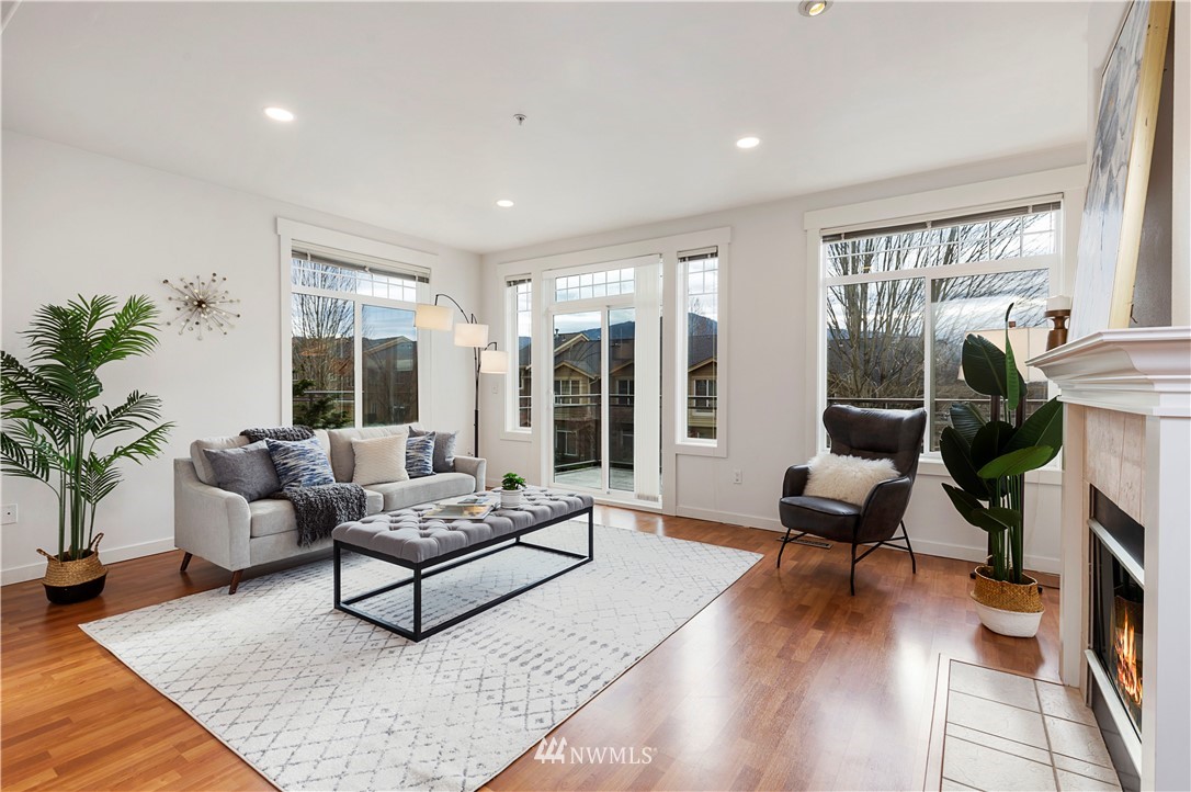 Come see this rare find in Issaquah with 3 full beds, 3.25 baths, and an extra rec room. The open living room with a gas fireplace is filled with warmth and natural light and opens up to an expansive balcony with stunning territorial views of the Cougar & Squak mountains. The kitchen features newer appliances, ample storage, a formal dining area + eat counter space. Upstairs you’ll find the full guest bath + three spacious bedrooms, including the primary with ensuite bath with walk-in closet. Extra bedroom, home office, or rec room on the first floor with a full bath opens to the huge two-car garage. Fully-funded HOA with no rental cap or special assessments. Dues include water, sewer, landscaping, and common area maintenance.