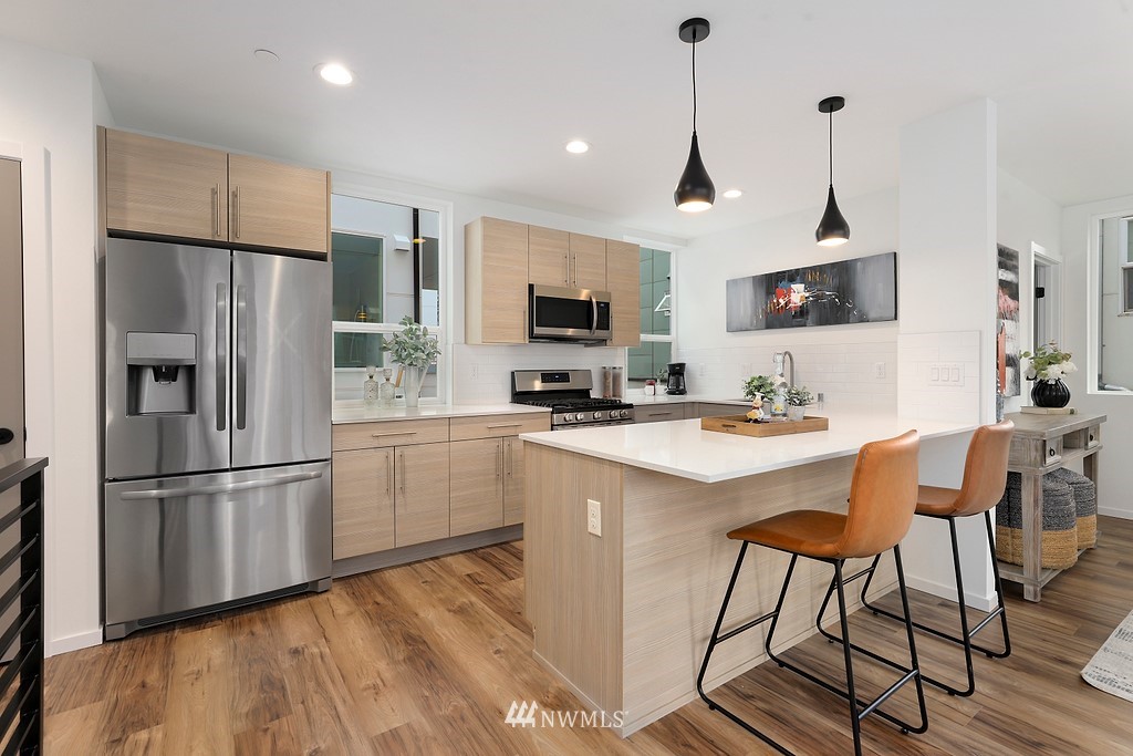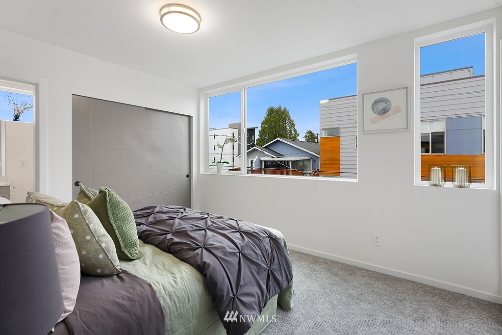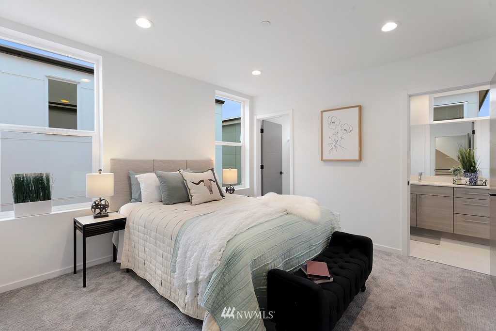 Announcing this modern upscale 14-home community in Westwood! Built by EcoBuilders and slated for Built Green Certification, these homes have been perfectly executed to appeal to the discerning Urbanite. The 9036A floor plan has a spacious and light-filled living room and kitchen with sleek custom cabinetry, quartz counters and well-appointed fixtures, appliances and finishes. Mini-split heat pumps for year-round comfort. The entire upper level is your private suite with custom tiled bath and access to a lofty rooftop deck with easy to maintain Trex composite decking. Another large bedroom shares the upper level. The fully finished attached garage is icing on the cake. No HOA dues!