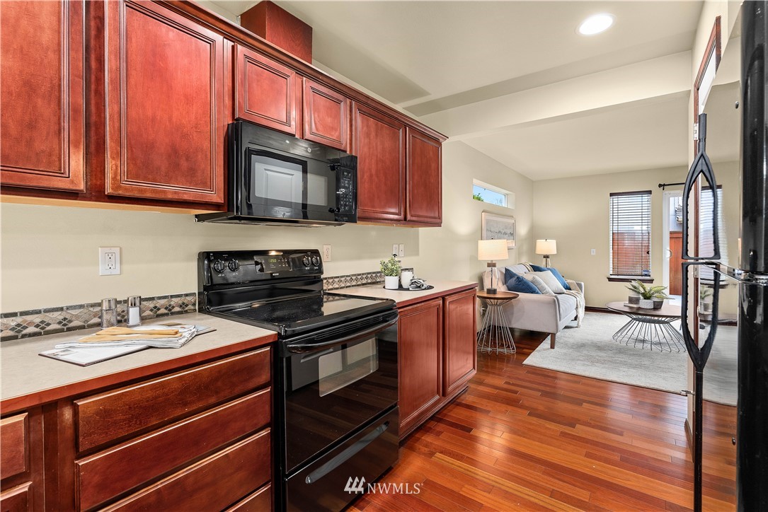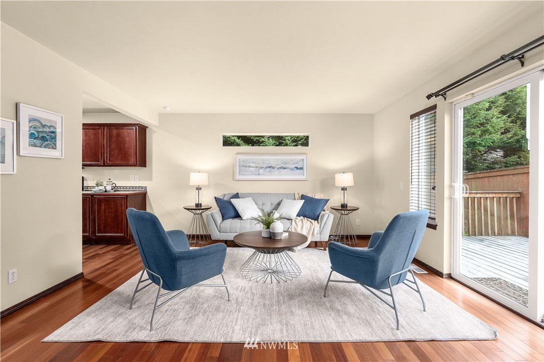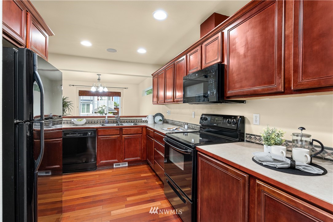 This fabulous end unit townhome at Augusta Woods lives large in a peaceful & convenient south Everett spot! The open concept main level boasts great natural light, sleek hardwood floors, a living room w/ a cozy gas fireplace, full dining room, a large Trex deck & an elegant chef's kitchen complete w/ rich cherry cabinets, large pantry & a breakfast bar. All 3 bedrooms are upstairs including a spacious owner's suite w/ ensuite full bath. All new carpet, CAT-5 wiring, upstairs laundry & an oversized 2-car tandem garage w/additional bay just for storage! Huge fenced yard offers room for pets & play. Tucked at the end of a quiet street just mins from shops, dining, parks, great Mukilteo schools, Boeing, transit & thoroughfares. FHA approved!