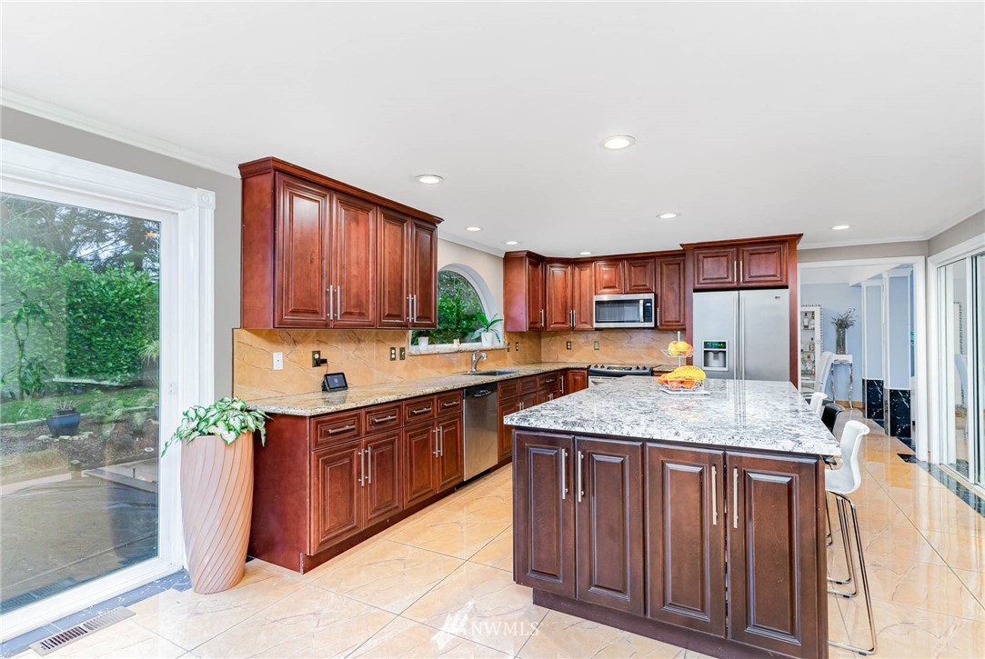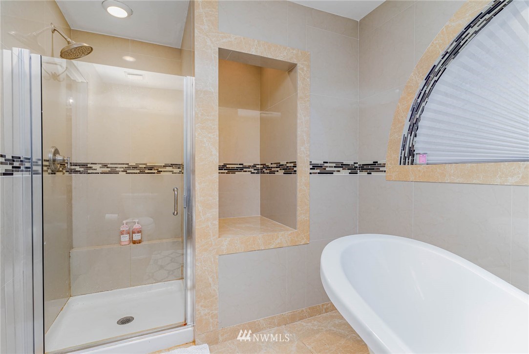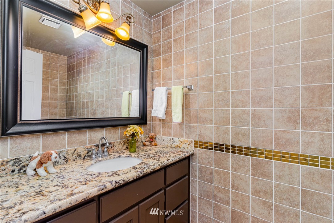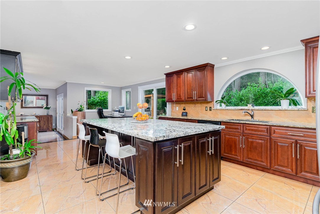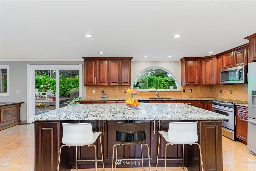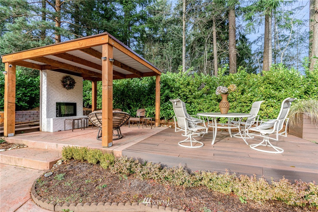 Beautifully updated home in the highly desirable Mill Creek Country Club Community. From the intricate mosaic at the front entrance to the huge chef's kitchen, this home is guaranteed to impress. The home has been updated from top to bottom with tasteful detailed selections, heated floors, vaulted ceiling, updated bathrooms, walk-in closet and much more. Water fountain at the front yard and the outdoor fireplace with two sitting areas in the back. Add your personal touch to the unfinished but fully permitted sunroom not included in the sqft. Additional storage in garage attic space. Close to Mill Creek Town Center shops/dining, trails and parks. Not to be missed.