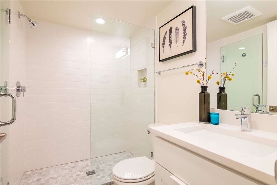 Newly and completely remodeled Sunset Hill home on large lot now available in Ballard's finest location. Enjoy the quiet streets, proximity to Shilshole, The Locks, Burke Gilman trail, Golden Gardens, and short strolls to great restaurants like Ray's Boathouse, Picolinos and Baker's! This turnkey Early mid-century home boasts of all new Roof, HVAC, Plumbing & Electrical Systems, plus newly finished interior. Kitchen has all new appliances including a 36" Bertazzoni gas range, glass tile backsplash, & Rejuvenation lighting. Wonderful master suite in daylight Basement, along with spacious, naturally lit family room. All tile floors are heated. Large south facing, private backyard has covered patio and is fully fenced. Heated garage too!