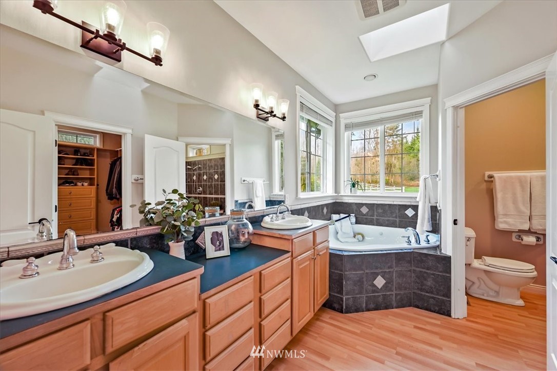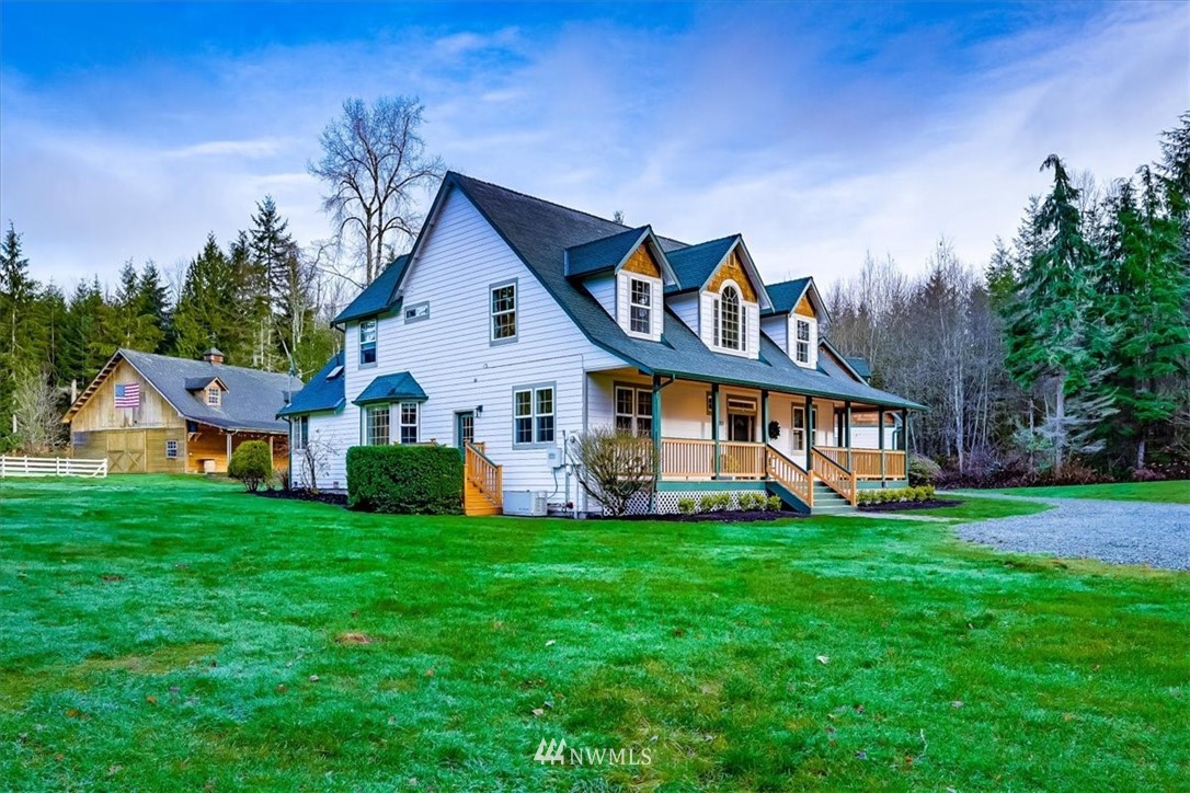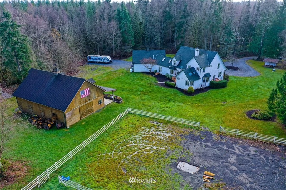 This phenomenal paradise boasts a voluminous amount of pristine beauty. A shy 5 acres equestrian estate featuring a custom built 36'X48' Wood wrapped barn w/huge loft, open RV & boat storage area & stalls, just off the arenas, w/crumb rubber, fenced & cross fenced. The stunning home is what you would dream of, a large Owners suite on the main w/ a 5 piece bath & fireplace. A home office down the hall, tall ceilings w/an abundance of natural light in the living & family rms. River rock FP & built-ins create an ornate feel w/french doors leading you to the rear yard. A chefs kitchen w/eating bar, large pantry & access to the dining rm. A breezeway to the huge garage & the bonus/media rm/Possible MIL just above it. Plenty of room to entertain.