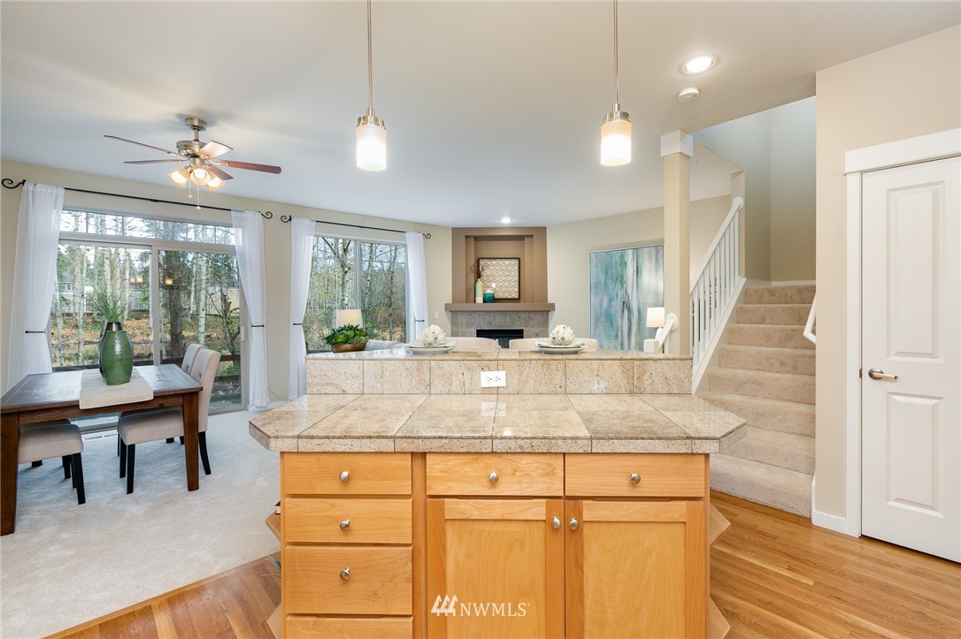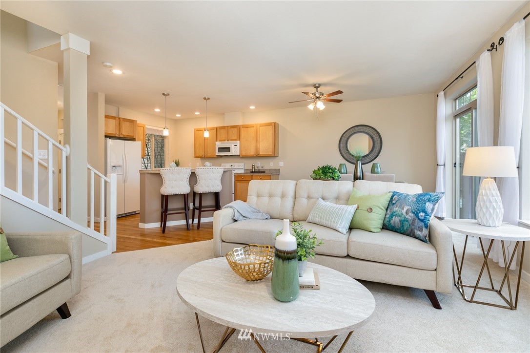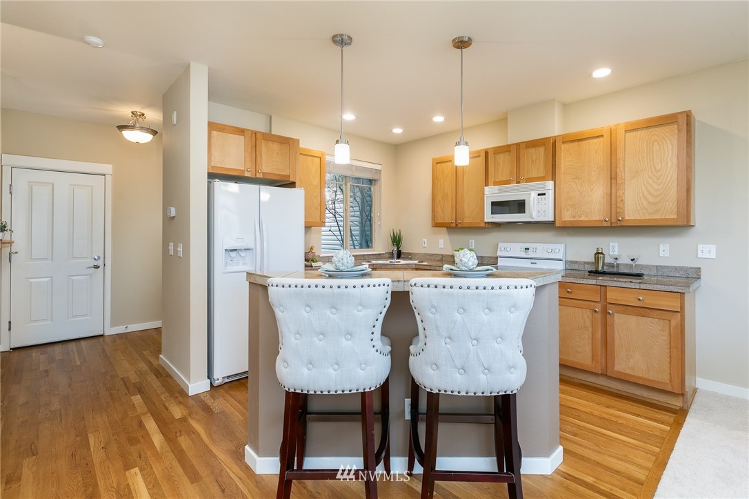 Beautiful and tranquil craftsman style townhouse on Kirkland's desirable Rose Hill. Minutes to Totem Lake, downtown Kirkland, Bellevue and Redmond. All the benefits of a single family home including a private 2 car garage and back patio with yard plus views of the creek and pond. Inside on the main floor you'll find granite and hardwoods in the open kitchen with an island breakfast bar, the living room with gas fireplace and ample light, plus a powder room and direct garage access. Upstairs the primary bedroom has an en-suite 5-piece marble bath with walk-in closet and linen storage, two more bedrooms, a laundry room and guest full bath. Small, very well maintained community. Brand new carpet. This fabulous townhome is turn key and ready!