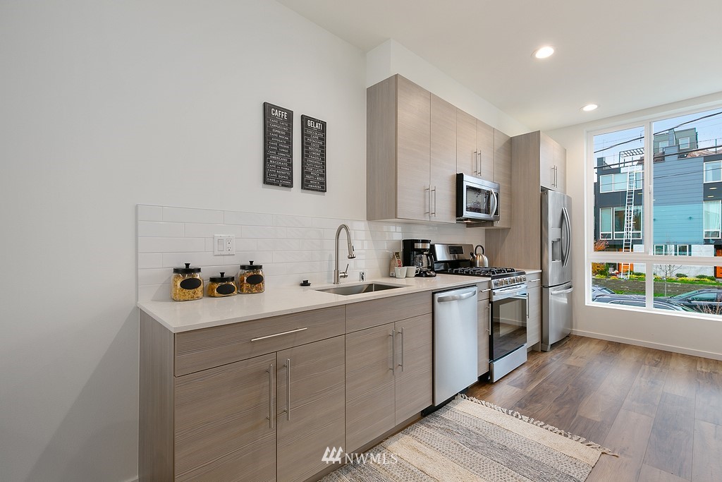 Announcing this modern upscale 14-home community in Westwood! Built by ecoBUILDERS and slated for Built Green Certification, these homes have been perfectly executed to appeal to the discerning Urbanite. The 9030C has an open living room and kitchen with sleek cabinetry, quartz counters, guest powder, balcony and well-appointed fixtures and finishes. Pet owners will love the fully-fenced front yard. The entry level has a flex space perfect for a home office with access to a finished garage with potential for much more than just a car or storage. Mini-split heat pumps for year-round comfort. Upstairs are two bedrooms with tiled bath and access to your private rooftop finished with easy-to-maintain Trex decking. No HOA dues!