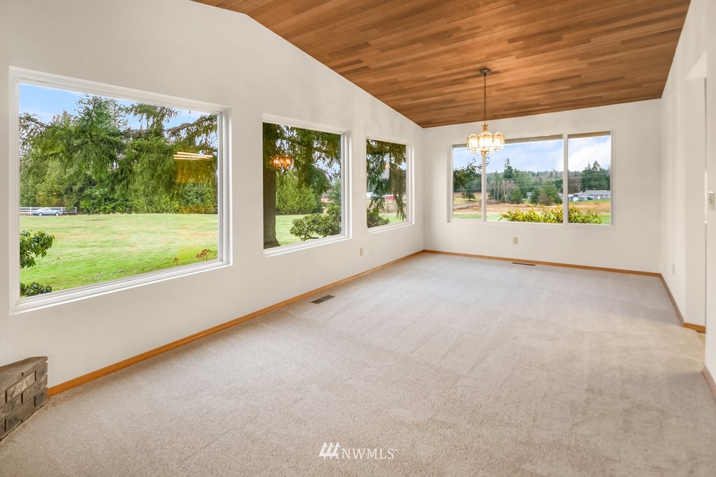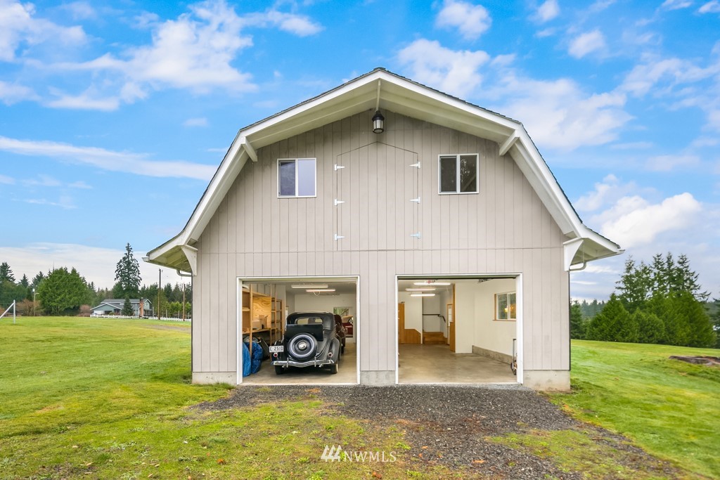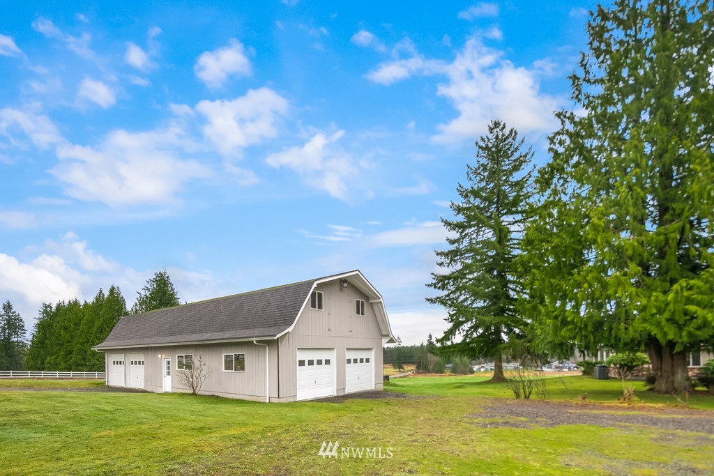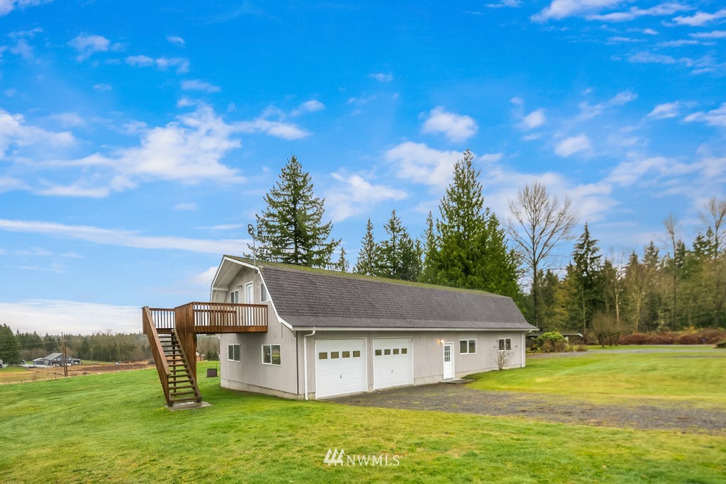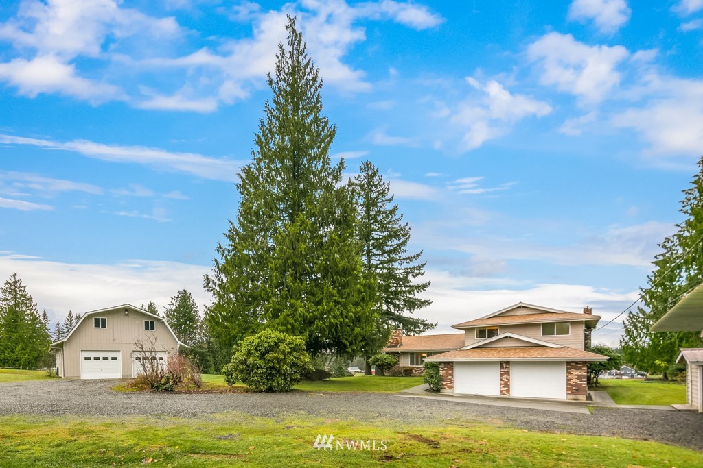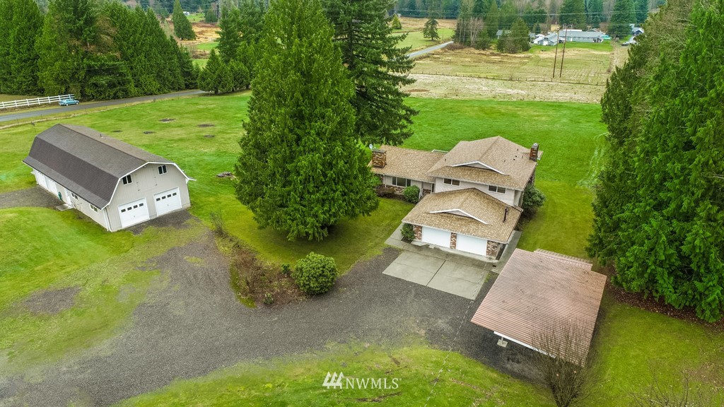 Pristine and peaceful setting with majestic views east towards the Cascades and Mt. Pilchuck. Plenty of room to breathe and space to roam on this stunning 5-acre property. This solid, well-maintained home features a thoughtfully designed floor plan with distinct but connected areas to relax, entertain, or work from home. Generous storage, attached 2-car garage, separate laundry and pantry. The detached barn is a haven for the car (or animal) lover with 4 spacious bays that can accommodate 6+ vehicles, radiant heated floors plus guest quarters with separate entrance on the upper level. Excellent potential to finish further as a detached dwelling unit. Completely private and removed from the hustle, but close to all major conveniences.