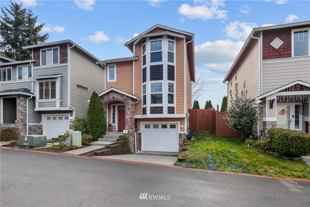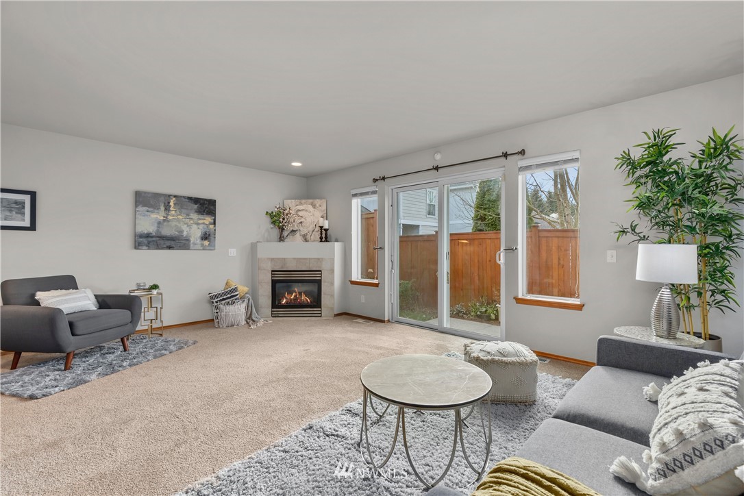 Darling, light and bright, detached townhouse in the serene and peaceful Augusta Woods community! This charming clean home is full of natural light, hardwood floors, new carpeting and fresh paint. Move-in ready perfection! Enjoy the main level living room with a cozy gas fireplace, chef's kitchen with gas stove, dishwasher, microwave, large pantry, breakfast bar, and full dining room. Upstairs boasts 2 primary bedrooms! One with ensuite, walk-in closet, and bay window plus a 2nd with full bath. Additional storage space with 2-car tandem parking. This beautiful home and community are centrally located in a great South Everett spot with easy access to I-5, Walter Hall Golf Course, Boeing, Paine Field, Everett Mall, shops, and parks.