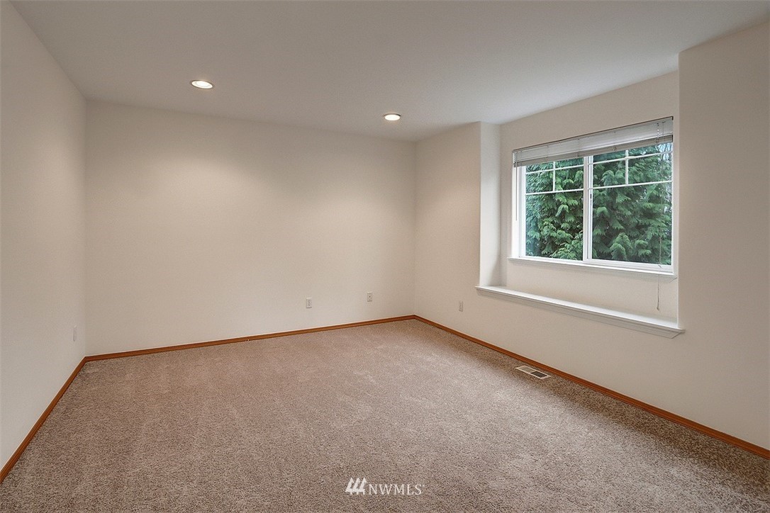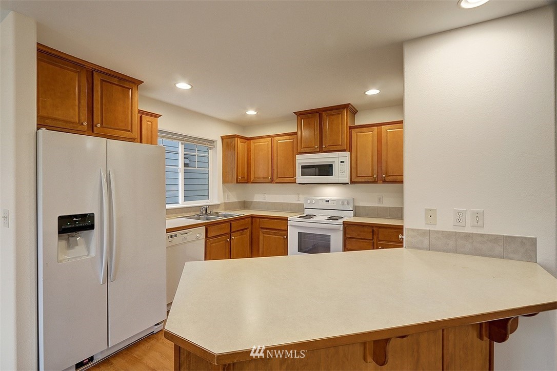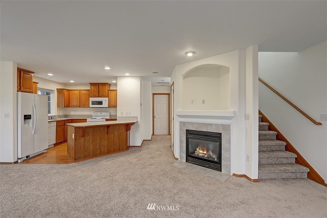 Highly desirable corner lot home that backs to a NPGA offering lots of privacy. This bright & light home has an open floor plan w/plenty of room for entertaining. Fresh paint & new carpet throughout! The main level offers a primary bedroom w/attached full bath & walk-in closet, 1/2 bath, dining area opens to living room w/gas fireplace. Enjoy cooking in the spacious kitchen w/ glass door pantry & breakfast bar. The upper level has 3 generously sized bedrooms, full bath & utility room. Huge bonus room off finished & freshly painted garage. Bonus room has separate entrance to fenced level deck. Convenient location, close to shops, restaurants, Boeing, Pain Field, Hwy 99, I-5 & I-405.