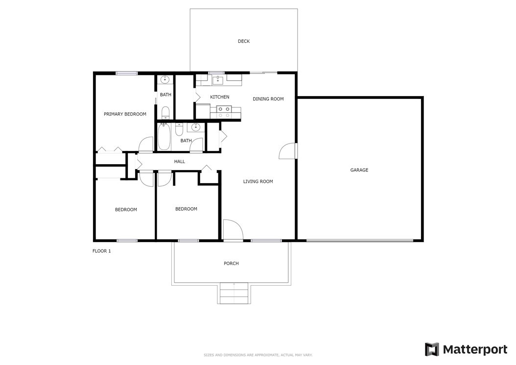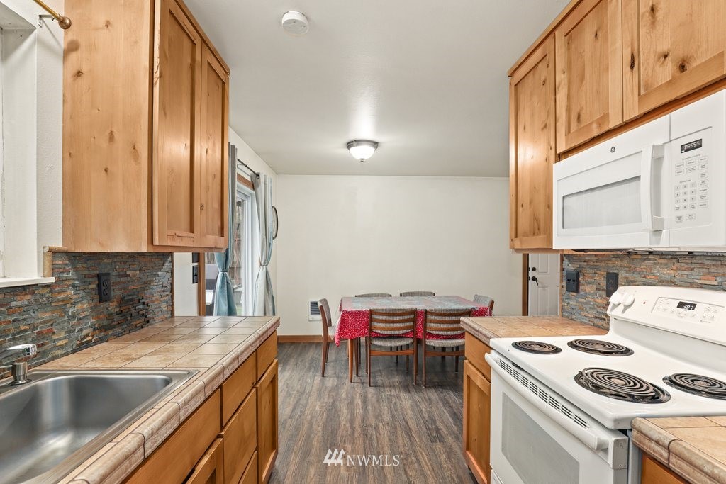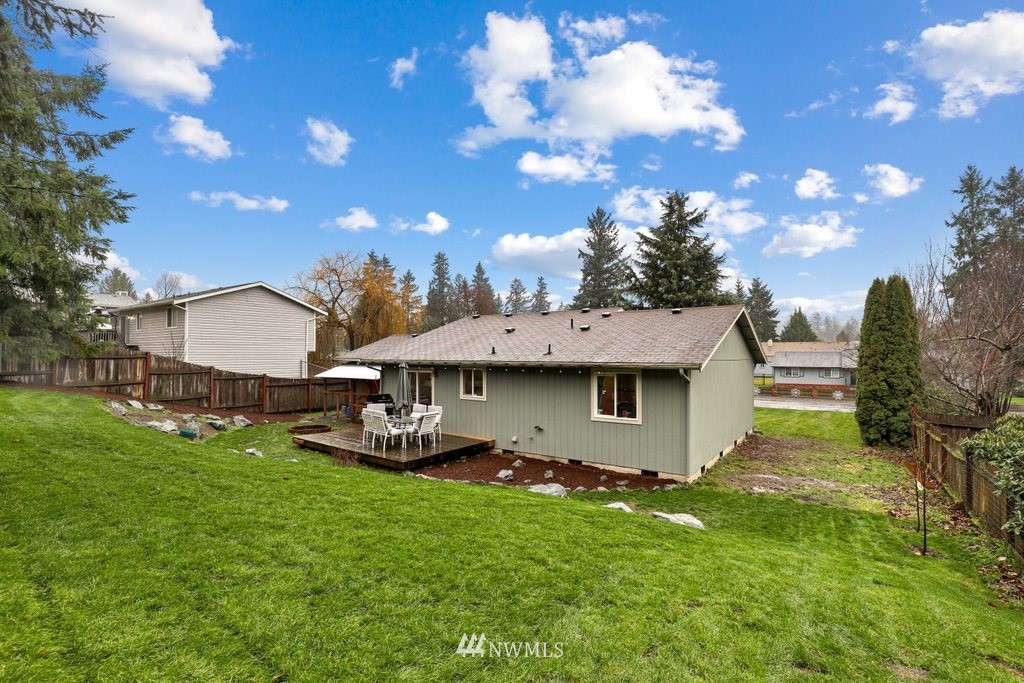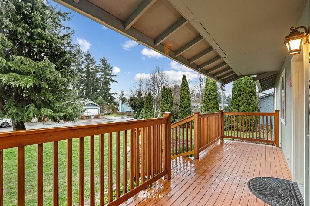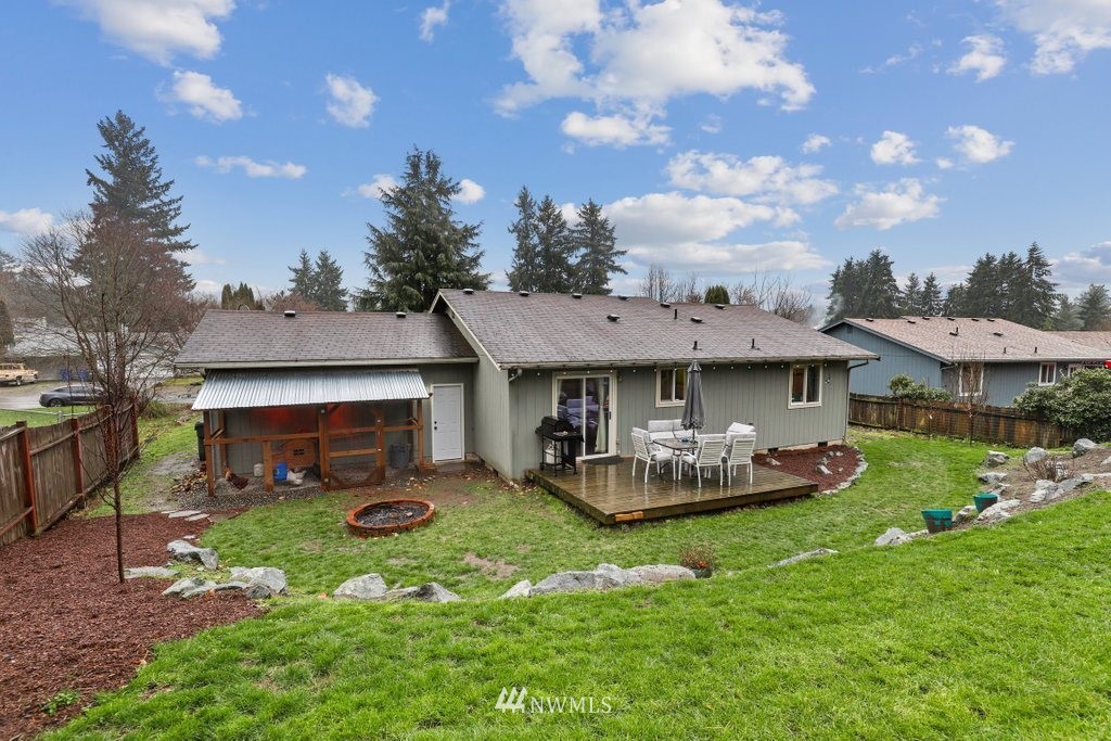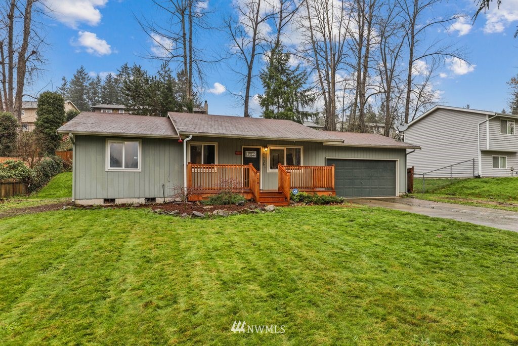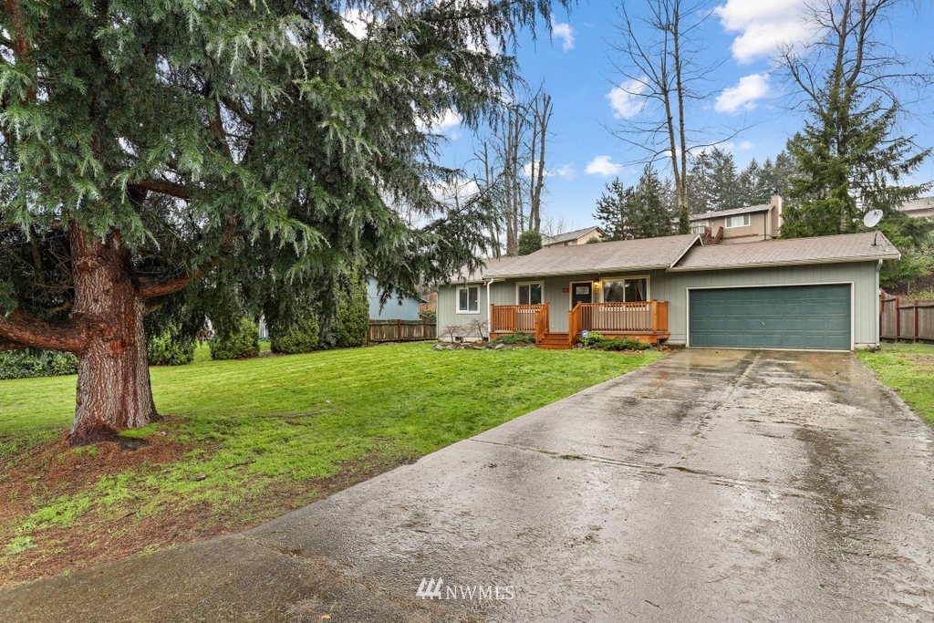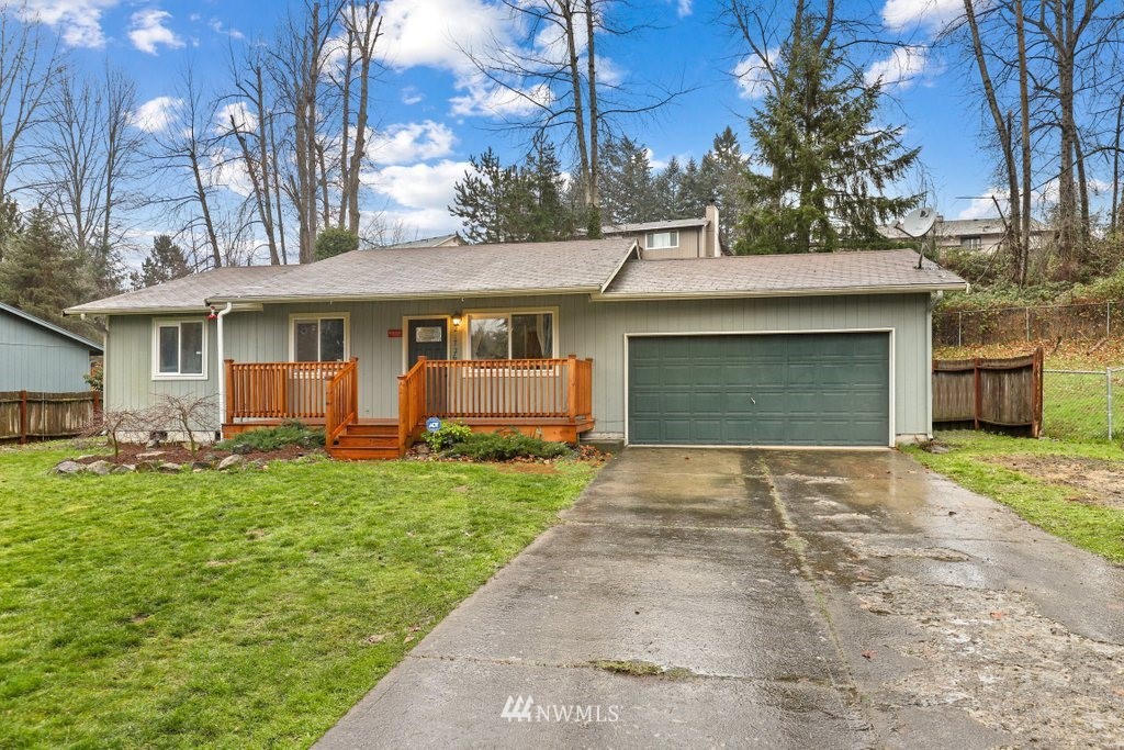 Perched on a roomy terraced lot, this turn-key home awaits new stewardship! With a sought-after single level floorplan, this home offers a functional layout with an inviting front living area and kitchen adjacent to dining space with access to back deck. Down the hall you'll find the Primary Suite with powder room, plus two guest bedrooms and a full bathroom. Don't miss the covered entry and front porch - perfect for sipping morning coffee and enjoying the front yard! The 2 car garage currently serves as bonus space but could easily be converted back. Ideally located near everything - schools, restaurants, shopping, Spanaway Lake, The Classic Golf Club, JBLM and more. Plus, no HOAs here! Come make this your home-sweet-home for the holidays.