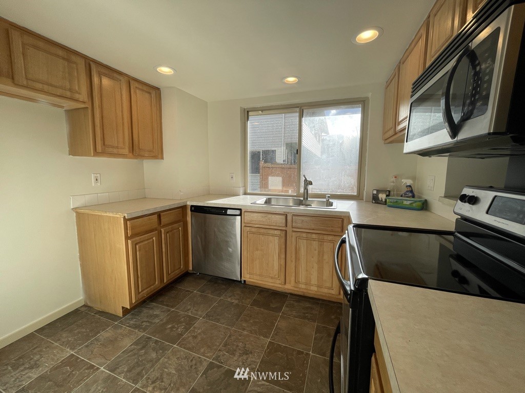 This newly refreshed townhome has a bonus room, toy garage, smart thermostats, fully fenced yard, backyard deck, plenty of storage in a prime location in a culdesac near schools, highways, the Sounder train, and shopping. The kitchen has a Southern view of the sideyard above a spacious sink, a waterline for an icemaker, built-in storage galore, and even a hideaway project/homework table apart from the dining area. Smart planning maximizes square footage providing spacious bedrooms, two of which have walk-in closets.