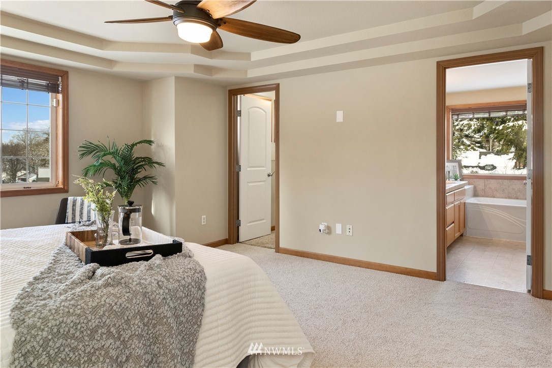 Lake views from each level of this 3-story home! One block from Spanaway Lake and walking distance to Spanaway Park, golf course and Sprinker Recreational Center. Unique floor plan with 4 bedrooms/4 bathrooms, bonus room on the top floor, coffered ceilings in the master bedroom, huge walk-in master closet, 5 piece master bath and large fully-fenced backyard. Original owner and lovingly cared for since it was built. Home has newly painted exterior and interior!