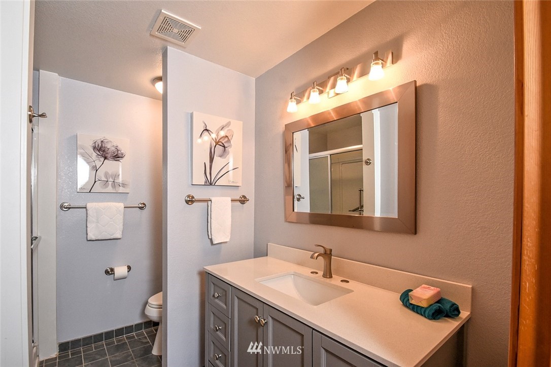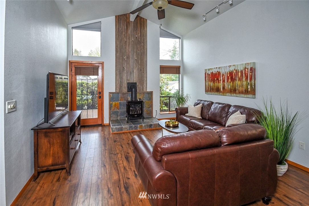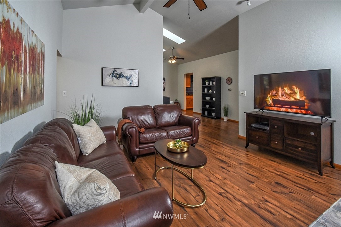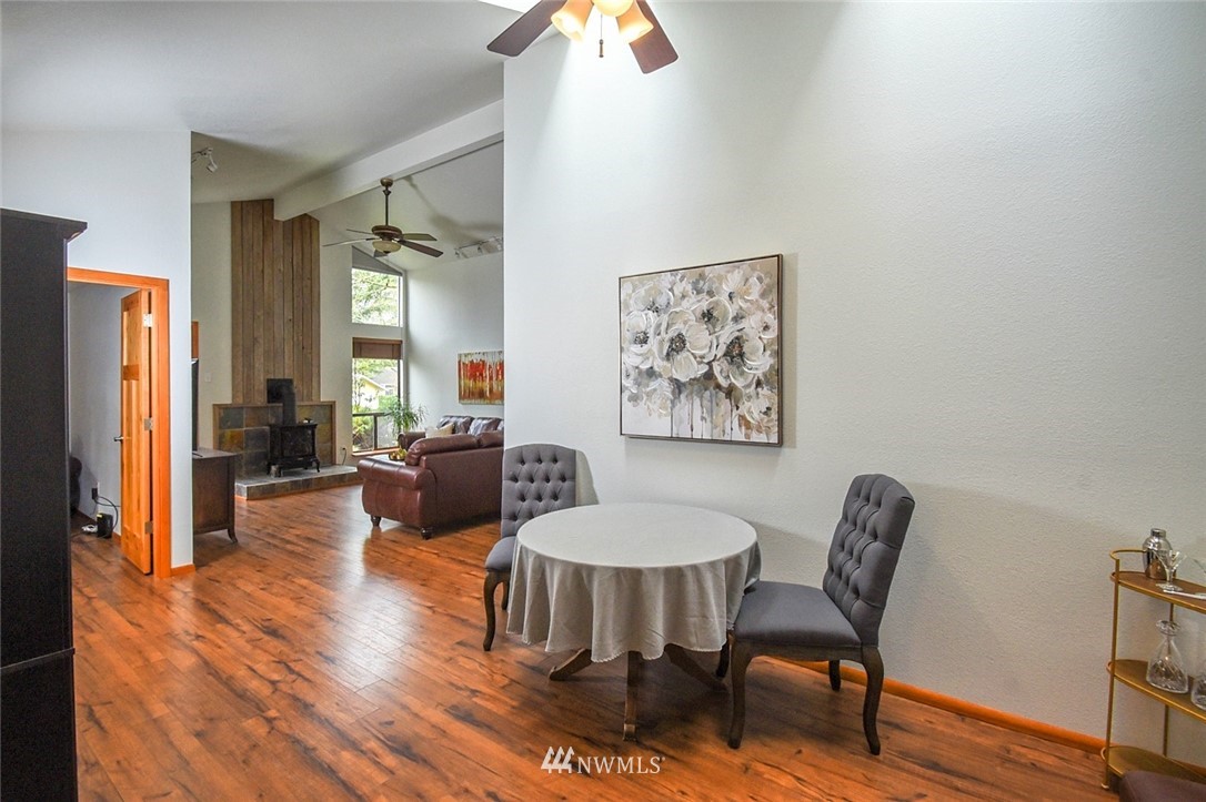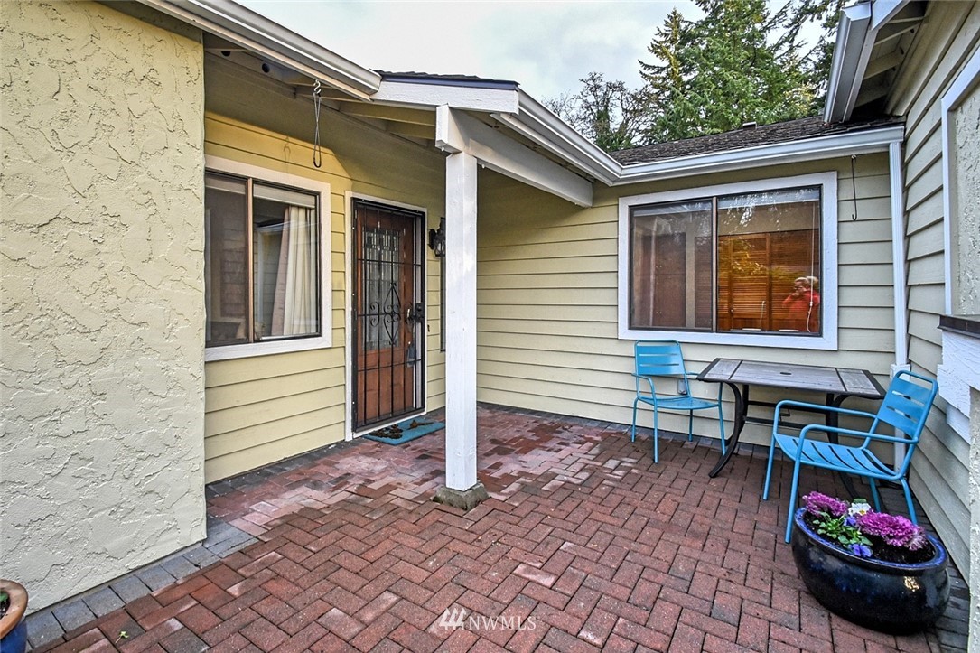 Beautiful & well-maintained corner lot, single-level home with no stairs/steps situated in the desirable community of Mill Lane. This 3 bed/1.75 bath home features a large master suite with a large W/I closet & attached bath, open floor plan with tall vaulted ceilings, updated bathrooms, & a newly remodeled kitchen with an eating nook & SS appliances. W/D with lots of storage just off the kitchen/2 car garage entry. Large living room with a cozy gas fireplace & access to 2nd private patio. Enjoy the private patio & sun porch. Perfect location near I5 and 405, Mill Creek Town Center (grocery, shops, & dining), walking trails, & Mill Creek Country Club golf course. Roof and exterior recently replaced & painted.