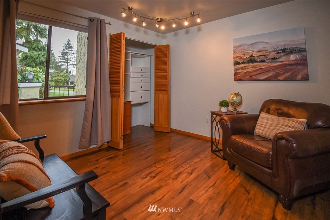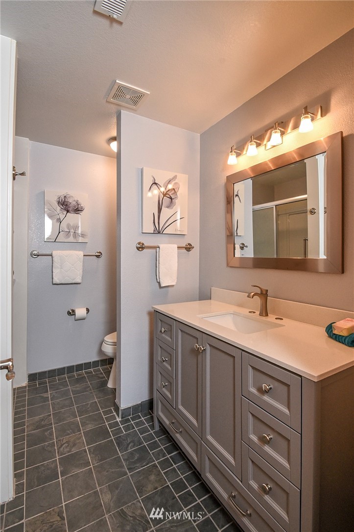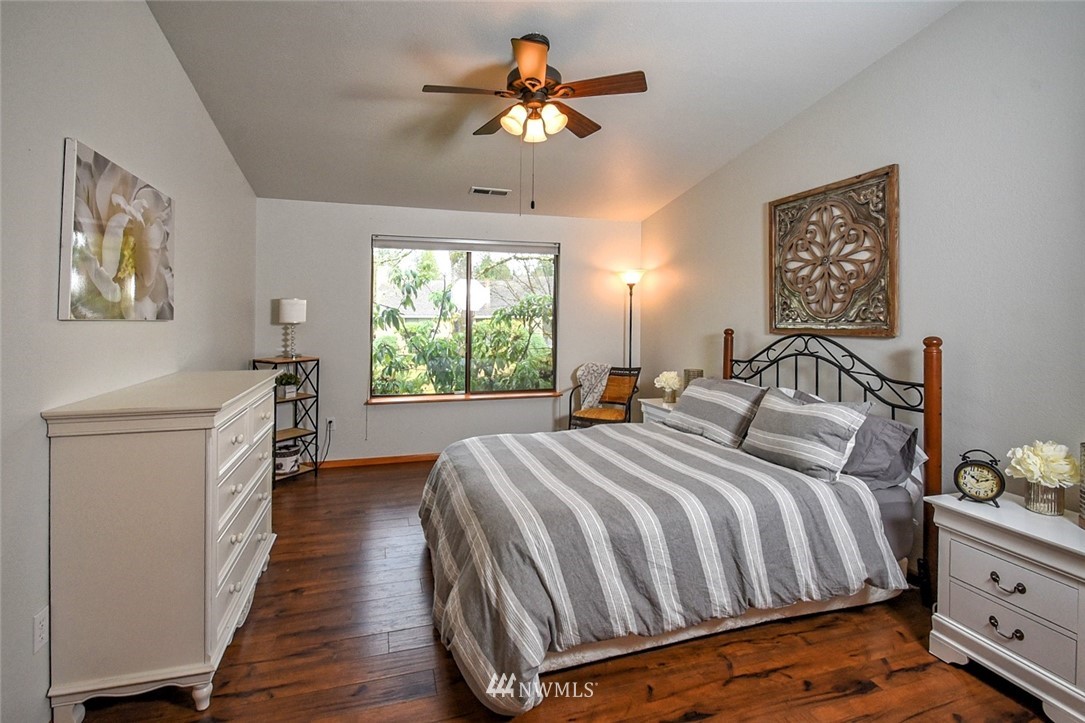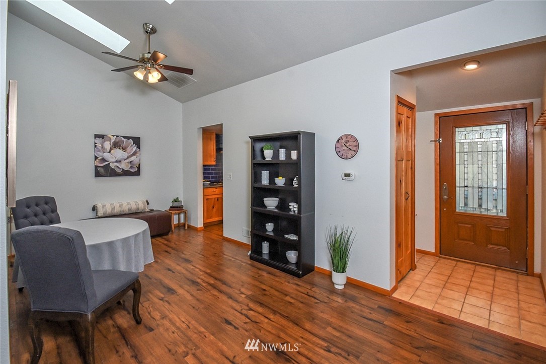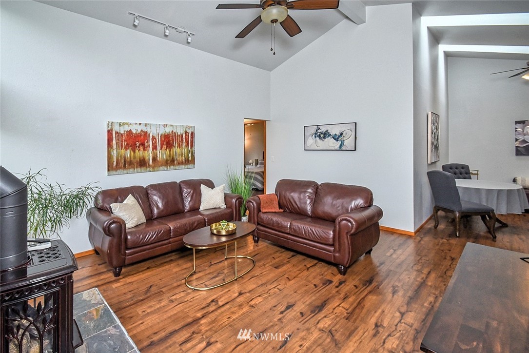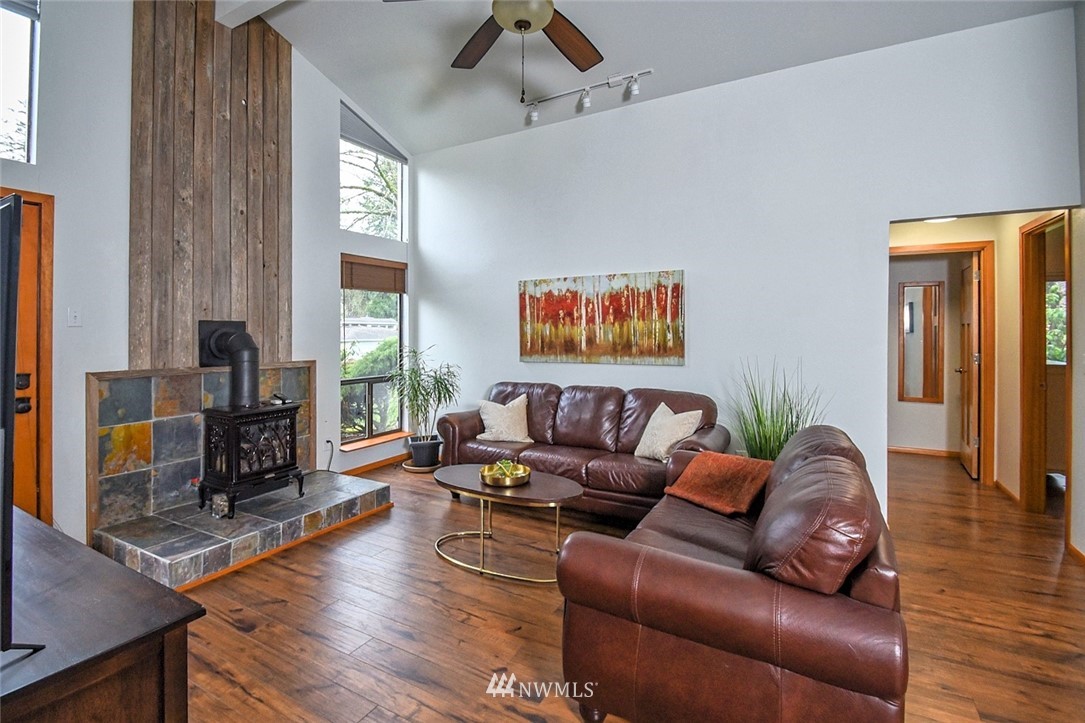 Beautiful & well-maintained corner lot, single-level home with no stairs/steps situated in the desirable community of Mill Lane. This 3 bed/1.75 bath home features a large master suite with a large W/I closet & attached bath, open floor plan with tall vaulted ceilings, updated bathrooms, & a newly remodeled kitchen with an eating nook & SS appliances. W/D with lots of storage just off the kitchen/2 car garage entry. Large living room with a cozy gas fireplace & access to 2nd private patio. Enjoy the private patio & sun porch. Perfect location near I5 and 405, Mill Creek Town Center (grocery, shops, & dining), walking trails, & Mill Creek Country Club golf course. Roof and exterior recently replaced & painted.