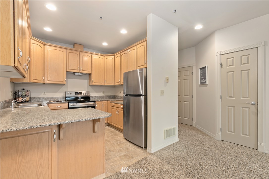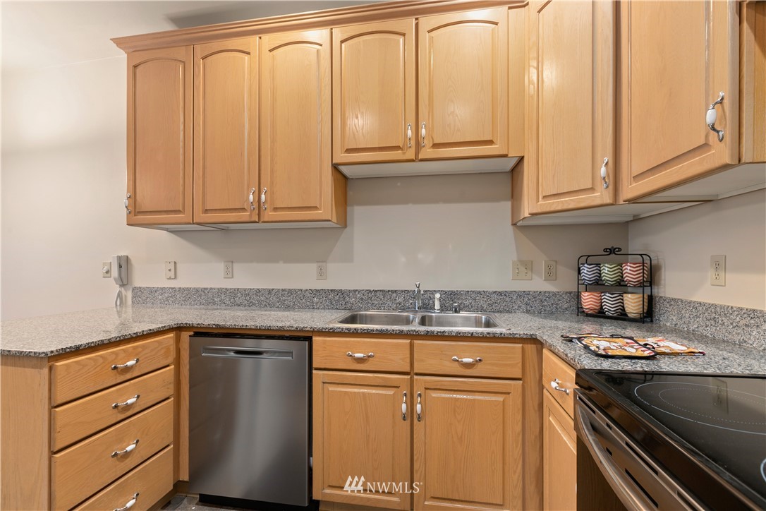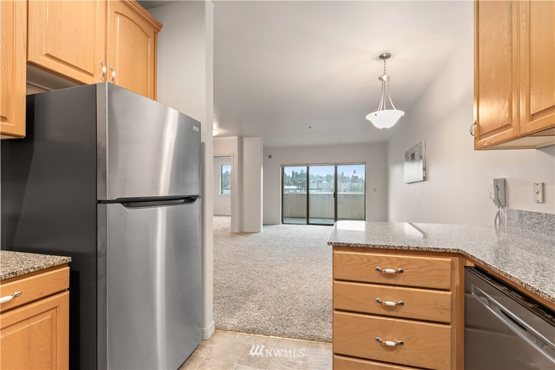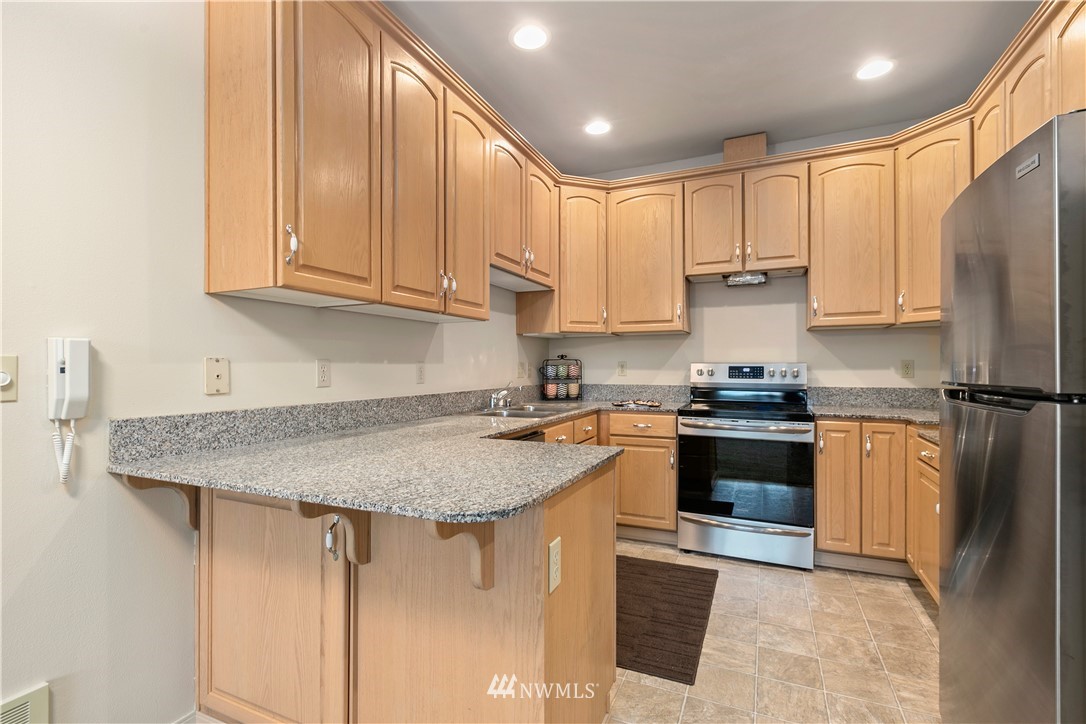 Have it all. . .Contemporary Top Floor Unit, downtown living, secure and beautiful building. Accessible unit (entry, bathroom, kitchen, bedroom). Walk to restaurants, shopping, coffee, banking, fitness, library, theater, entertainment and close proximity to Boeing, Angel of the Winds arena, Transit Station and I-5/Hwy 99. Lots of natural daylight makes this home bright and cheerful and the Open and spacious floor plan makes home wonderful for entertaining and includes built-in cabinets. Bedroom complete with a huge walk in closet. Oversized accessible bathroom. Kitchen includes brand new appliances, granite counters & ample cabinet space. Secure lobby/garage/elevator (access code required), huge storage room. . .a great place to call home!