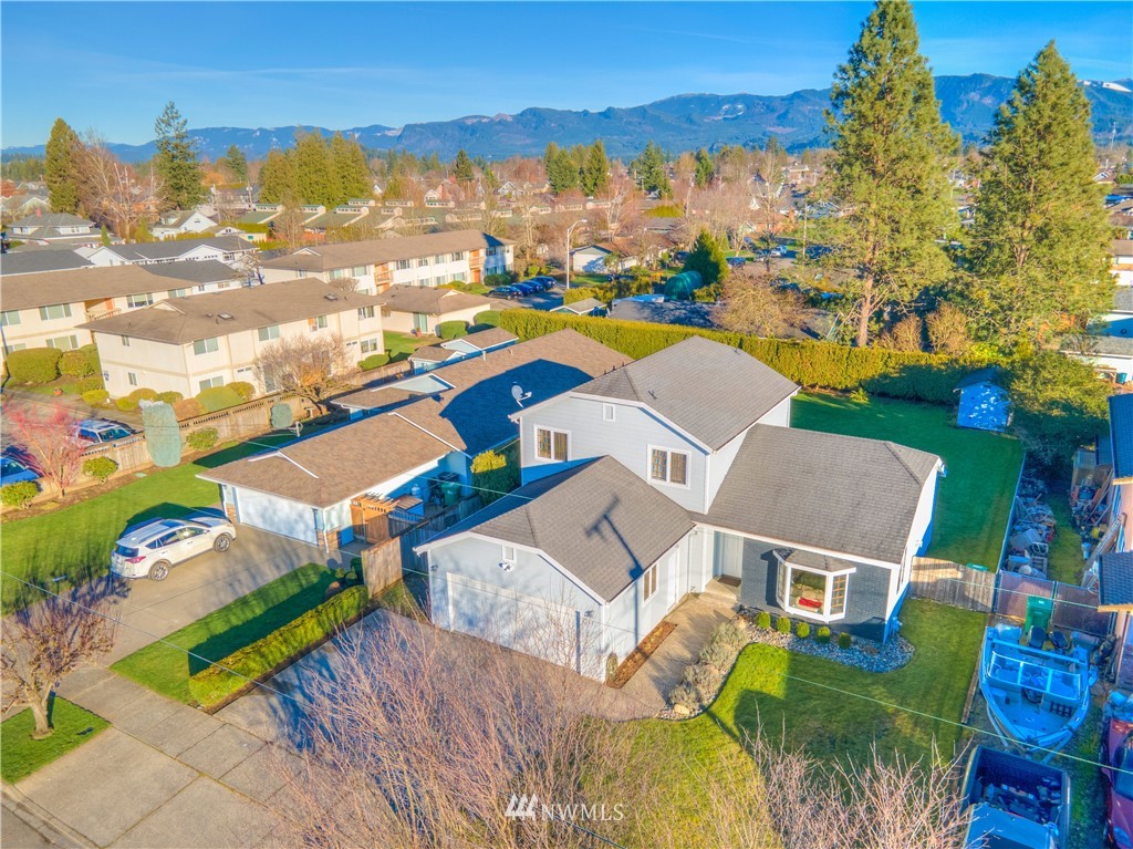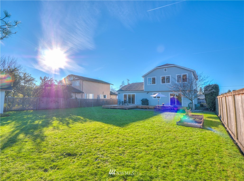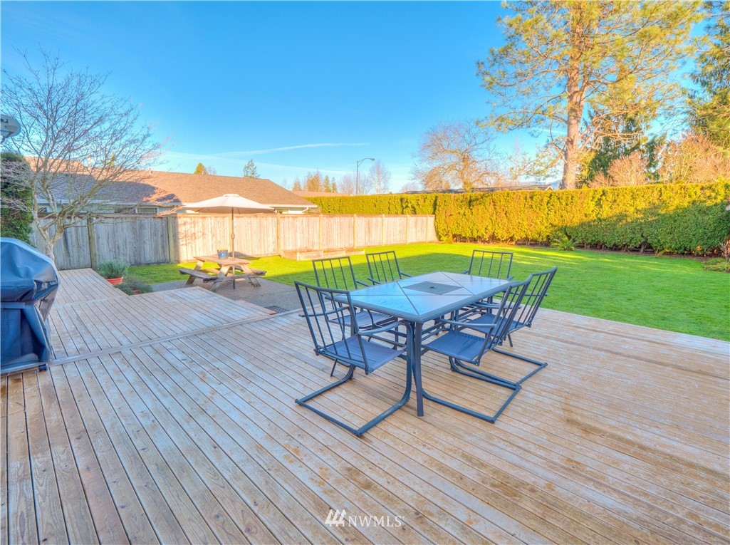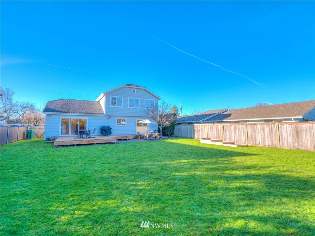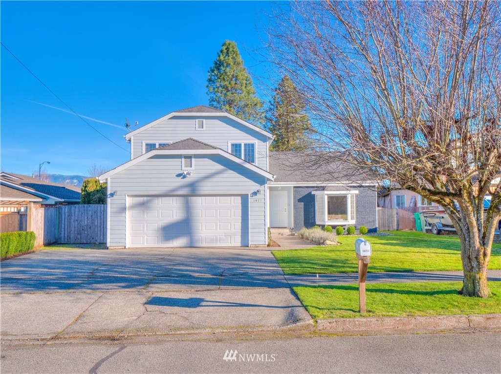 4 bedroom, 2.5 bath home in the heart of Enumclaw. The entry opens up to large family room w/ vaulted ceilings. Updated kitchen w/ vaulted ceilings, granite countertops, abundant cabinetry, SS appliances, & walk-in pantry. Office/dining space adjacent to kitchen. Large, vaulted family room w/ gas fireplace & sliding glass door to the fully fenced backyard, large deck, patio & garden space. Spacious primary bedroom w/ private full bath. Tile .5 bath downstairs w/ granite tile vanity. Upper full bath w/ tile floors. Utility room w/ mud sink next to 2-car garage. Forced air gas heat-AC ready. Newer washer/dryer, new gas water heater.